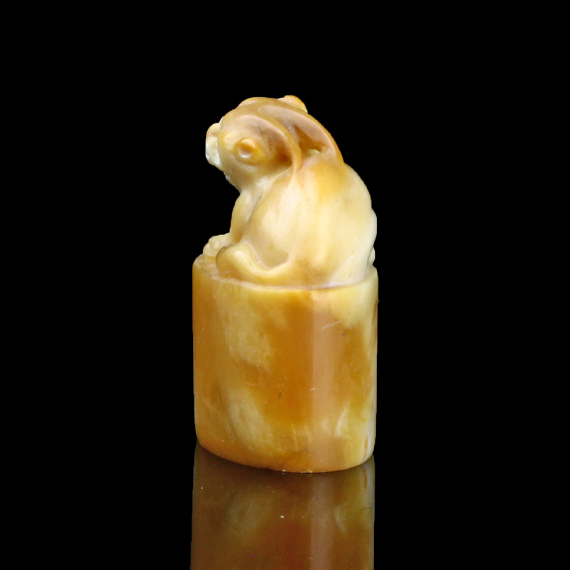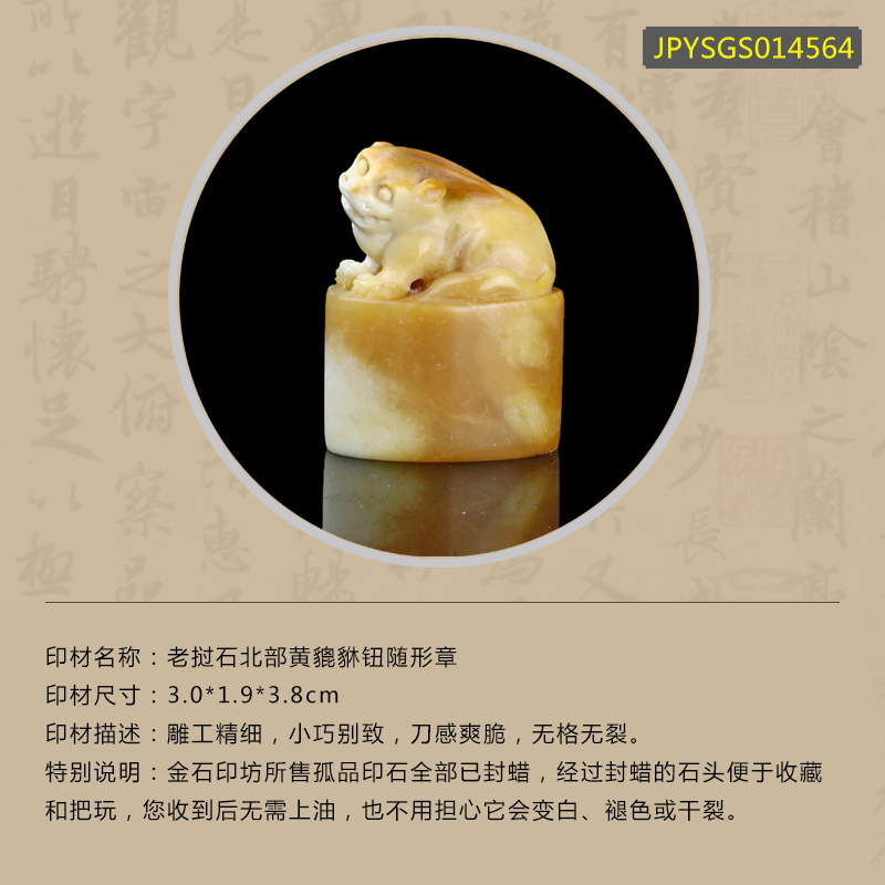 孤品014564:老挝石北部黄貔貅钮随形章-3.0*1.9*3.8cm