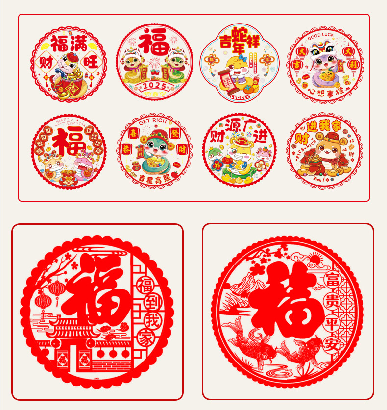 【秒杀❗️9.9抢20张🔥蛇年窗花】福到窗前,喜庆团圆,好运连连!2025福字个性静电装饰贴纸玻璃春节新年成品过年直播引流品