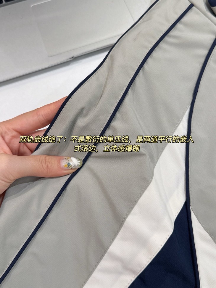 搭配黑白藏青撞色线条,利落的几何切割感让衣身更显立体,不挑身材还能悄悄拉长比例,自带Clean Fit的高级感。