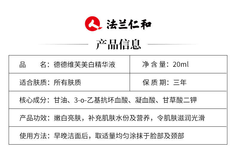 【美妆个护】德德维芙法兰仁和精华液补水提亮肤色