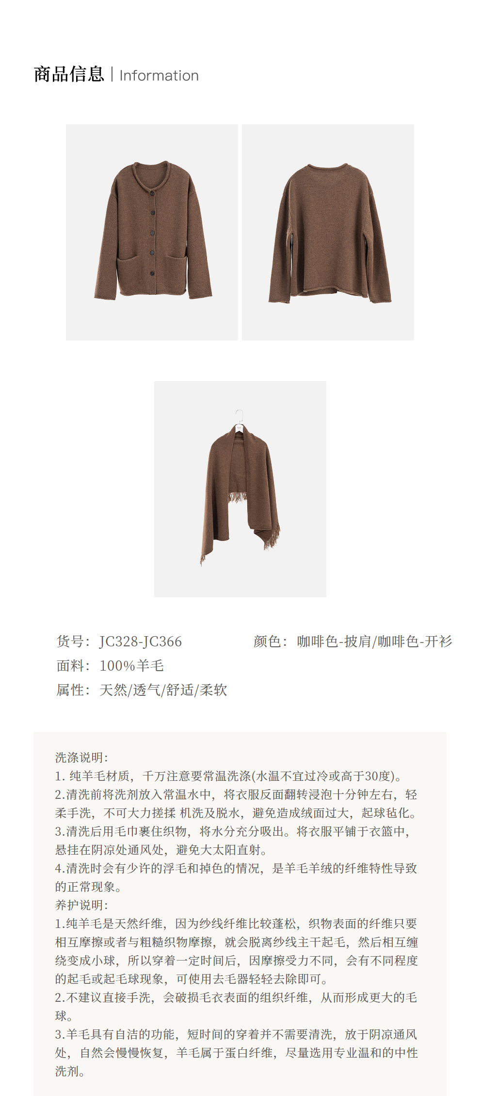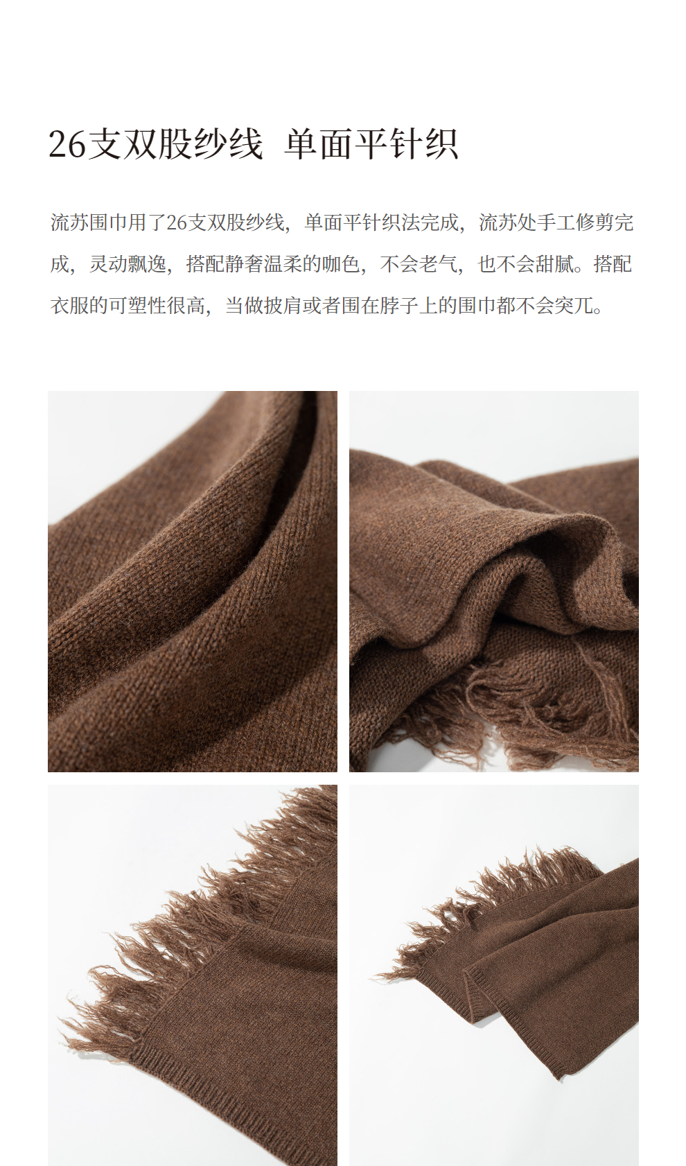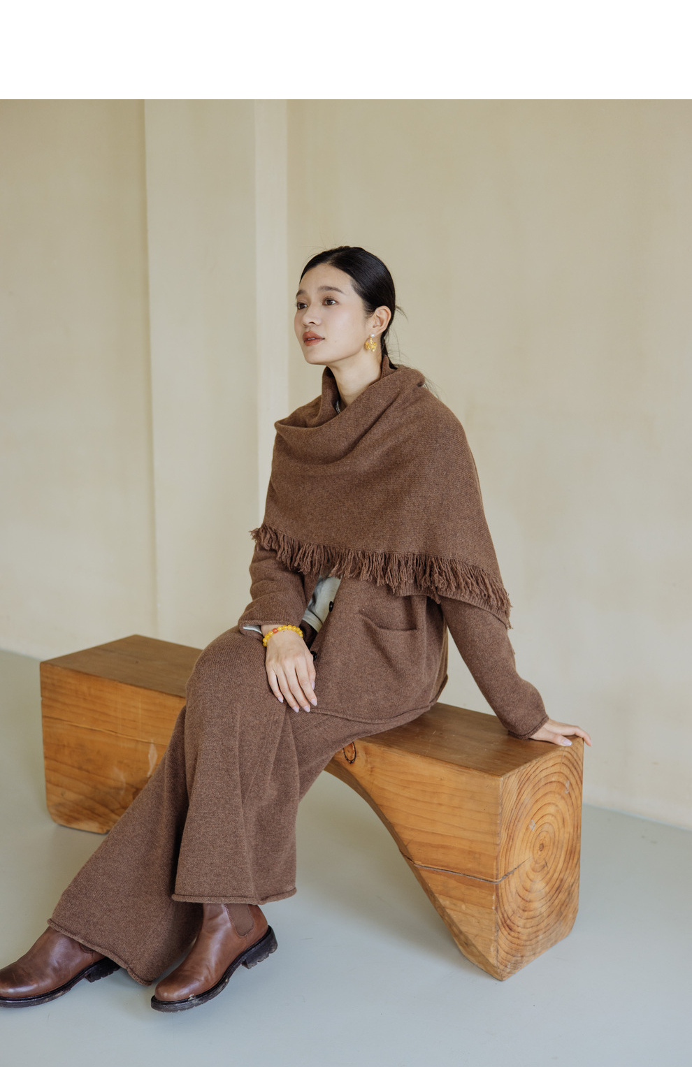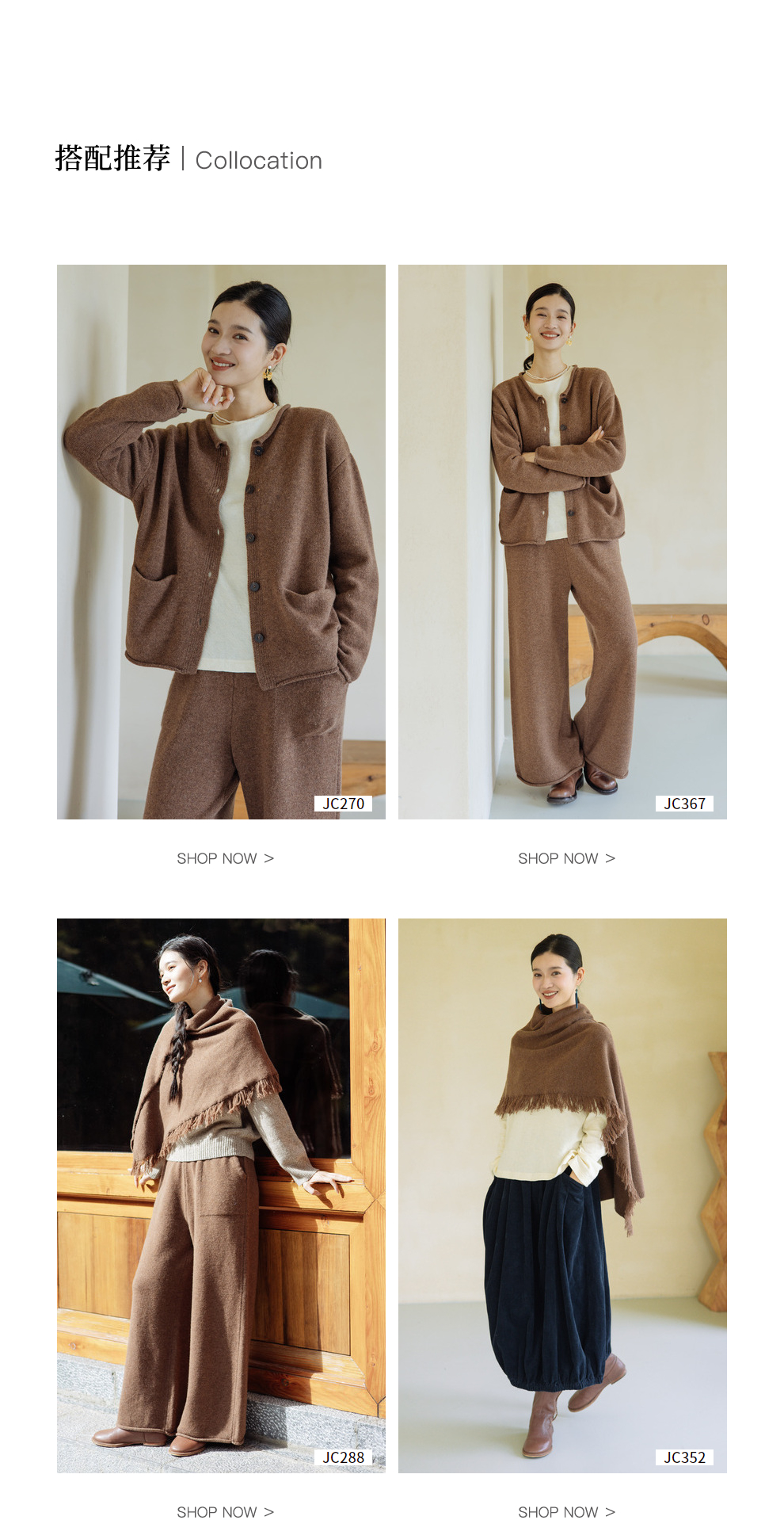 绽放328-366朵/全羊毛夹花卷边文艺女旅行感流苏毛衣开衫披肩套装