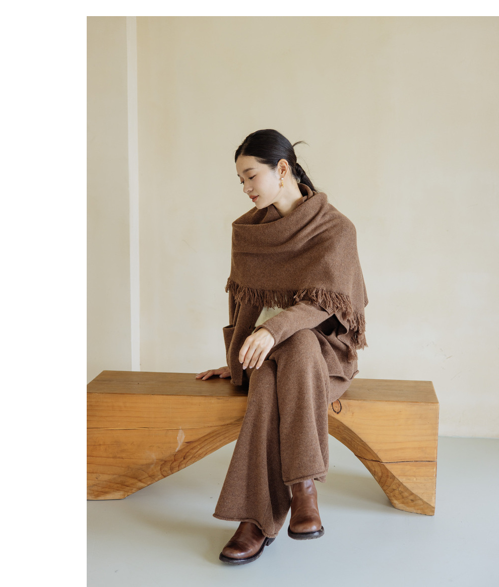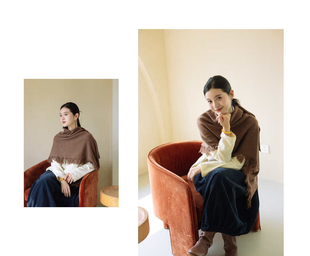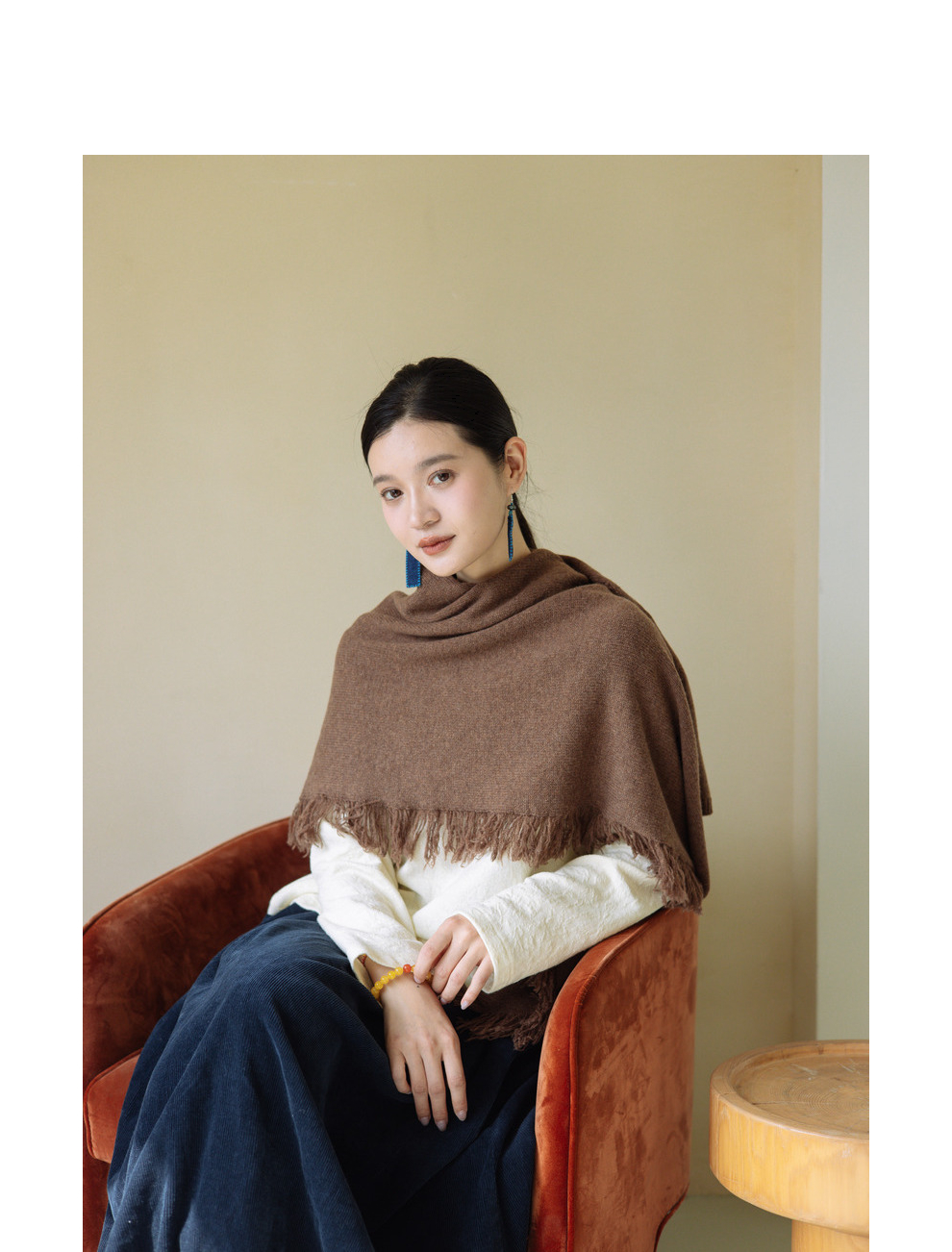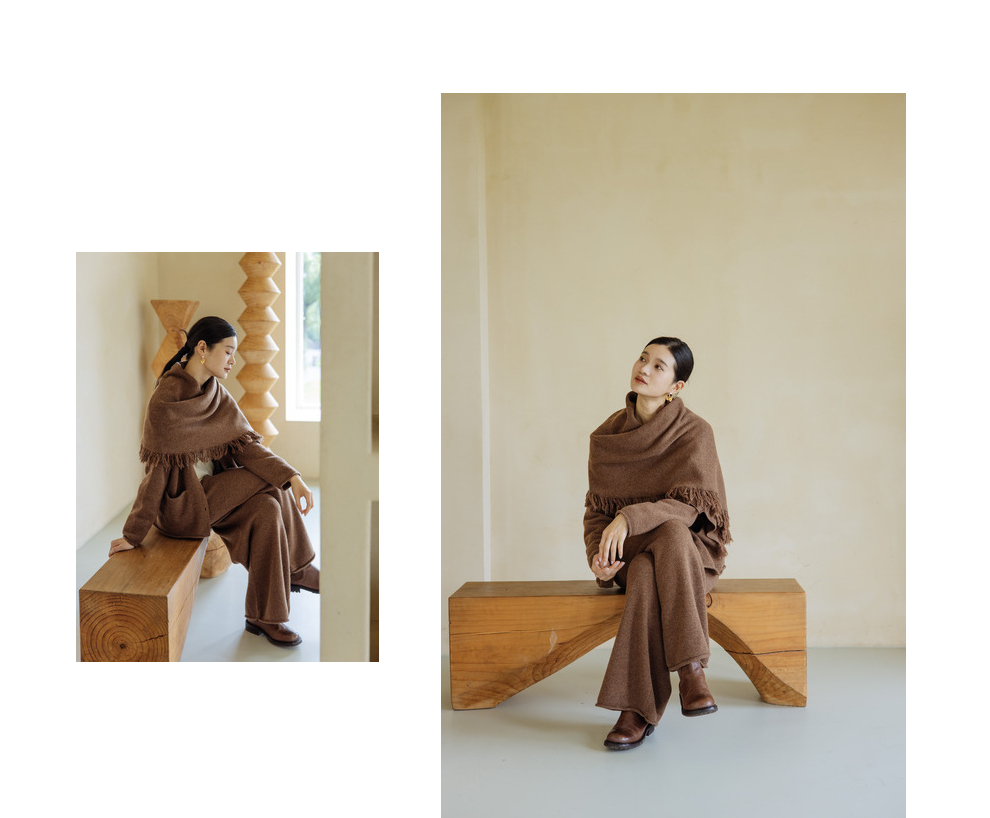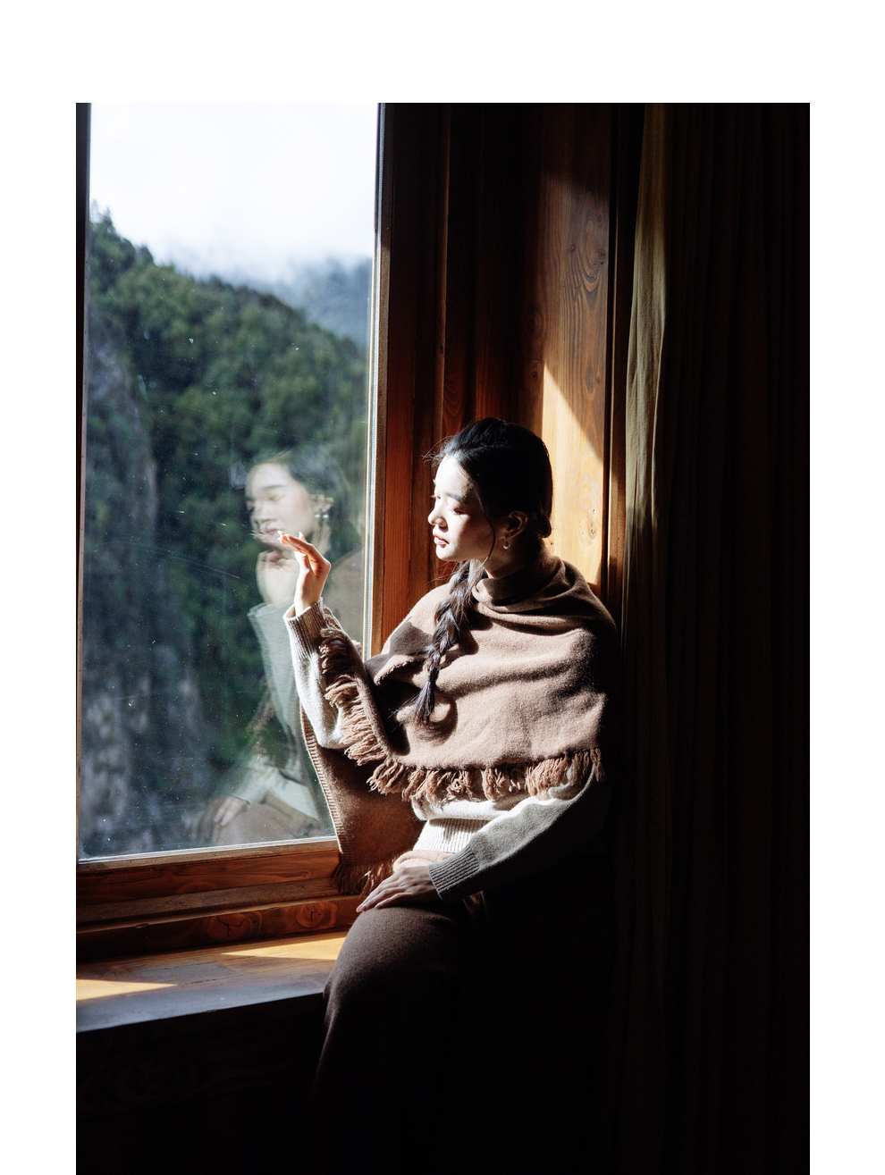 绽放328-366朵/全羊毛夹花卷边文艺女旅行感流苏毛衣开衫披肩套装
