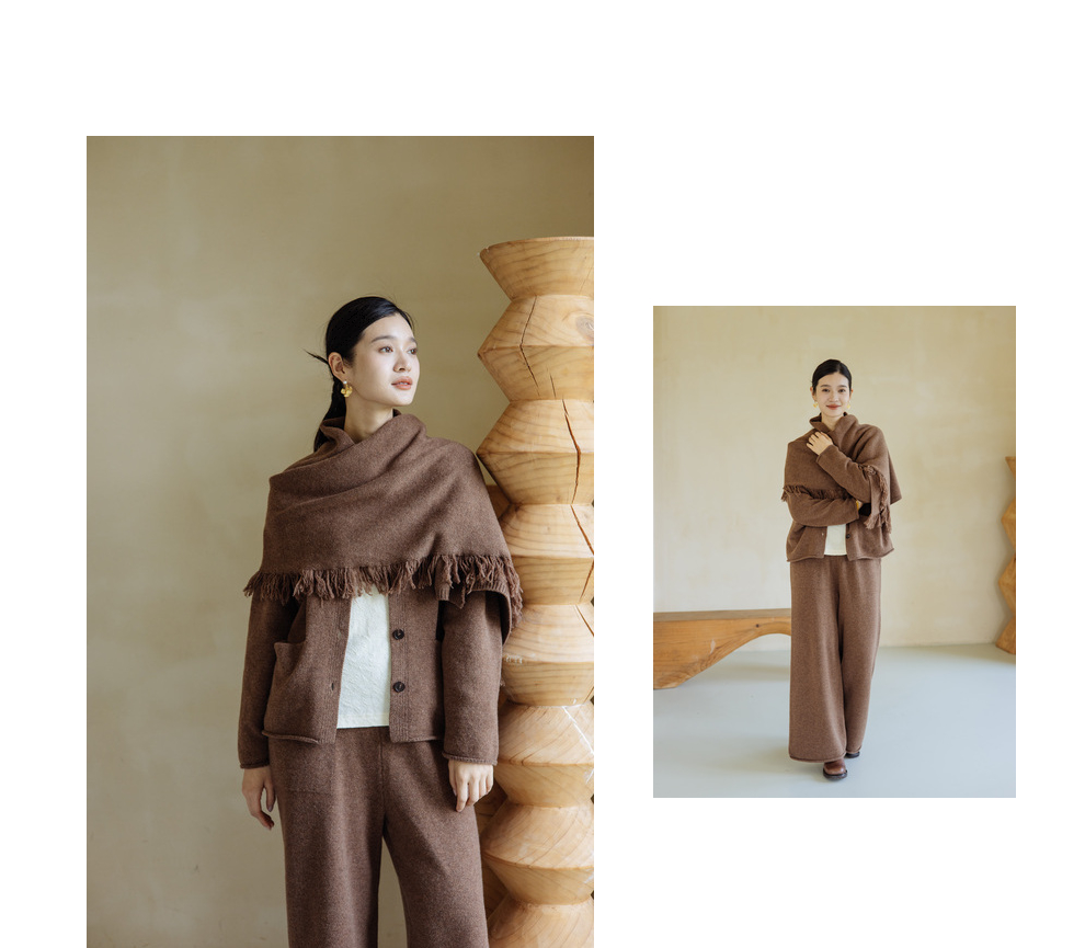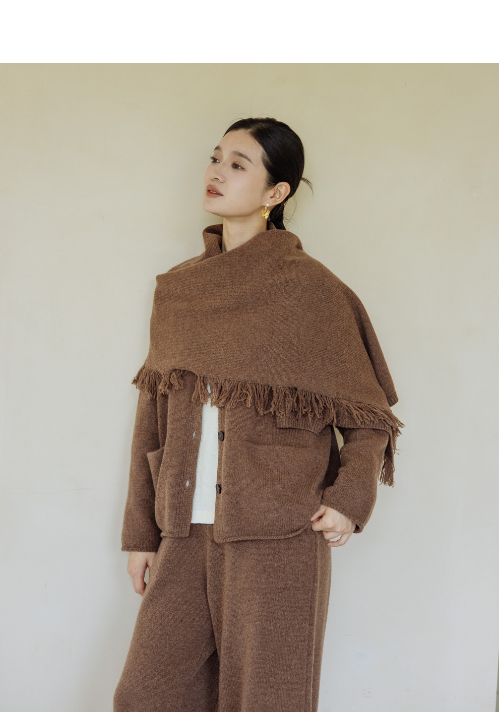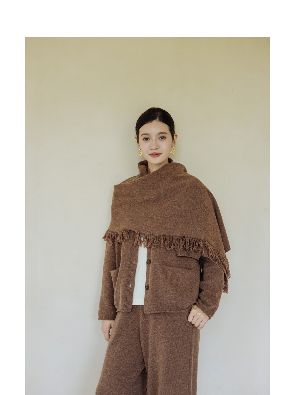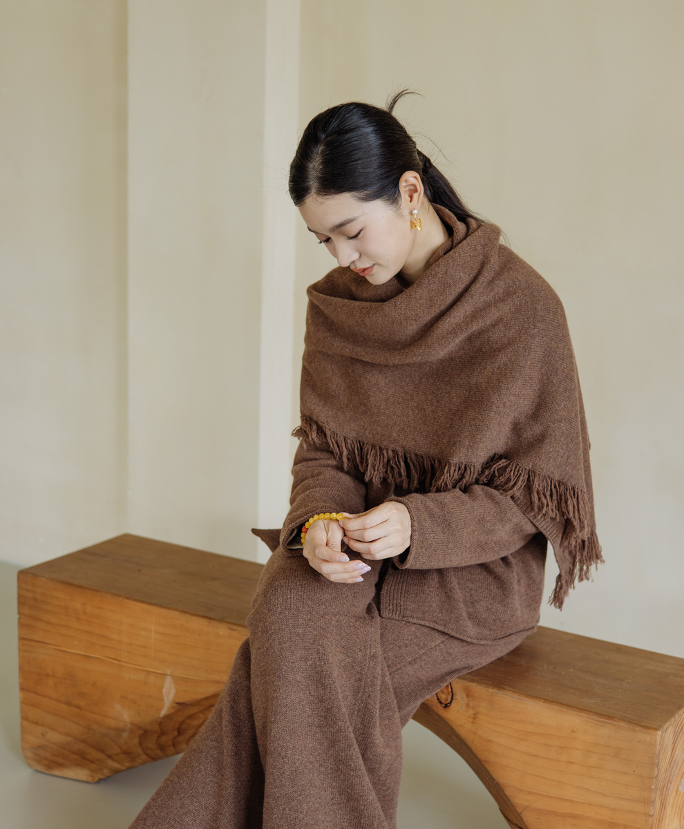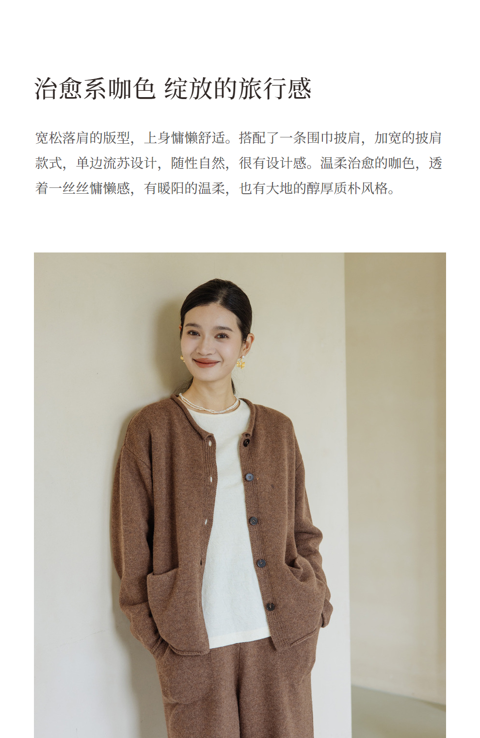 绽放328-366朵/全羊毛夹花卷边文艺女旅行感流苏毛衣开衫披肩套装