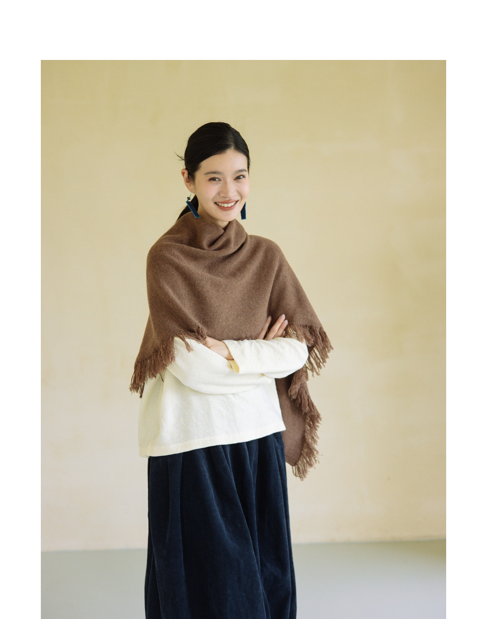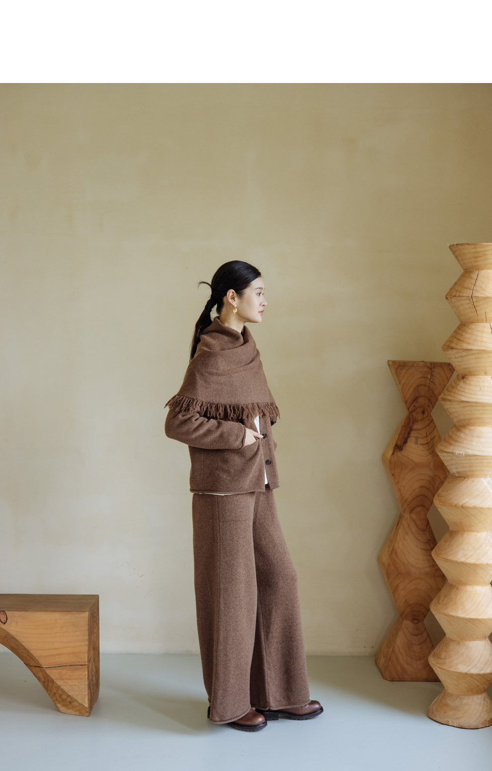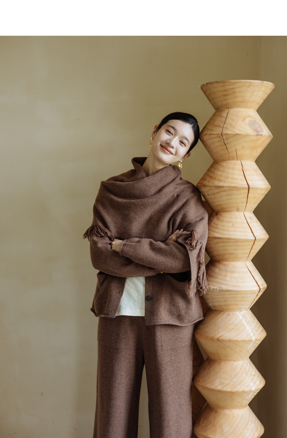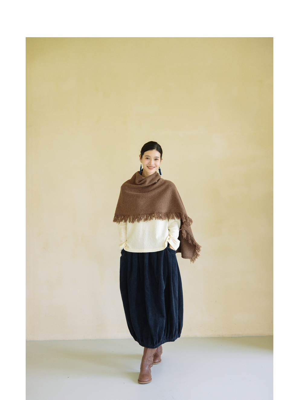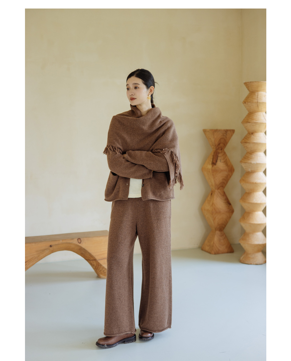 绽放328-366朵/全羊毛夹花卷边文艺女旅行感流苏毛衣开衫披肩套装