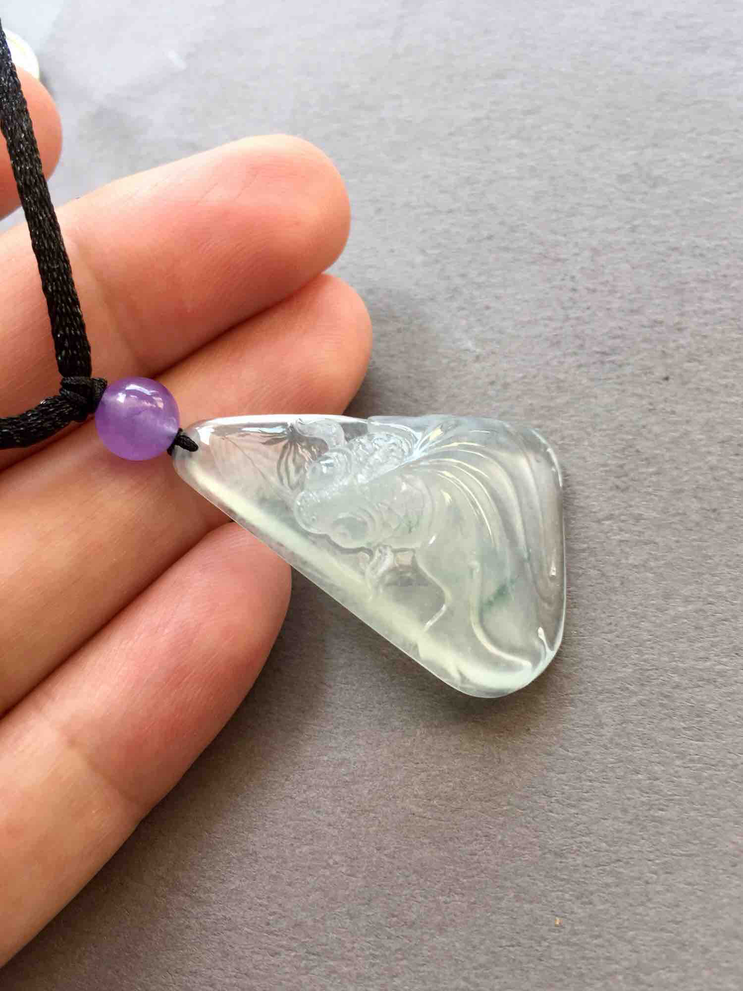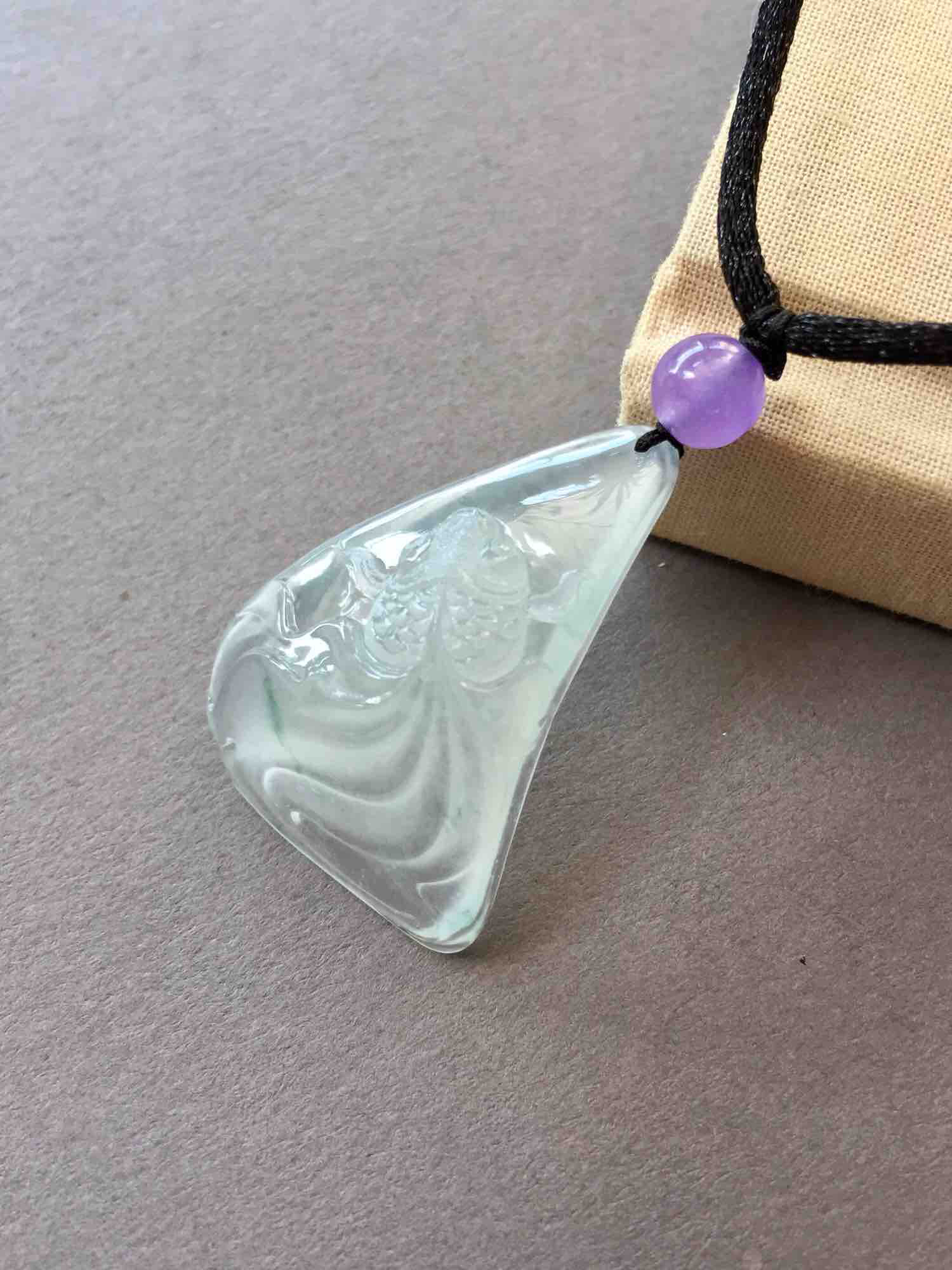 太特别的漂亮宝贝,高冰种金鱼,金玉满堂,35.9×24.9×7.6mm。一件随形的料子,厚实,大气,种水晶莹剔透,荧光四射,巧夺天工的设计和雕刻让人啧啧称奇,栩栩如生的游鱼灵动写意,女性求富贵,精品推荐