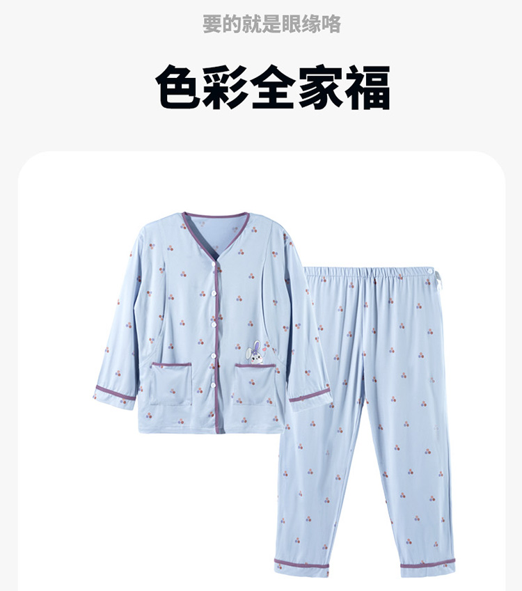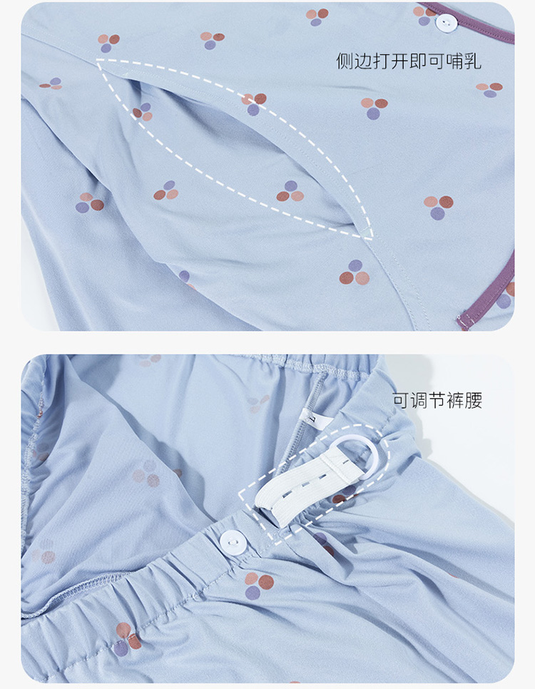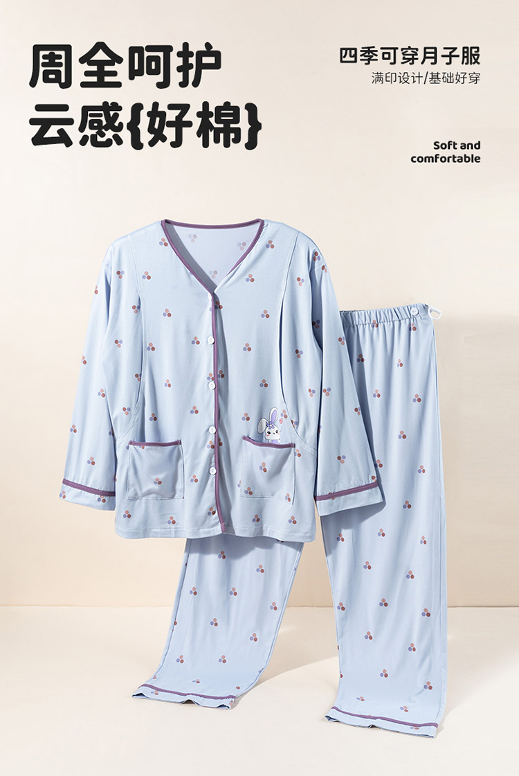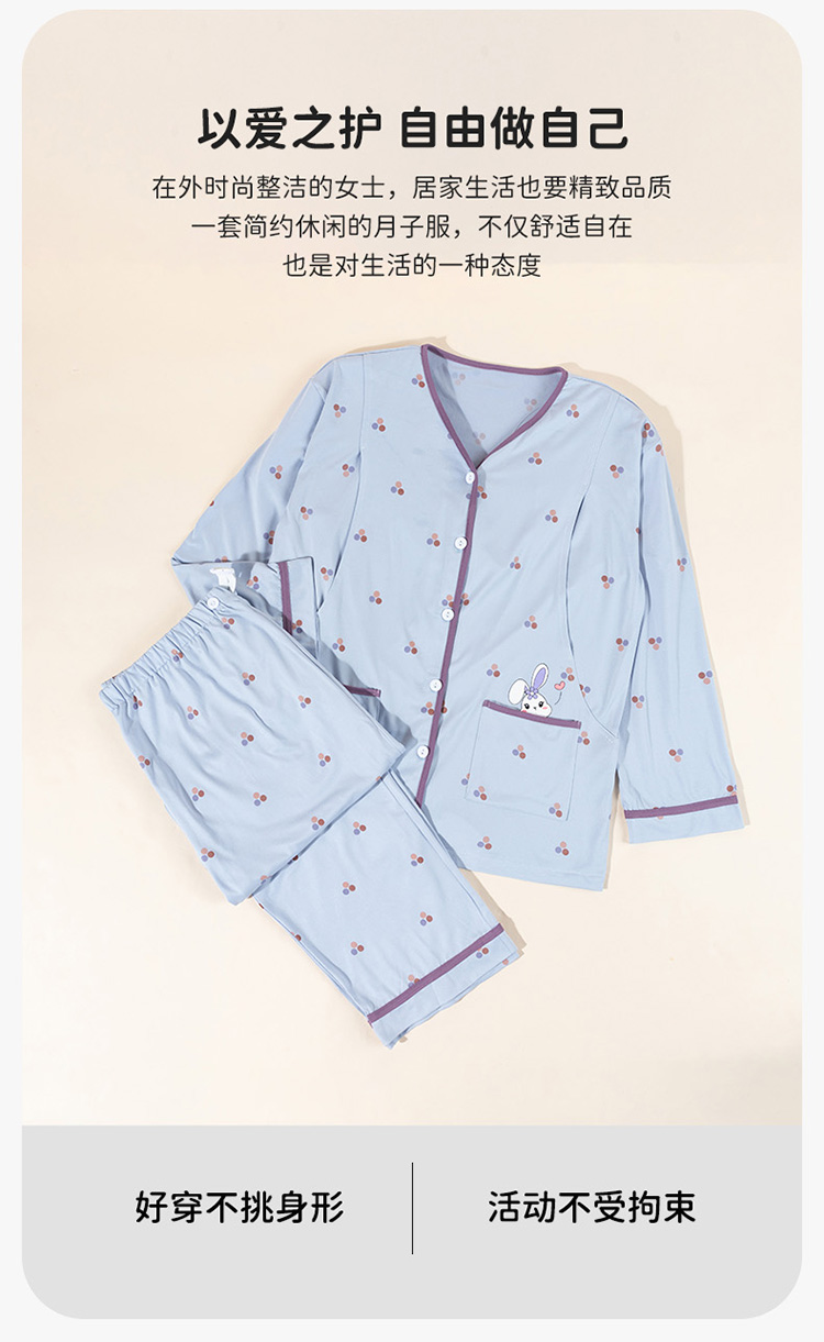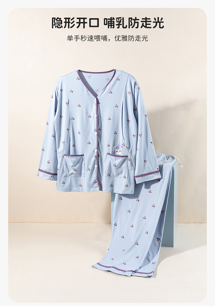 贝贝怡24春秋新款满印月子服侧开便捷哺乳可调腰长裤套装ZB3DY002