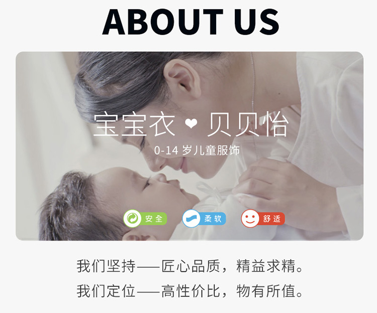 - 贝贝怡专注0-6岁婴幼儿服饰,坚持安全、柔软、舒适的产品理念,为千万中国家庭提供超高品质、安全可靠的婴幼儿服饰产品,妈妈放心,宝宝开心!