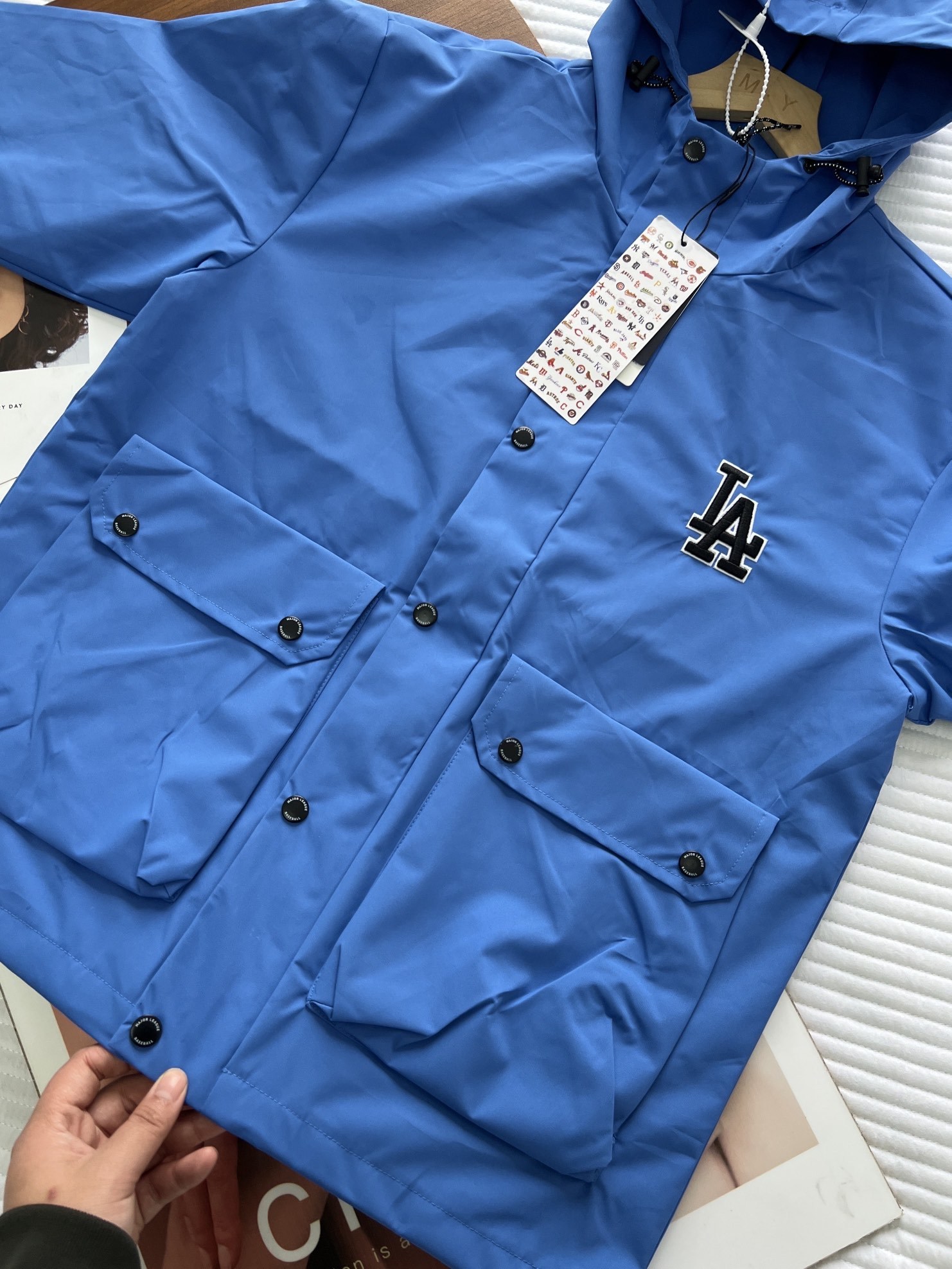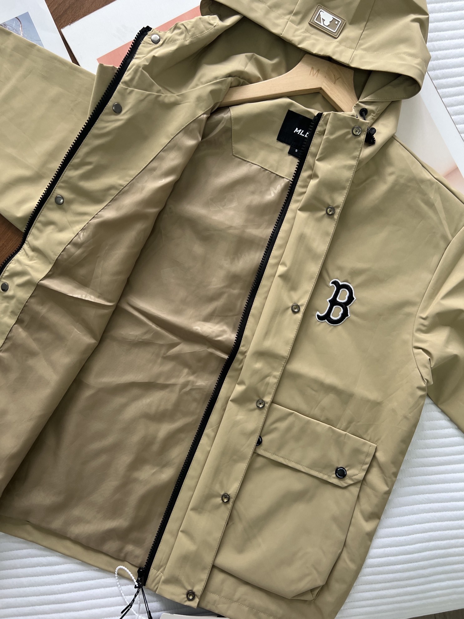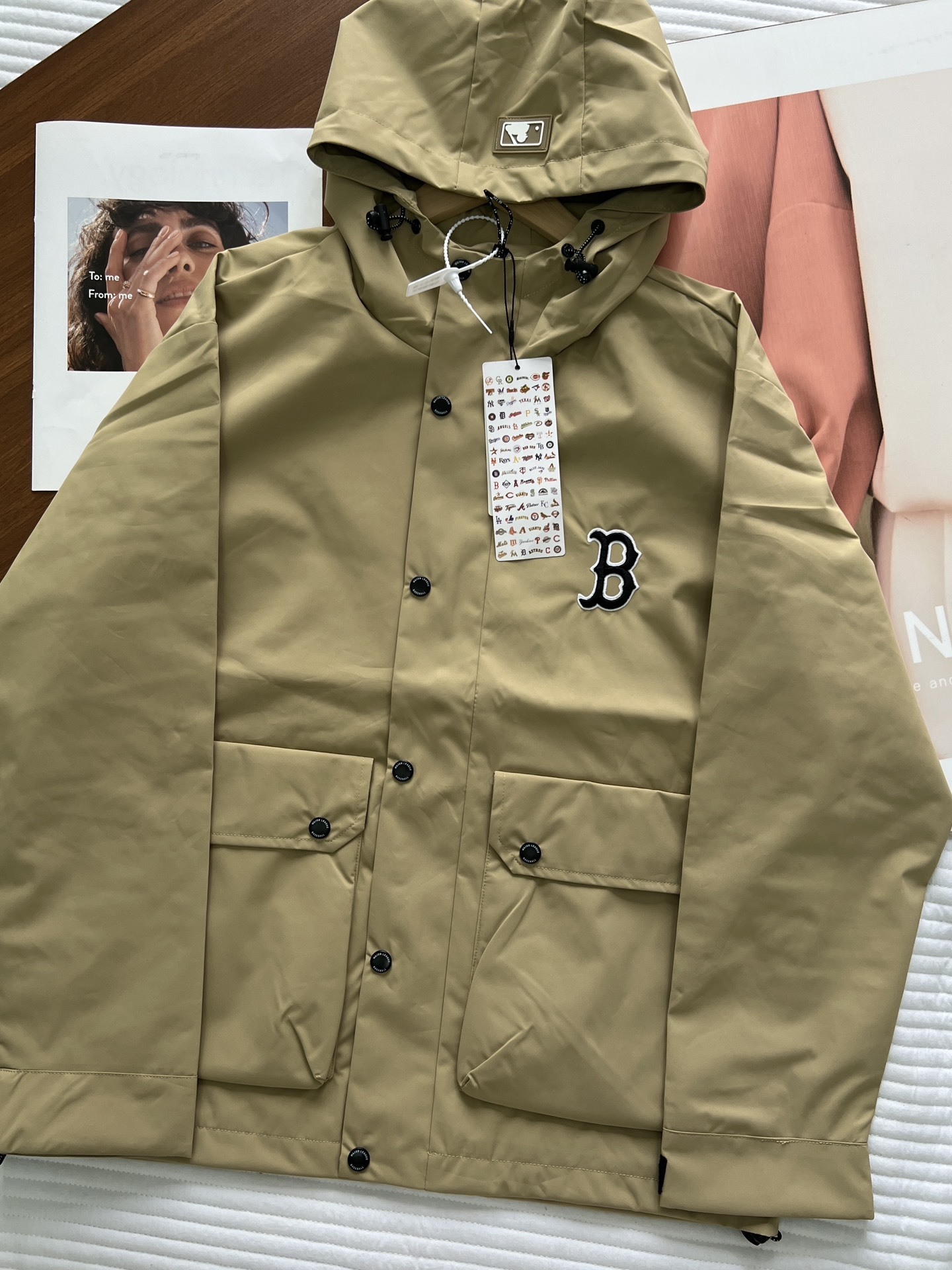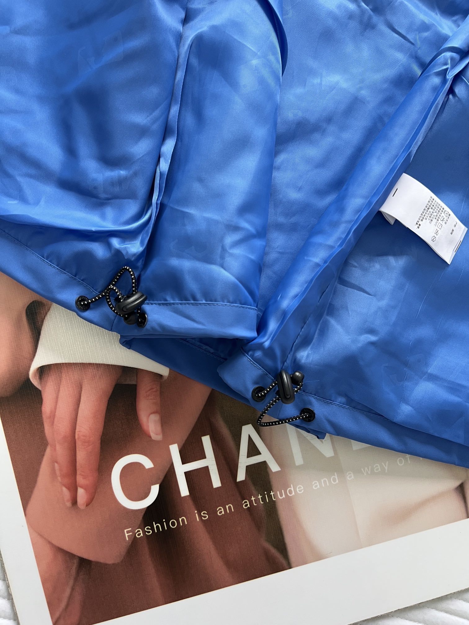 高领连帽设计,魔术贴闭合袖口,不管是风帽领口,还是下摆,都做了防风抽绳设计,款式不挑人,包容身材。