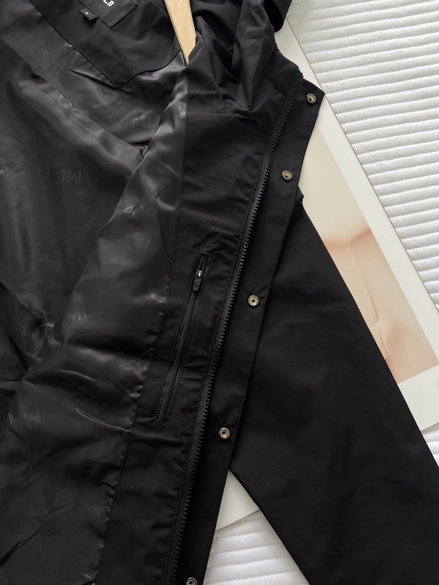 新款,秋季防风夹克,简约纯色的基础版型,拉链+挡风按扣的双重闭合方式。