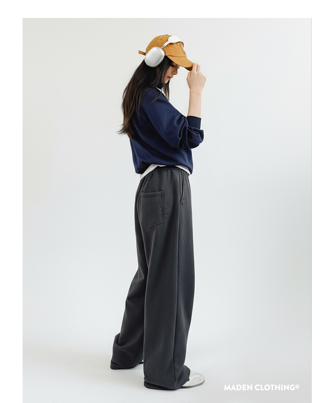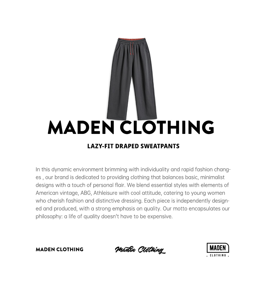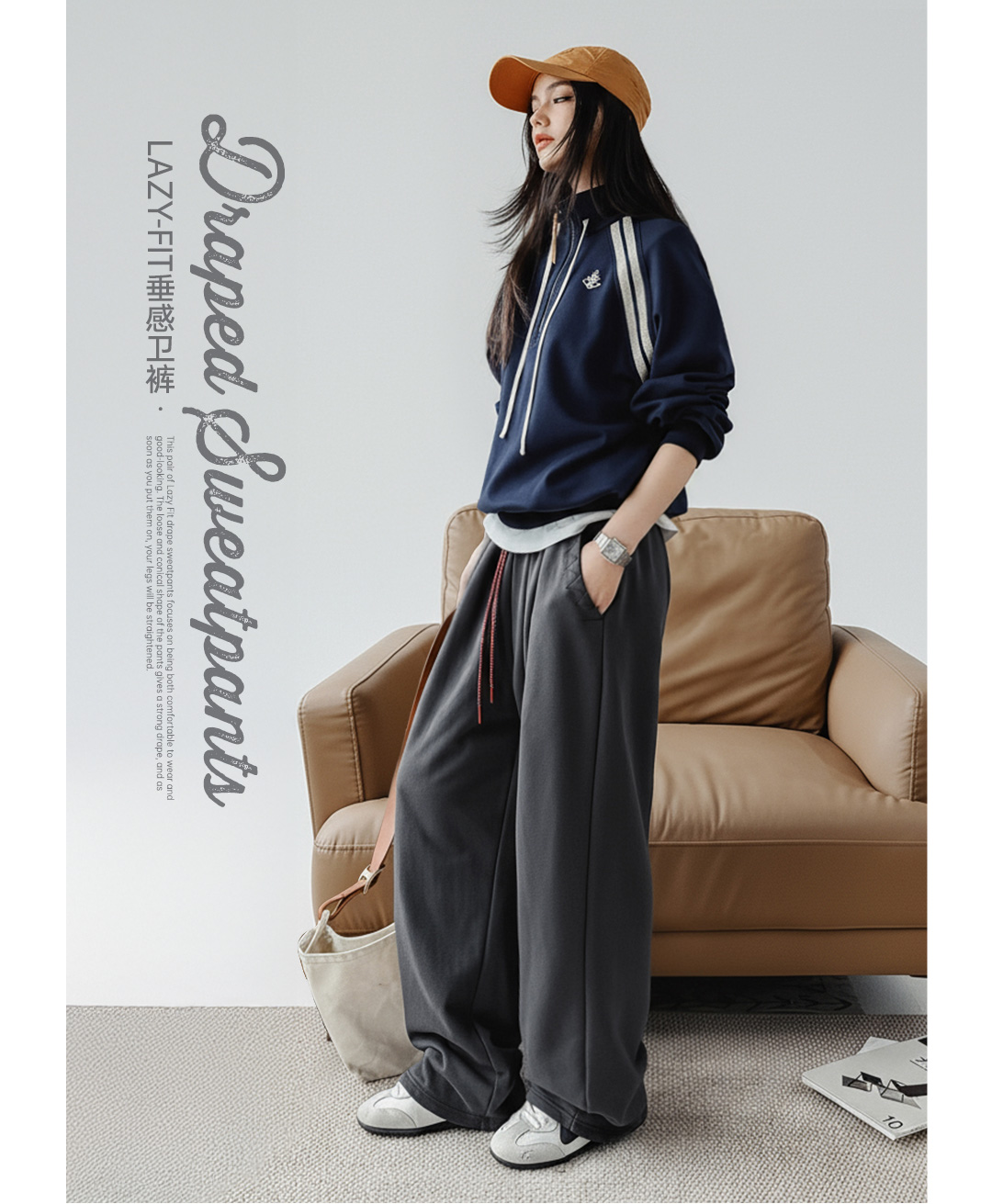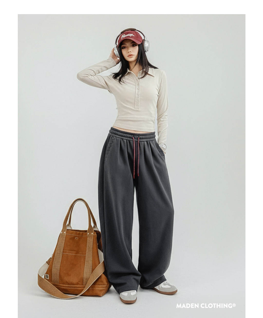 马登深灰色针织阔腿直筒垂感抽绳卫裤宽松休闲香蕉长裤子女士秋冬