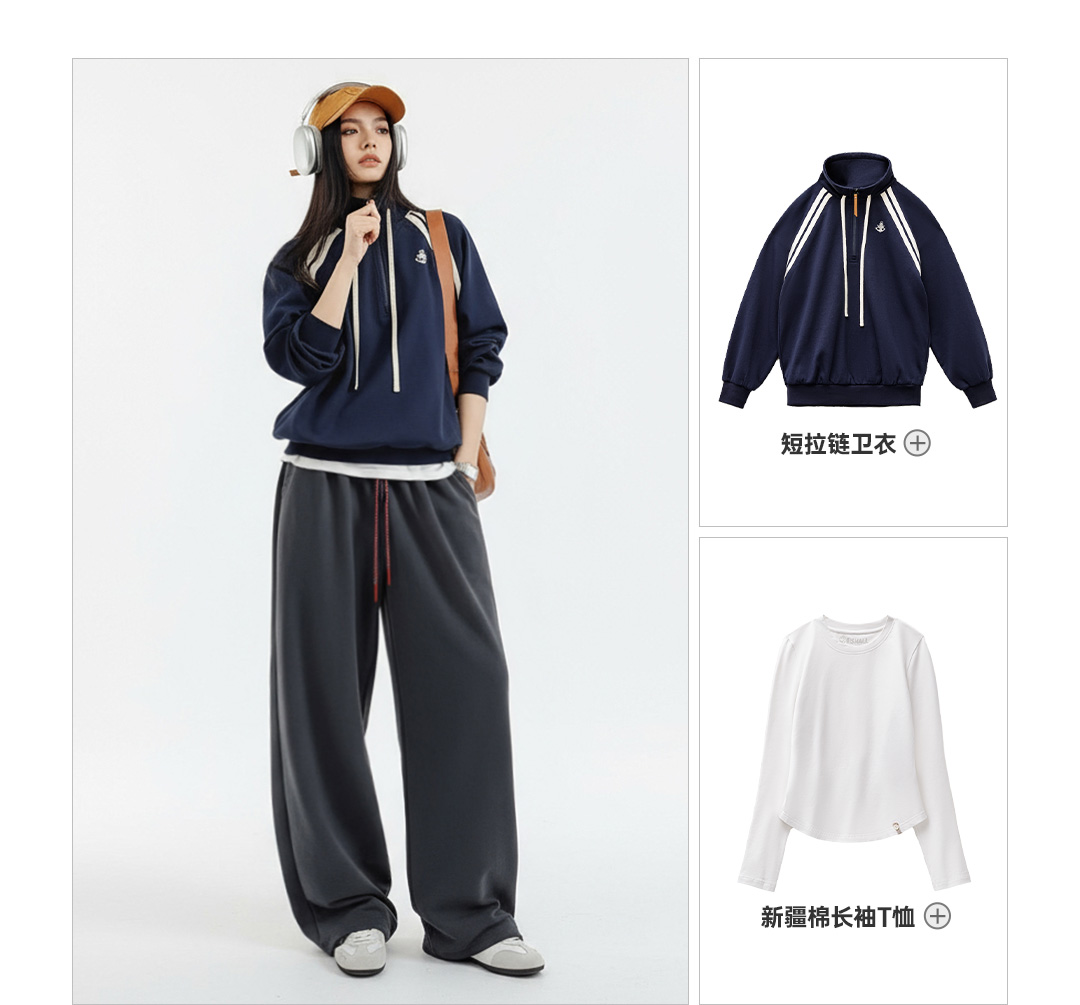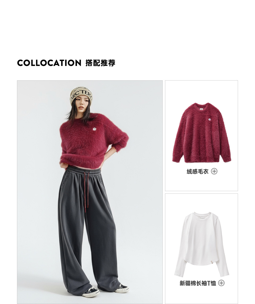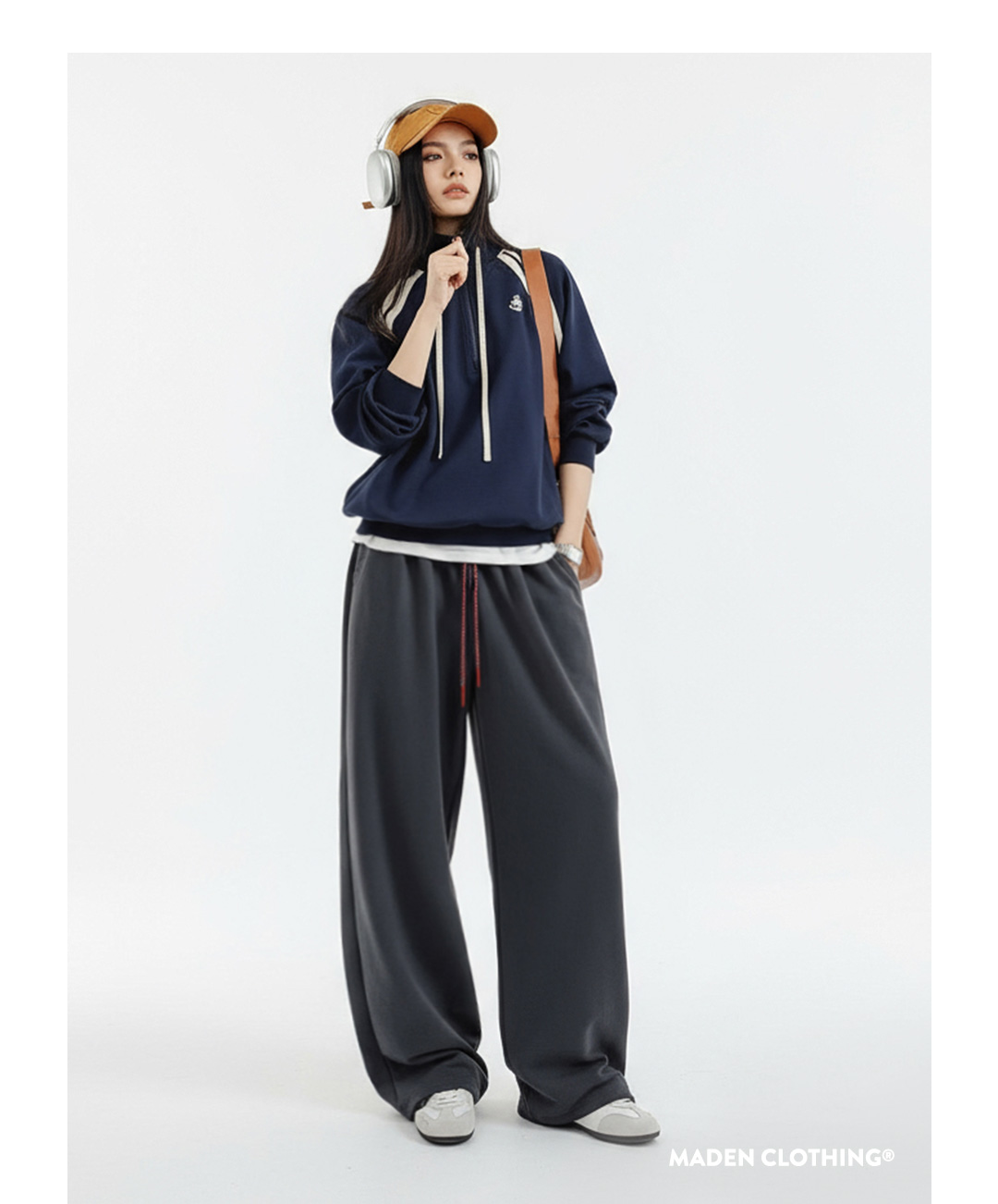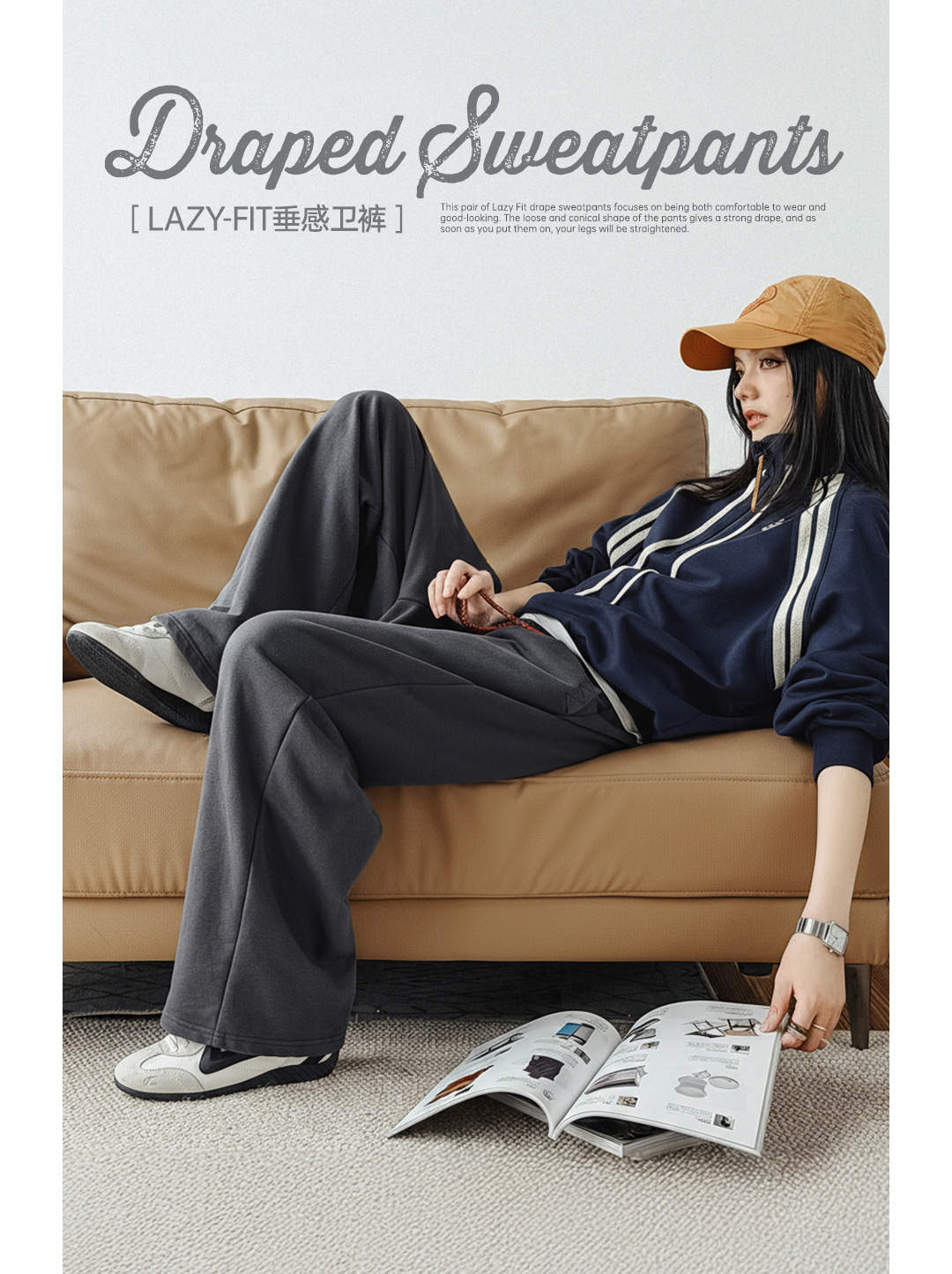 马登深灰色针织阔腿直筒垂感抽绳卫裤宽松休闲香蕉长裤子女士秋冬