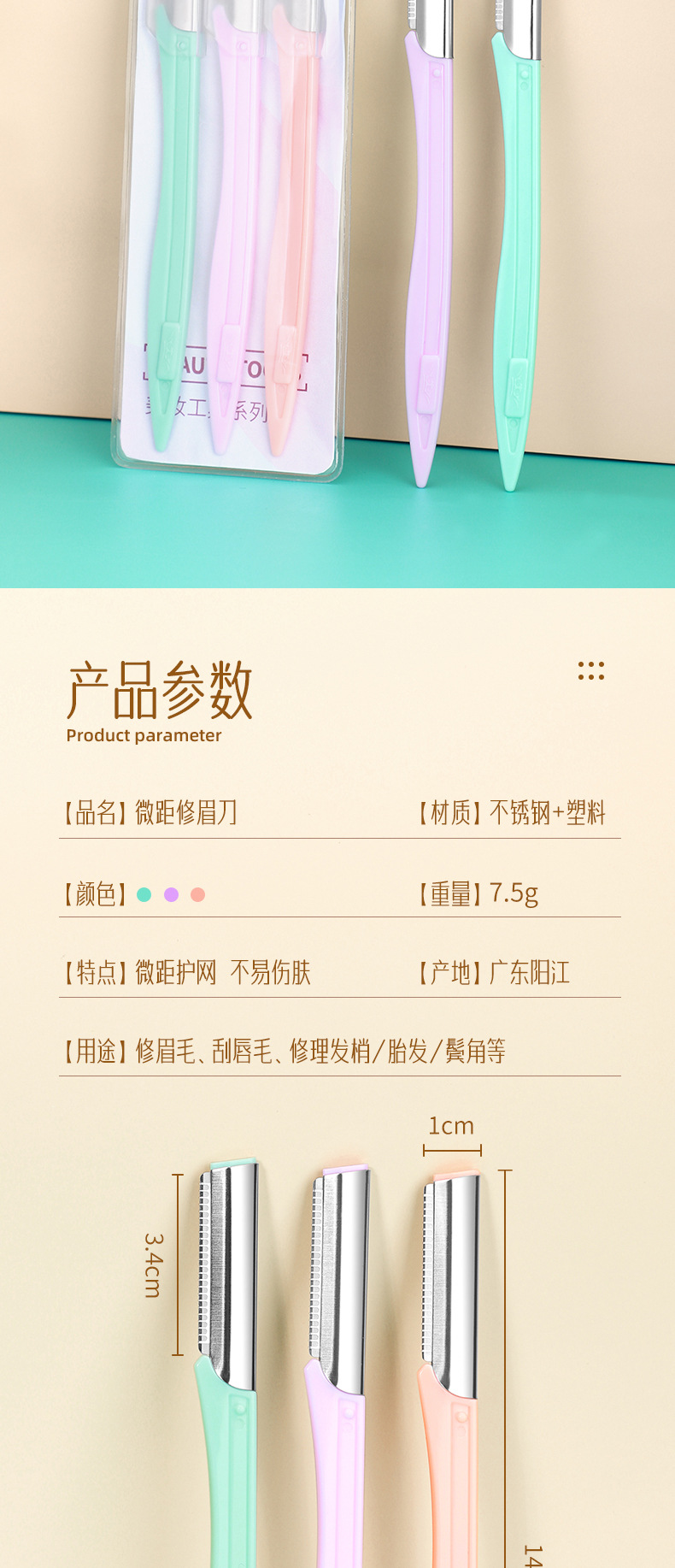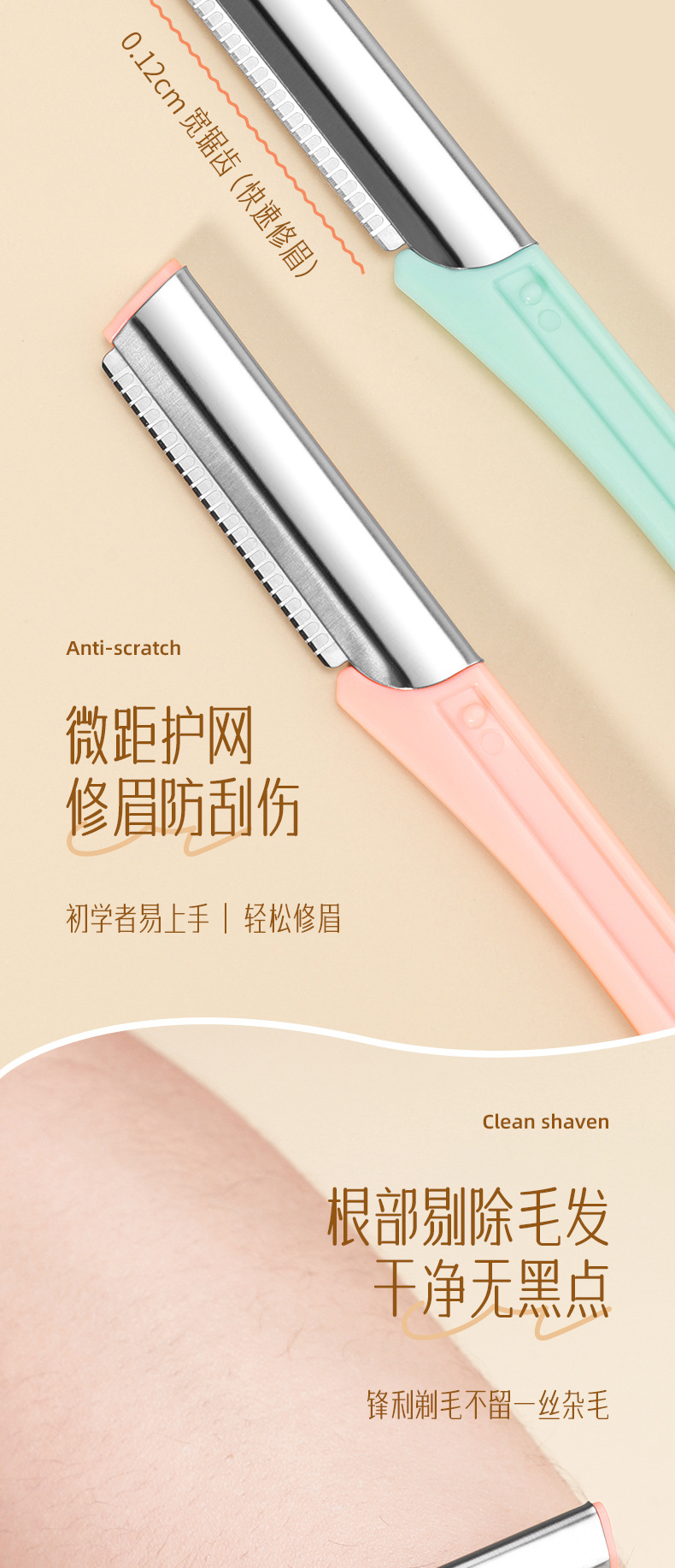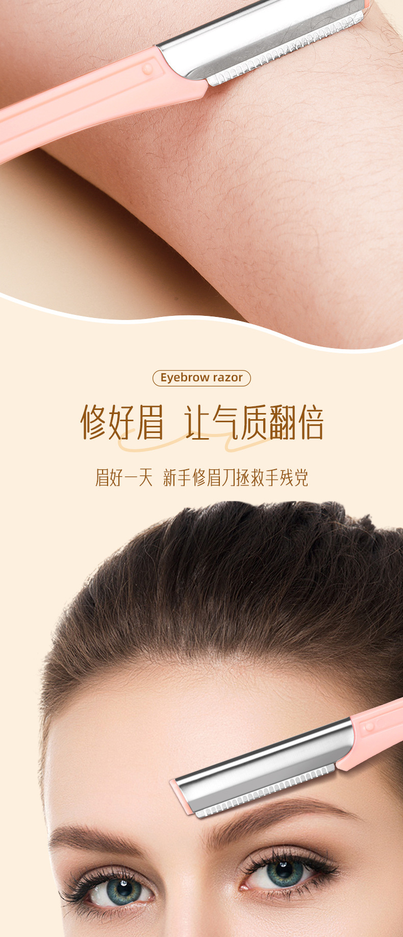 修眉刀套装 女士刮眉刀剃毛刀 微距防刮修眉工具美妆工具 1件