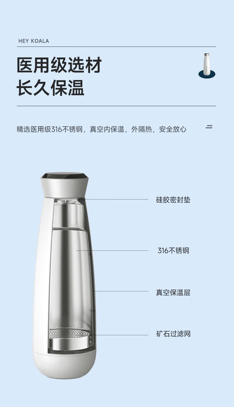 【品名】HEY KOALA嘿考拉 智能瘦瘦杯 410ml 316不锈钢 【规格】白色 410ml 【产地】国内 【发货包装】独立包装盒 【发货地】浙江 【发货快递】邮政,中通,圆通 【不发货区域】新疆、西藏、港澳台 【发货时效】48-72小时,周末节假日顺延 【特别提醒】建议装50度以下的水,增加底部矿石的有效寿命~ 如果长期用100度开水,或是有碳酸 氧化 物品,根据时间会减短寿命,最消耗的6-12个月(根据个人使用养护情况决定矿石寿命长短) |