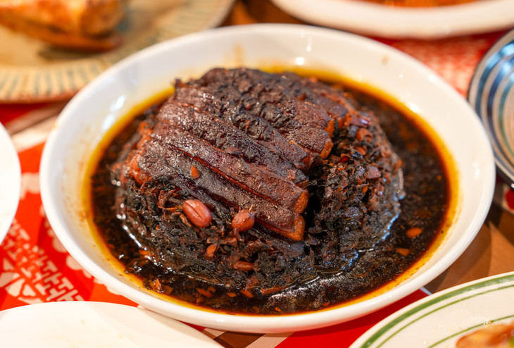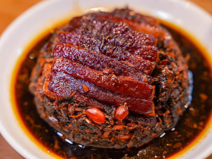 原料:牧童心五花肉,潘姐梅干菜&笋豆,自制泡椒,禾然酱油,有机老抽,有机白砂糖,亮亮小黄姜,沃翠源大蒜,蚝油,米酒姐姐米酒