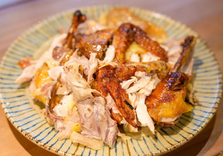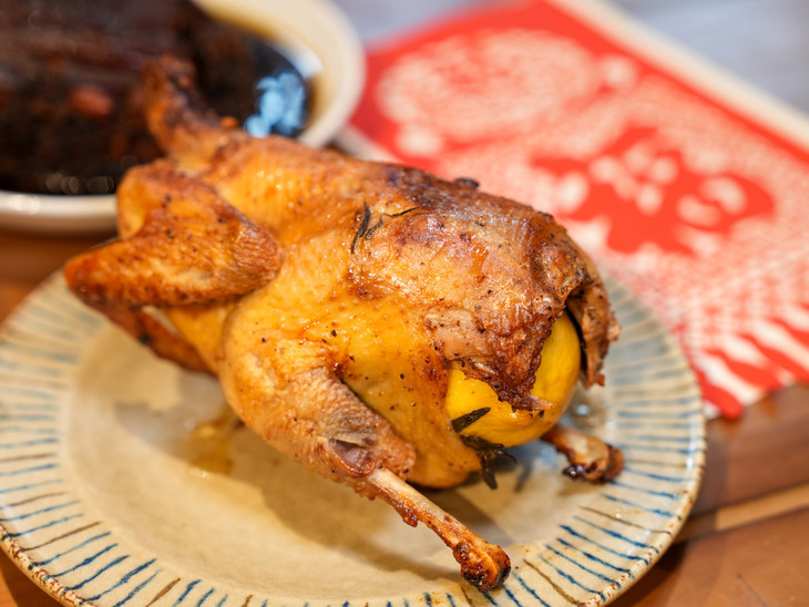 原料:古农农场仔母鸡,云艳农场柠檬、德润屋迷迭香、哈姆谷菜籽油、生态黄油、藏青盐、黑胡椒