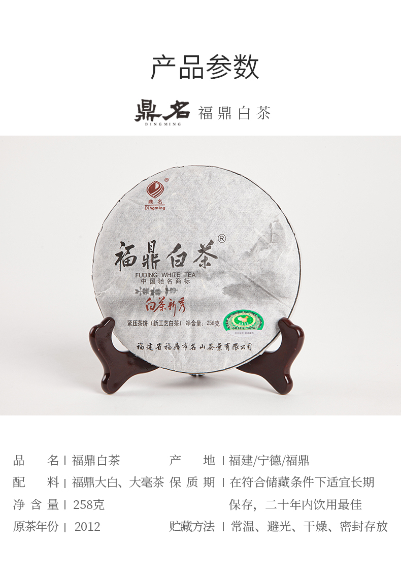 太姥山韵·福鼎白茶饼2012年白茶新秀258g 成箱规格:6提共42饼