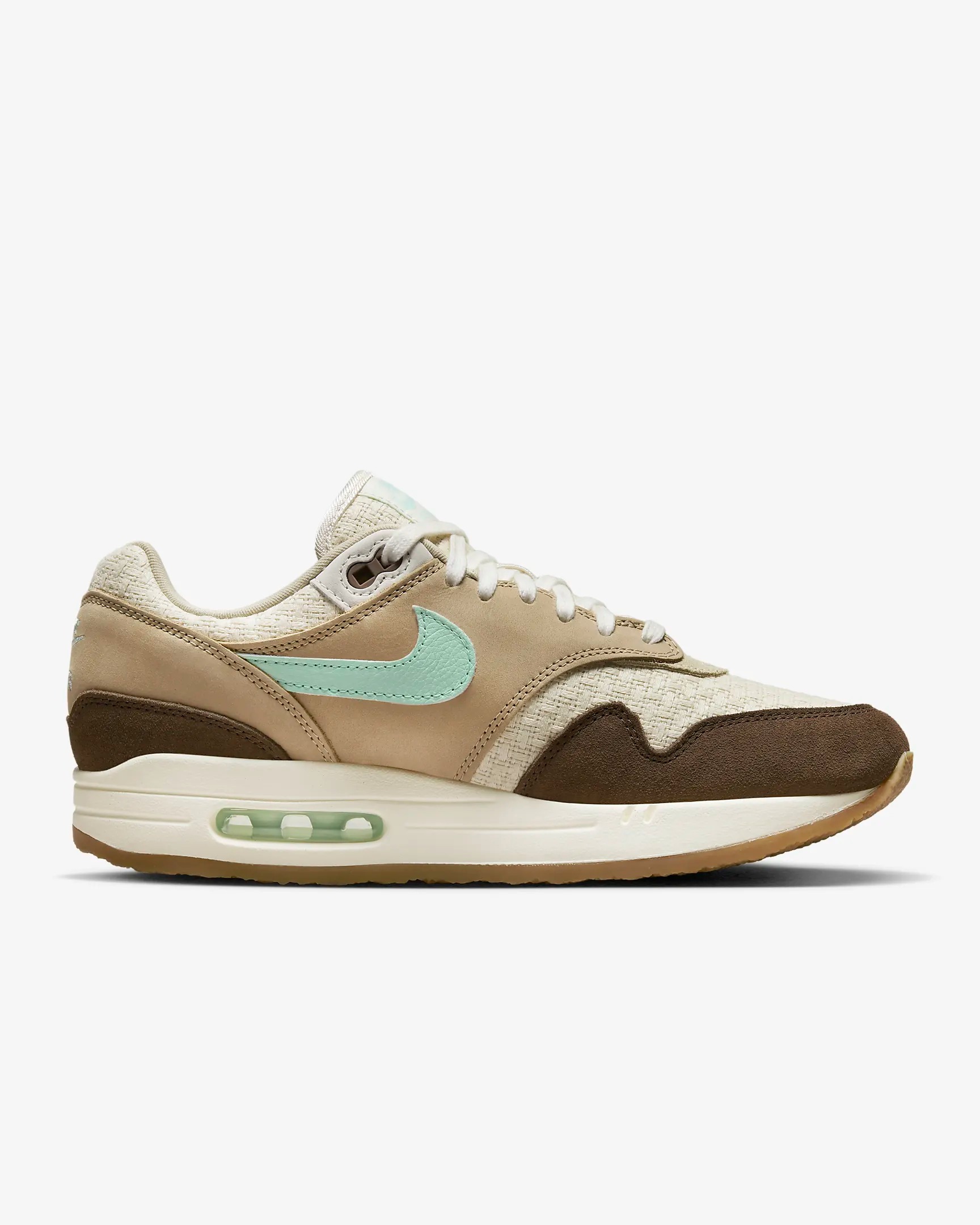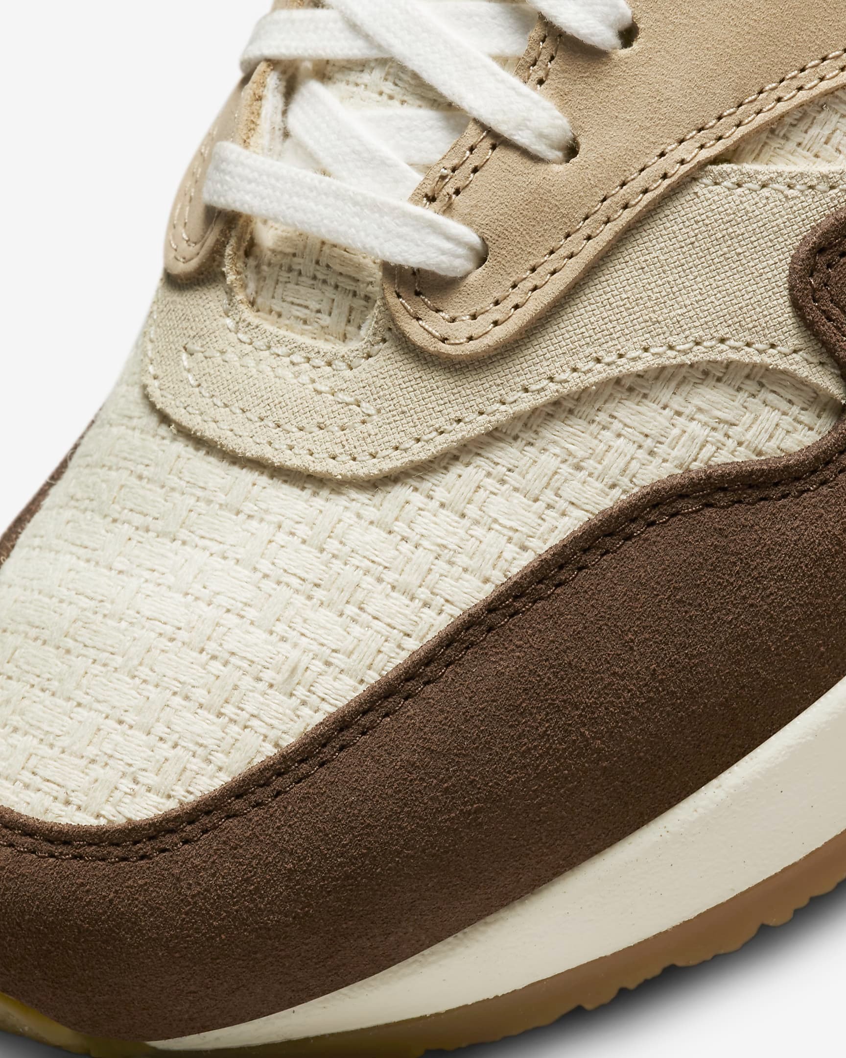 它的设计灵感来自于2004年的Air Max 1 "Crepe Hemp",采用了大麻帆布和麂皮材质,鞋底使用了Crepe材质,使得整个鞋子看起来非常时尚和高端。同时,这款鞋子的鞋底非常柔软,穿着非常舒适。它的设计风格非常休闲,适合日常穿着。