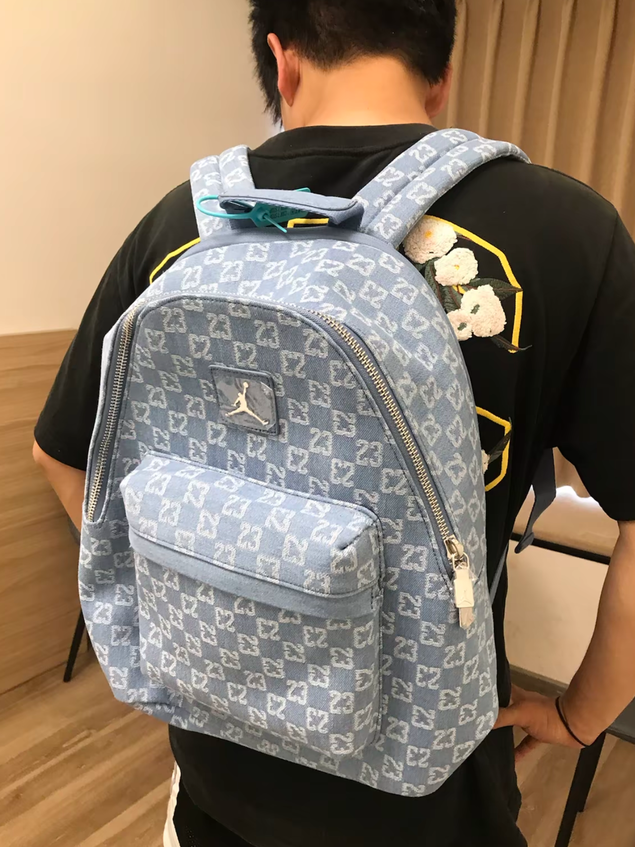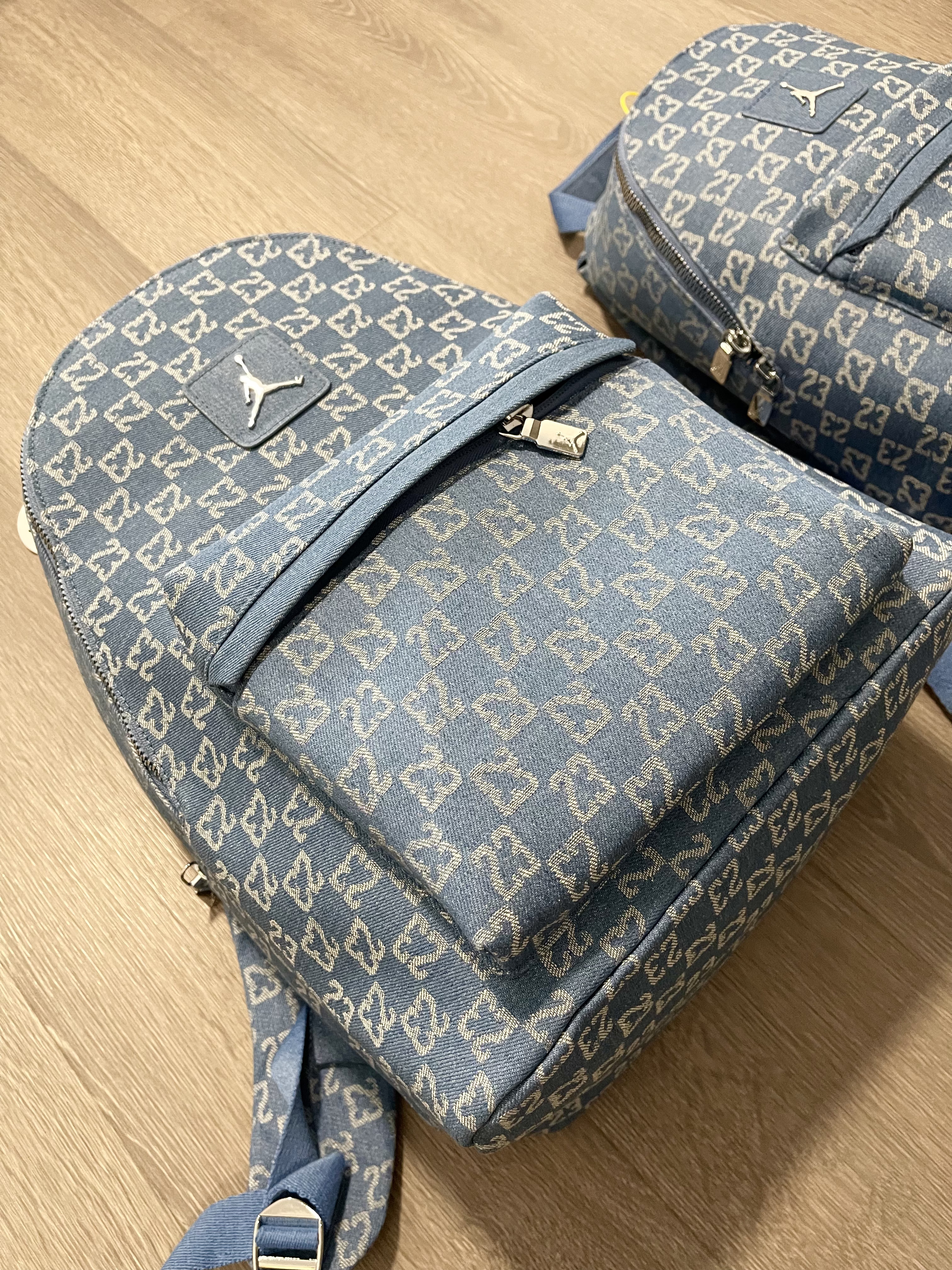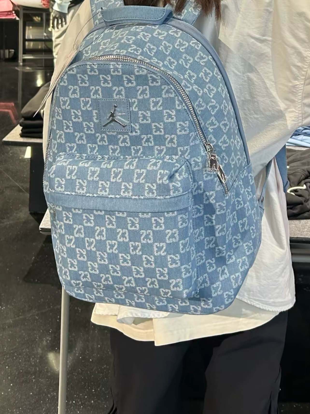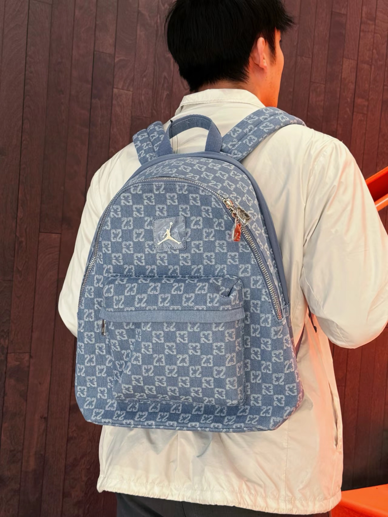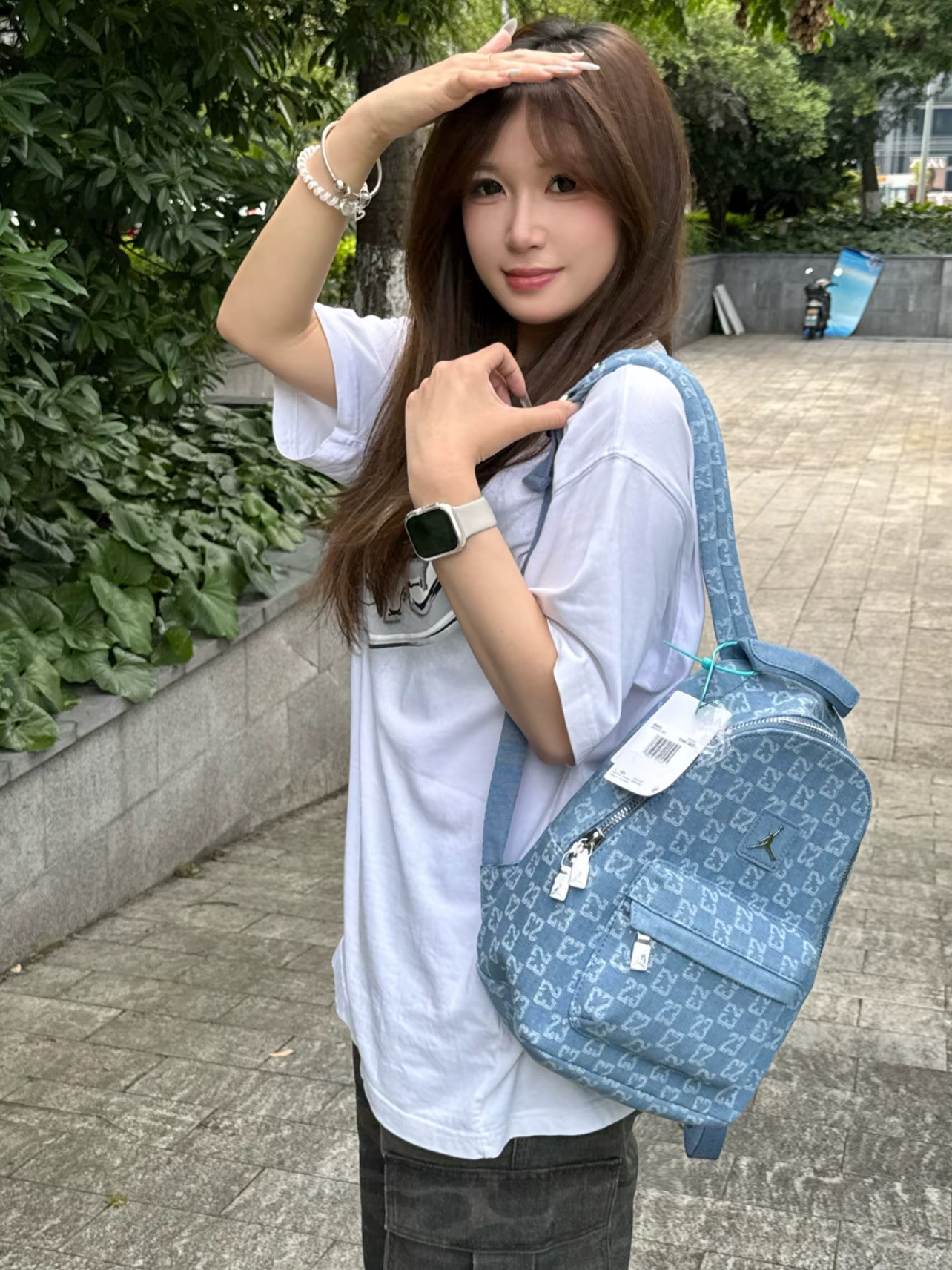 Jordan乔丹小标印花背包 老花牛仔蓝运动双肩包,情侣款!!
