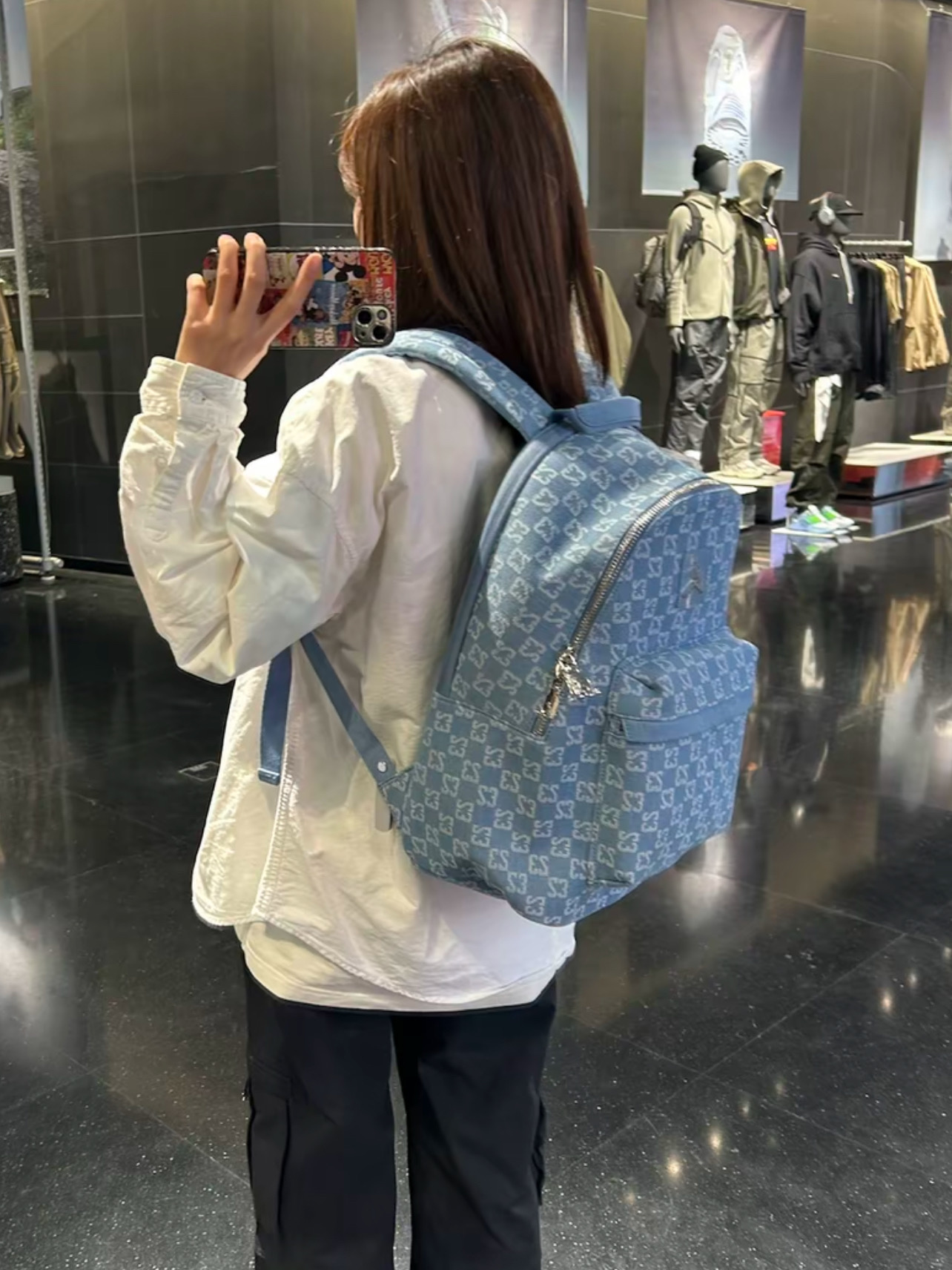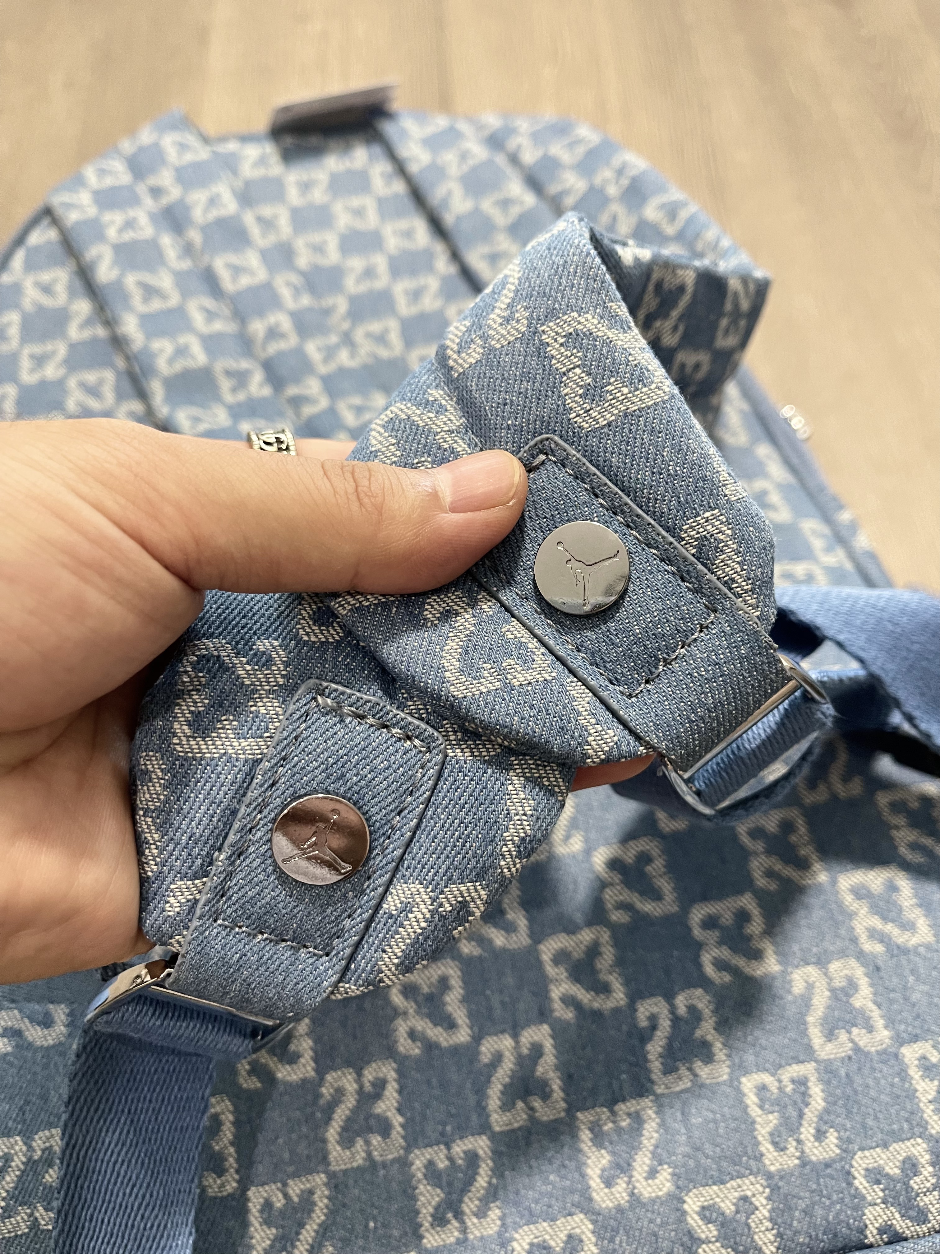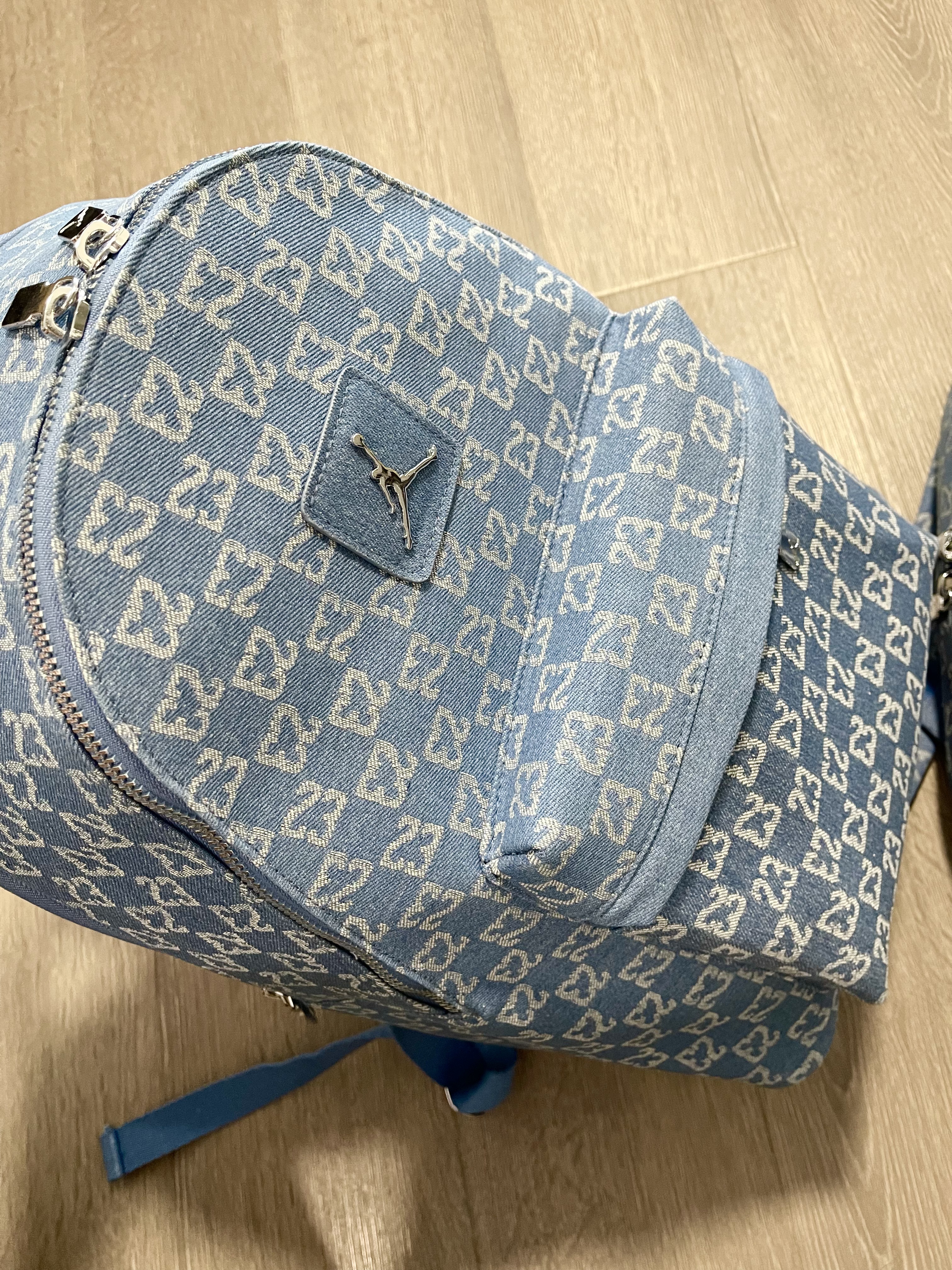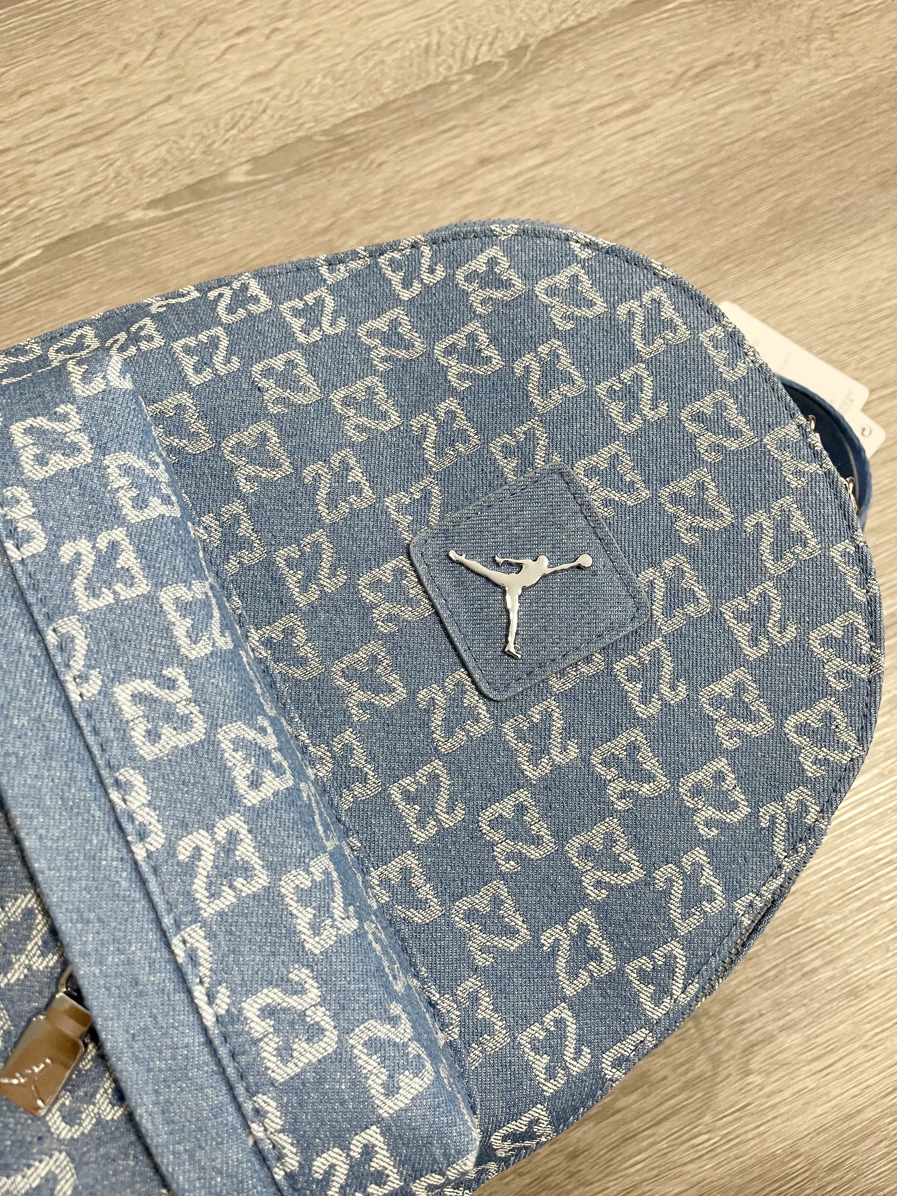 Jordan乔丹小标印花背包 老花牛仔蓝运动双肩包,情侣款!!