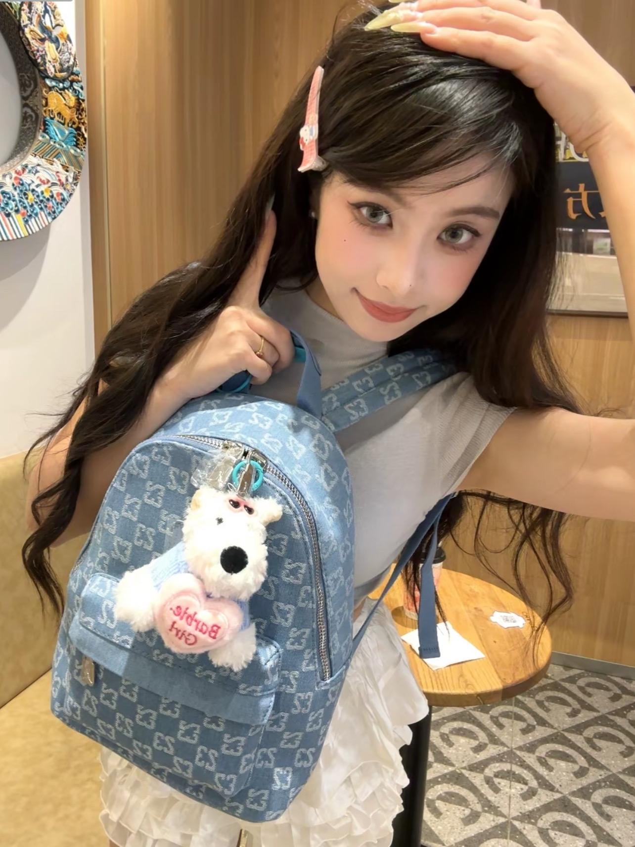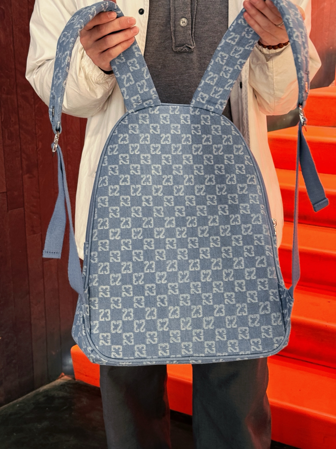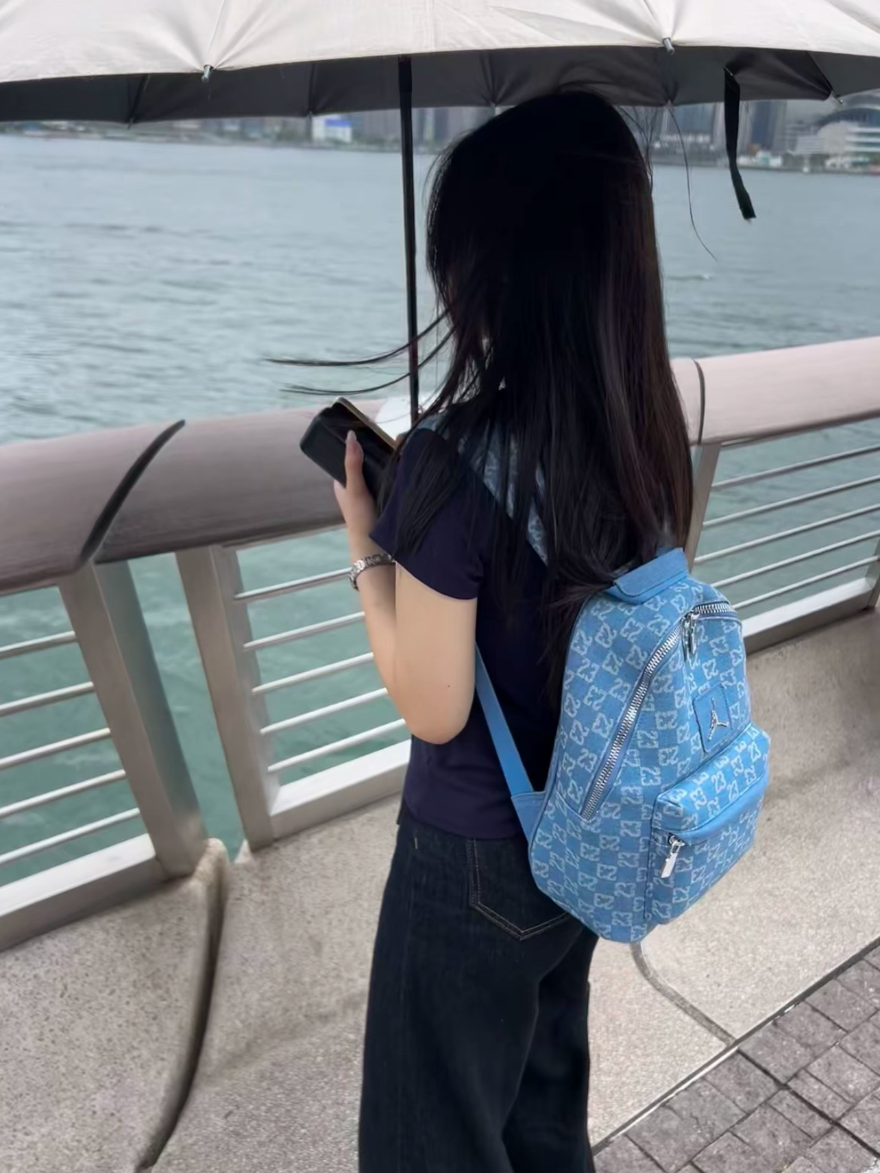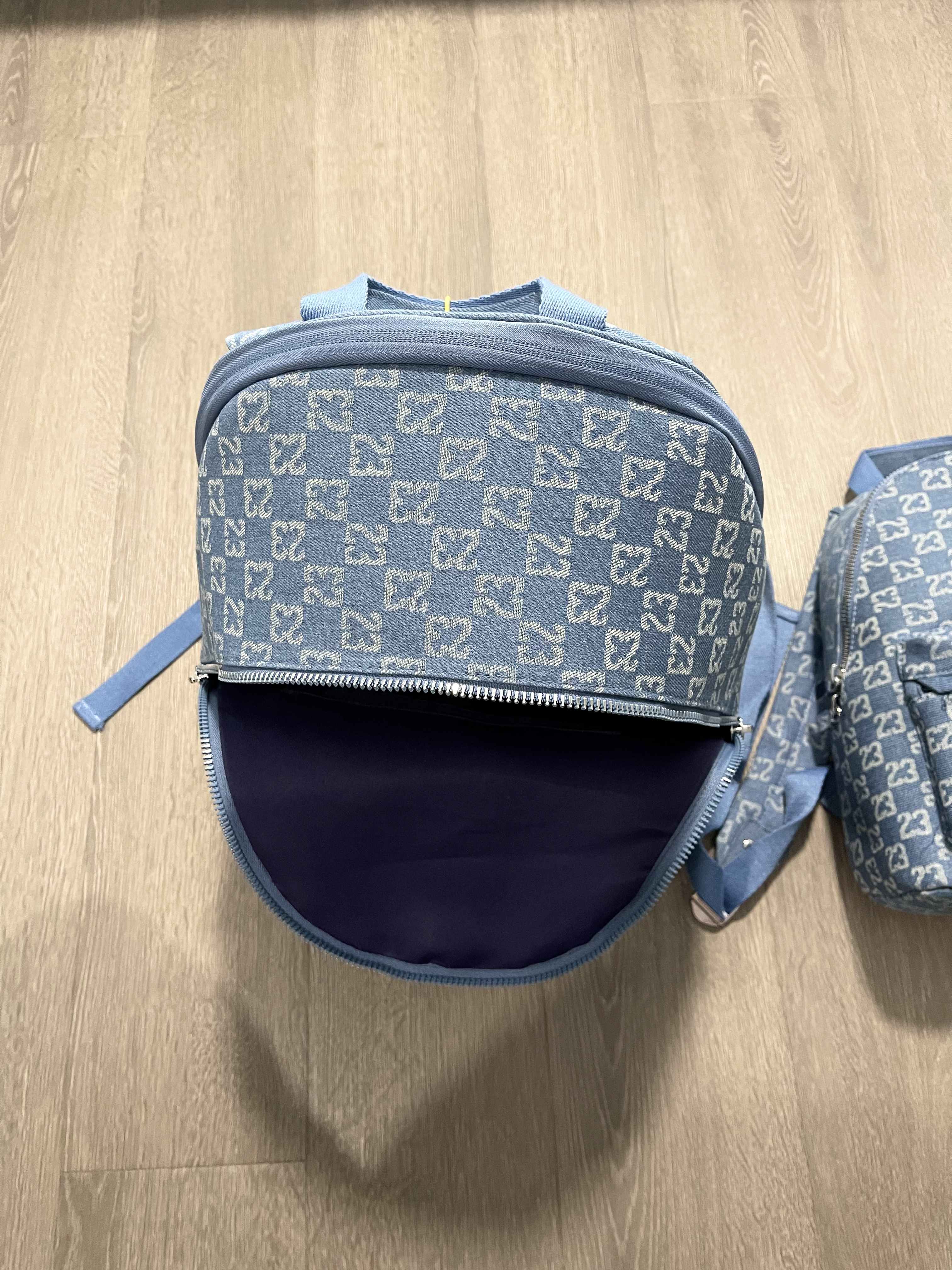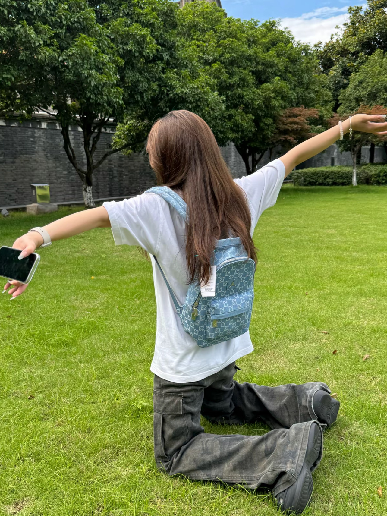 Jordan乔丹小标印花背包 老花牛仔蓝运动双肩包,情侣款!!