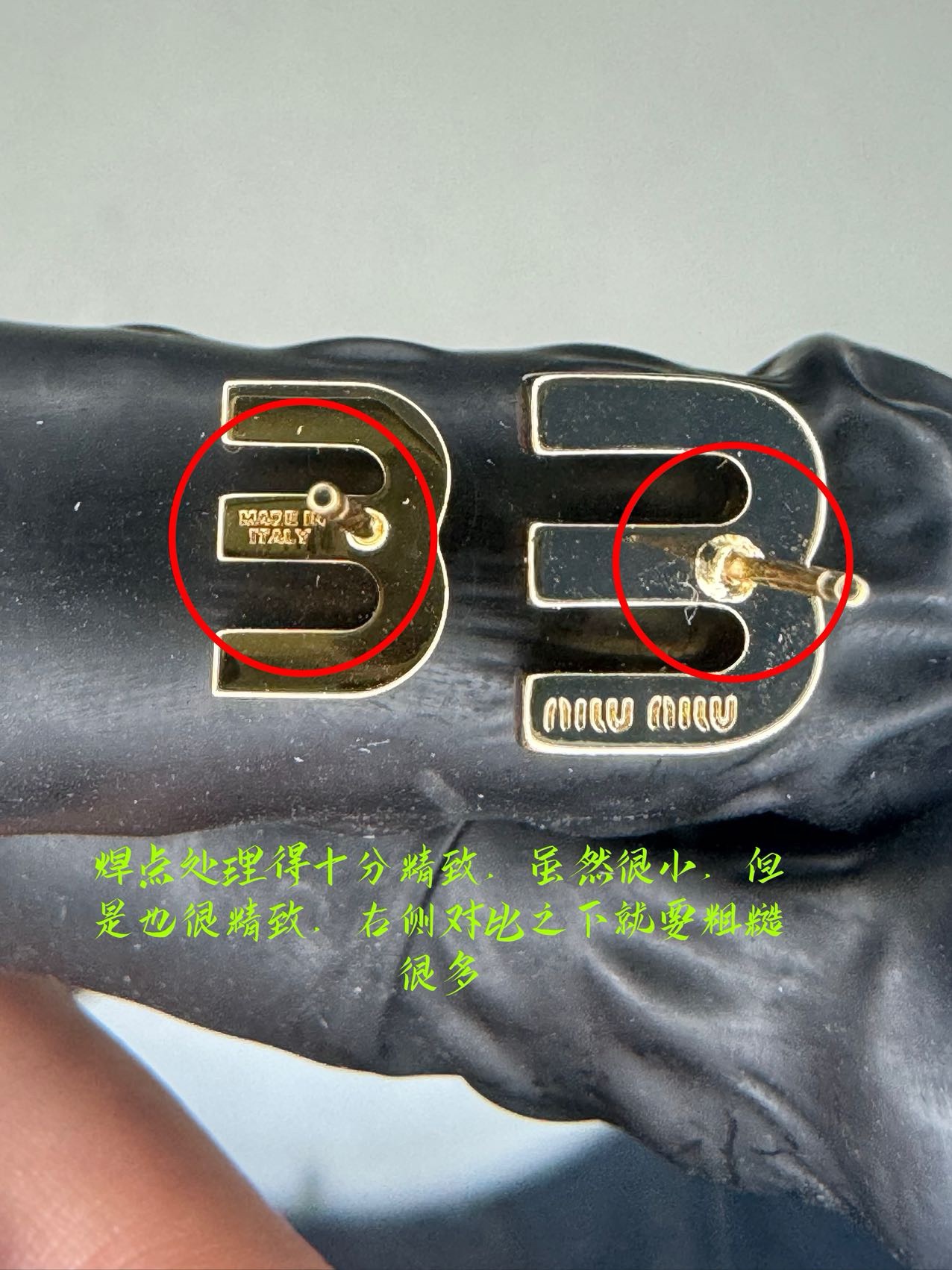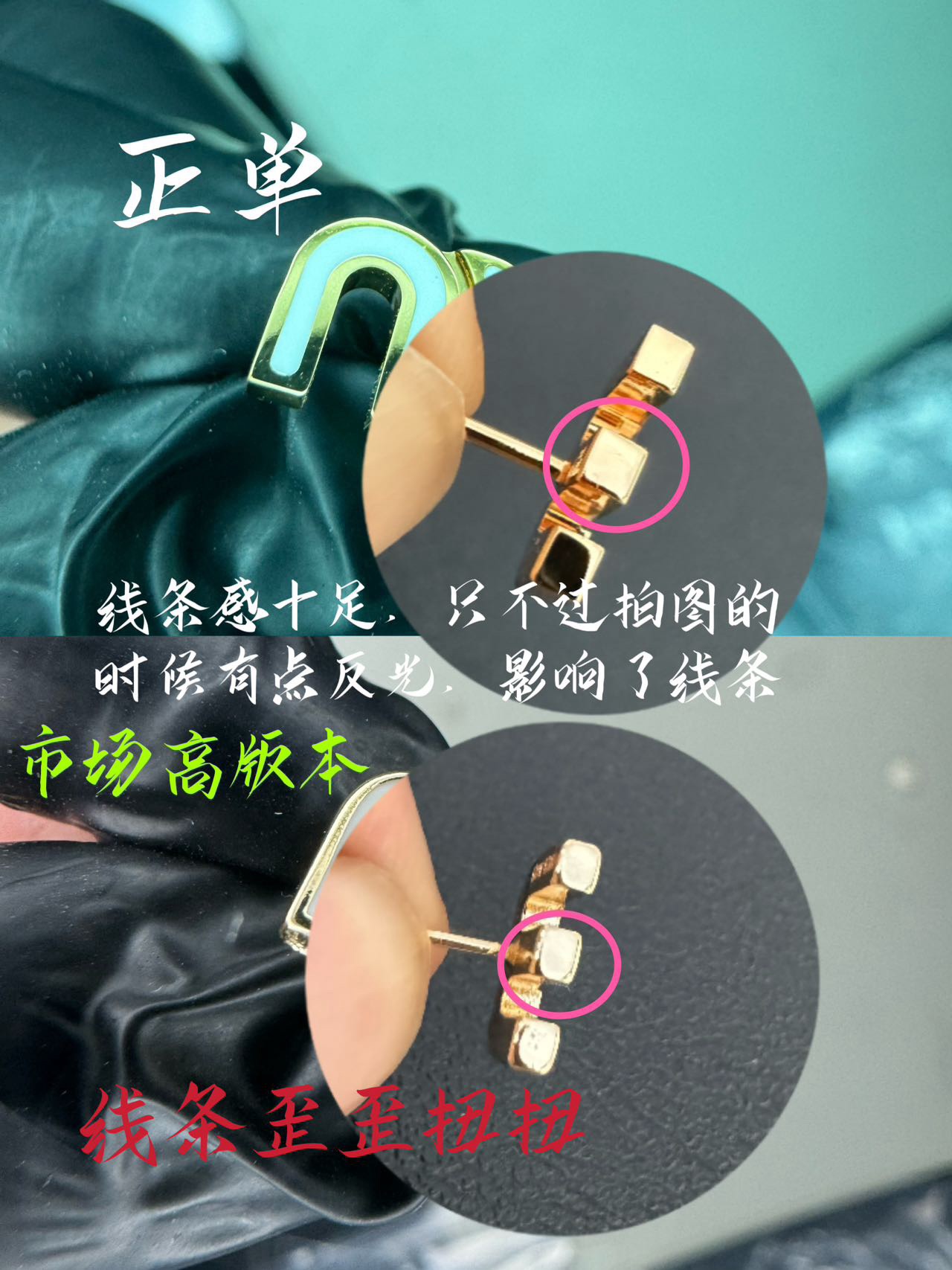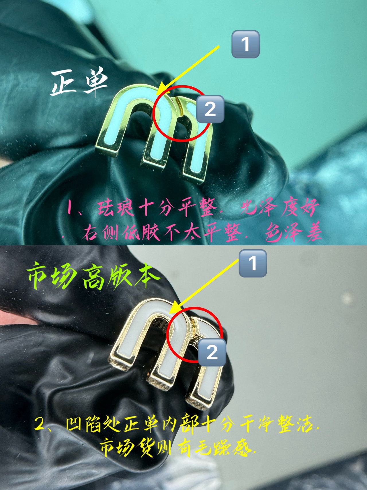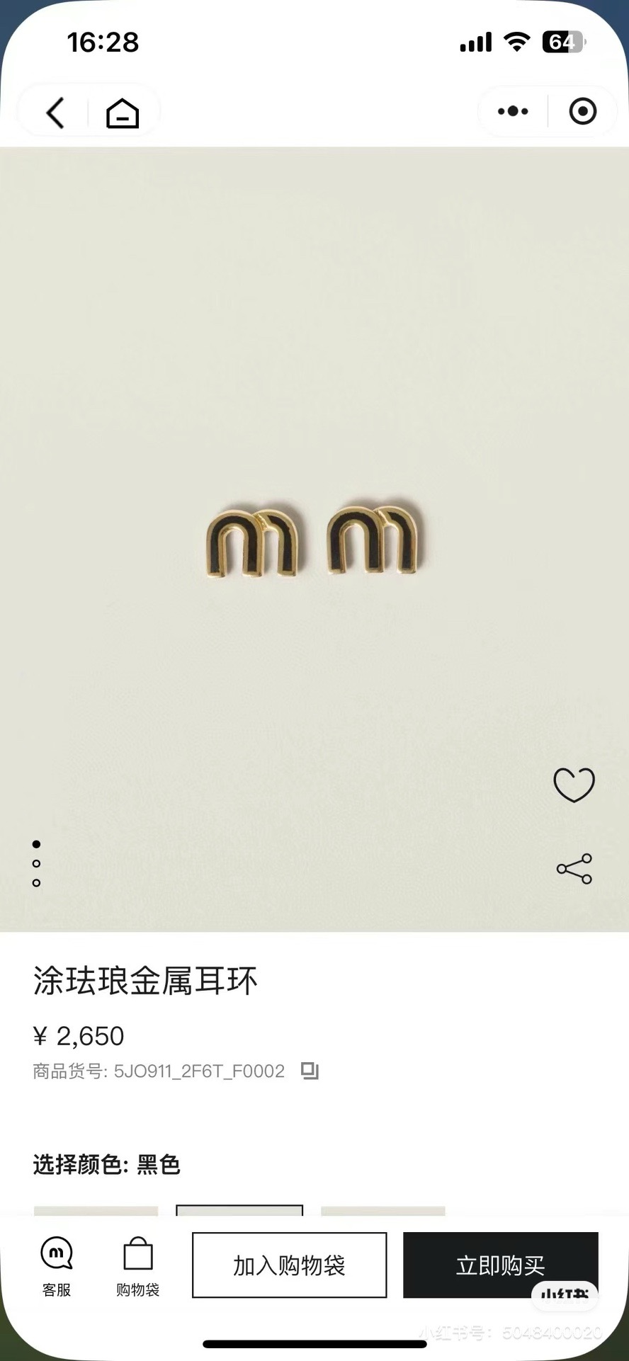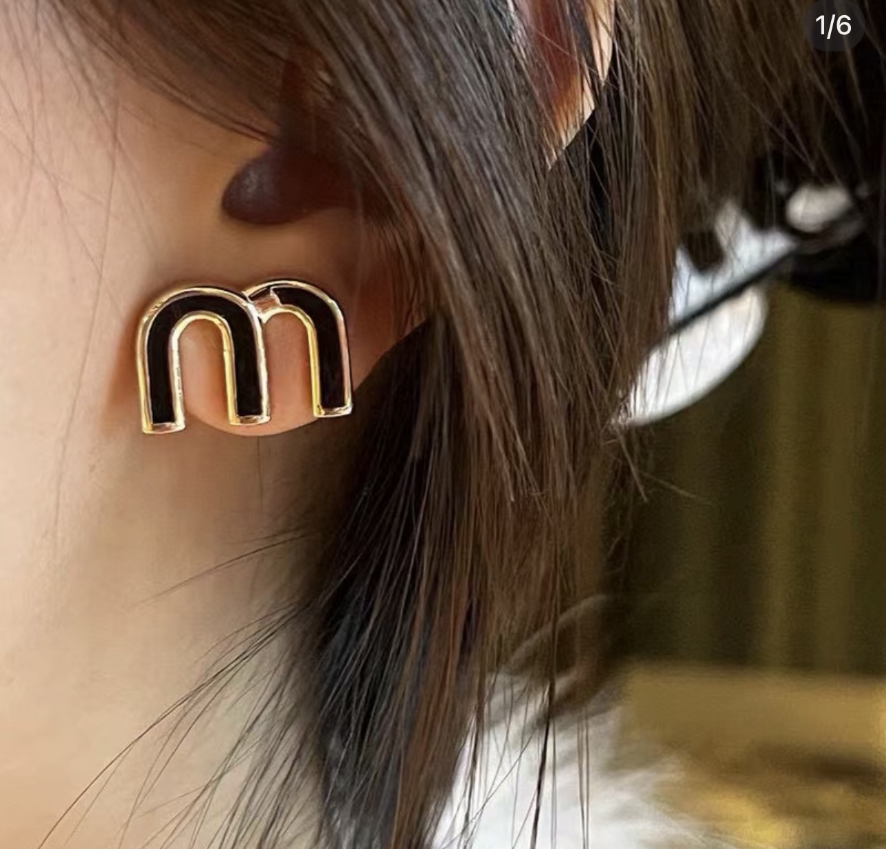 miumiu耳钉,别看小小的,特别显精致,简约的小m字母,珐琅搭配金色的撞色设计,实物很有质感,很高级,拿在手上有点分量,但是上耳又不会重 超级有质感!