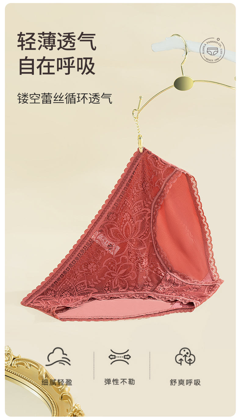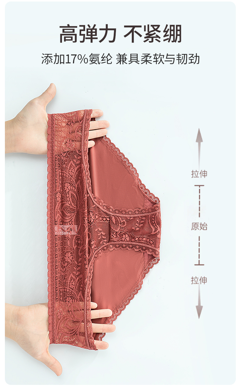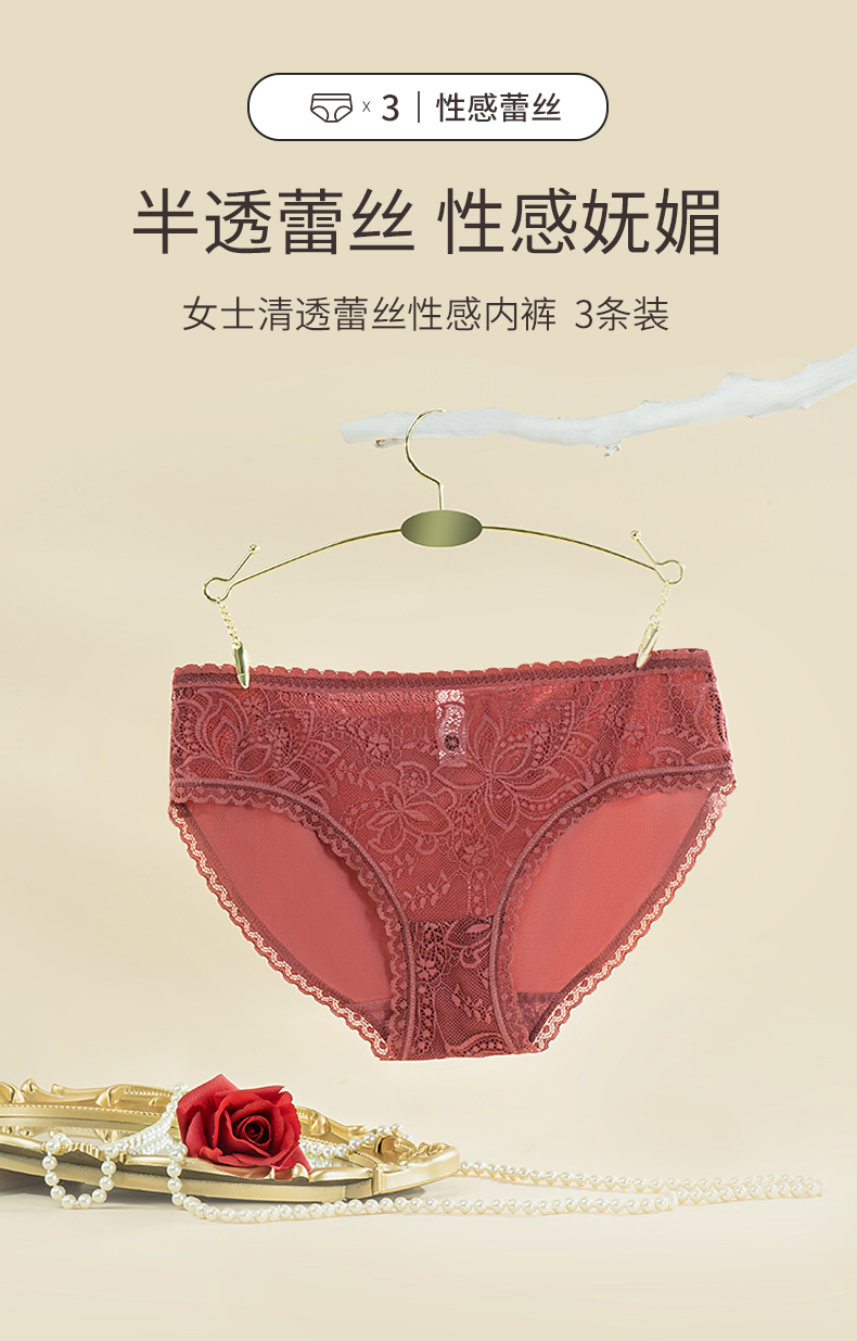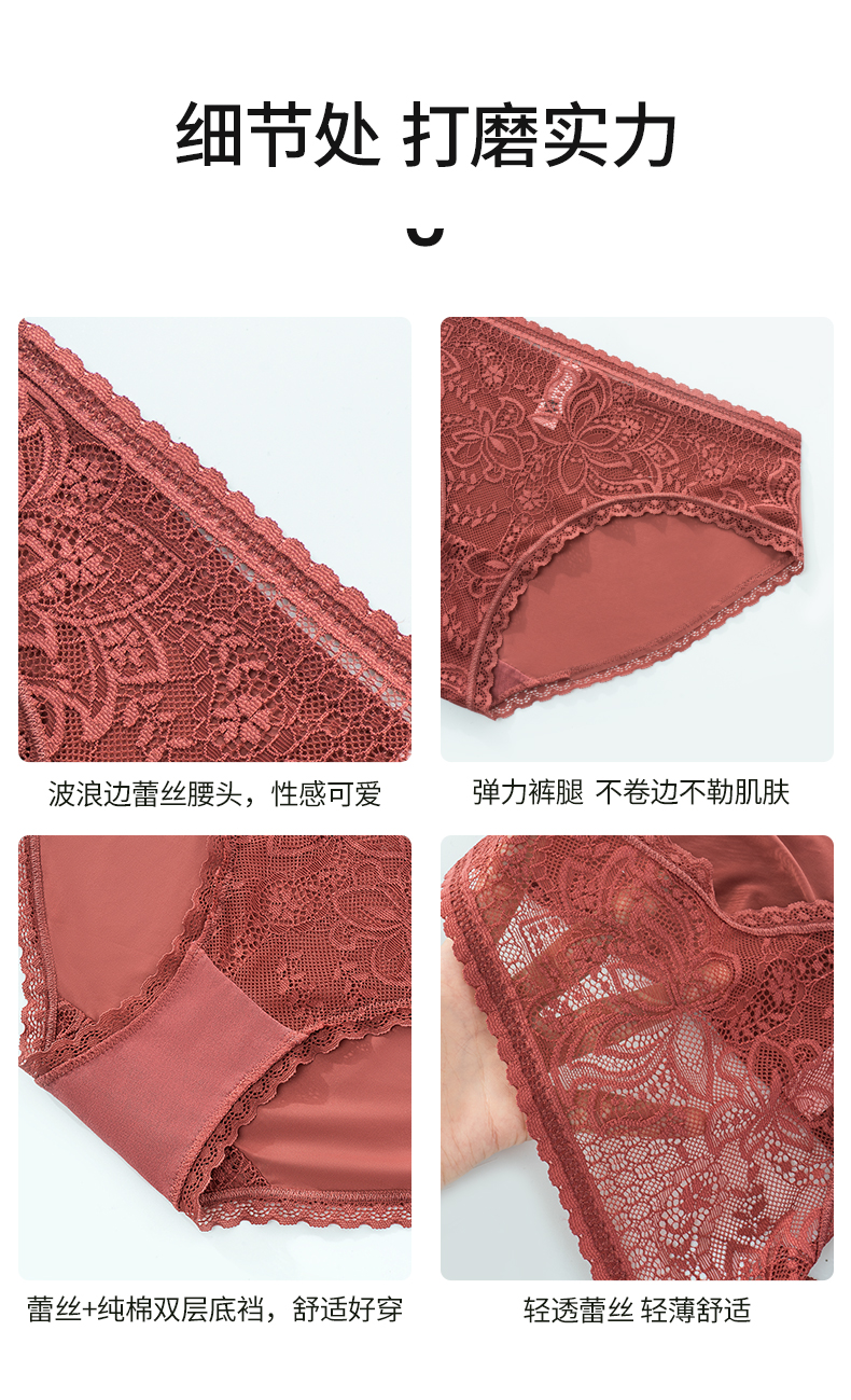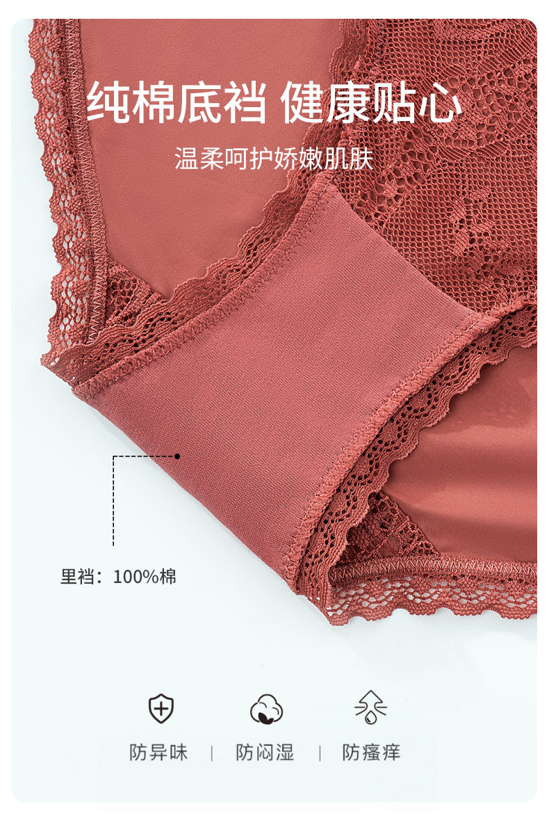 雅黛丽内裤女纯棉底裆亲肤透气短裤性感蕾丝薄款高弹三角裤3条装
