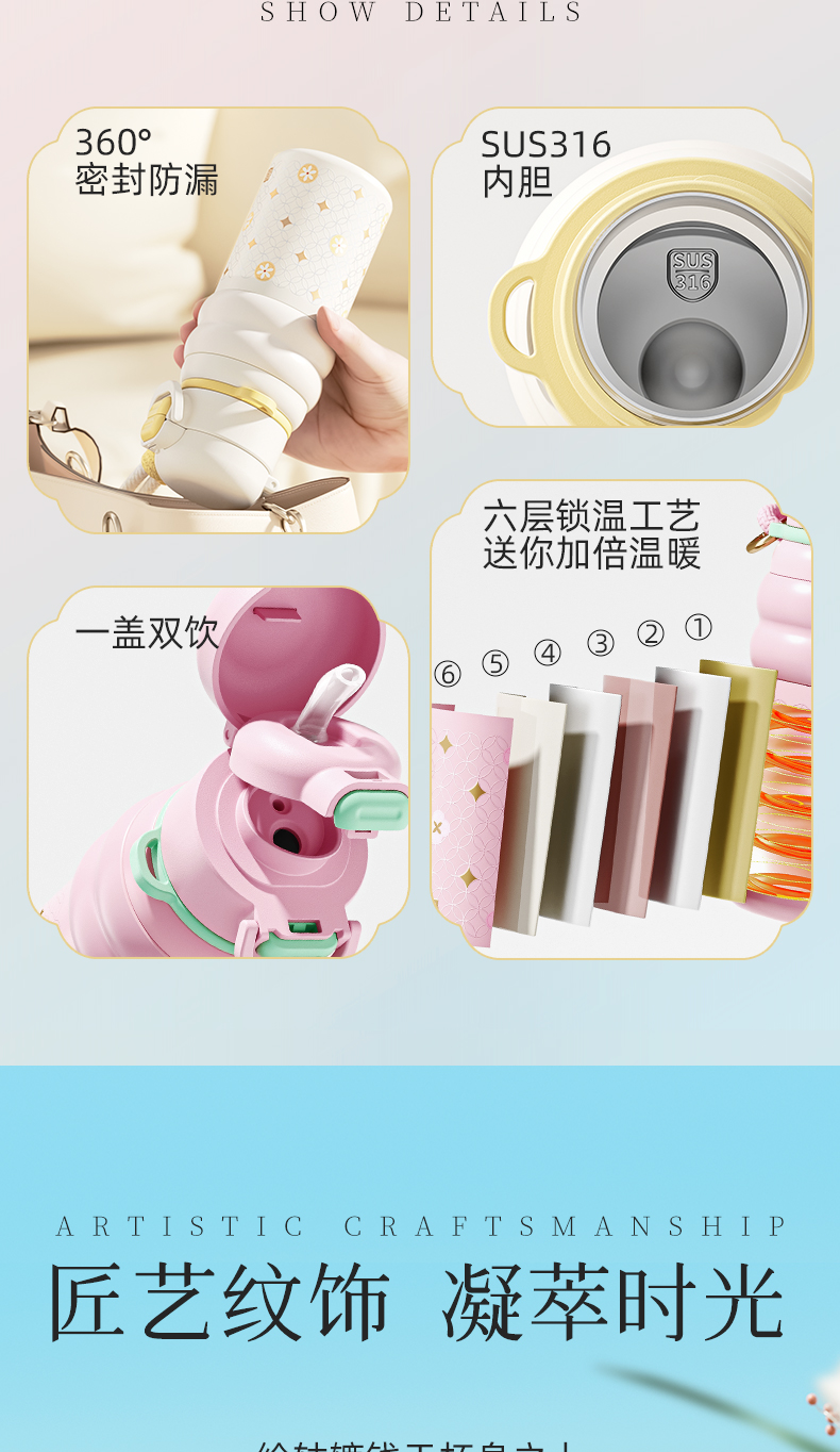 宫里的世界|NONOO紫禁芳华双饮保温杯 3色可选