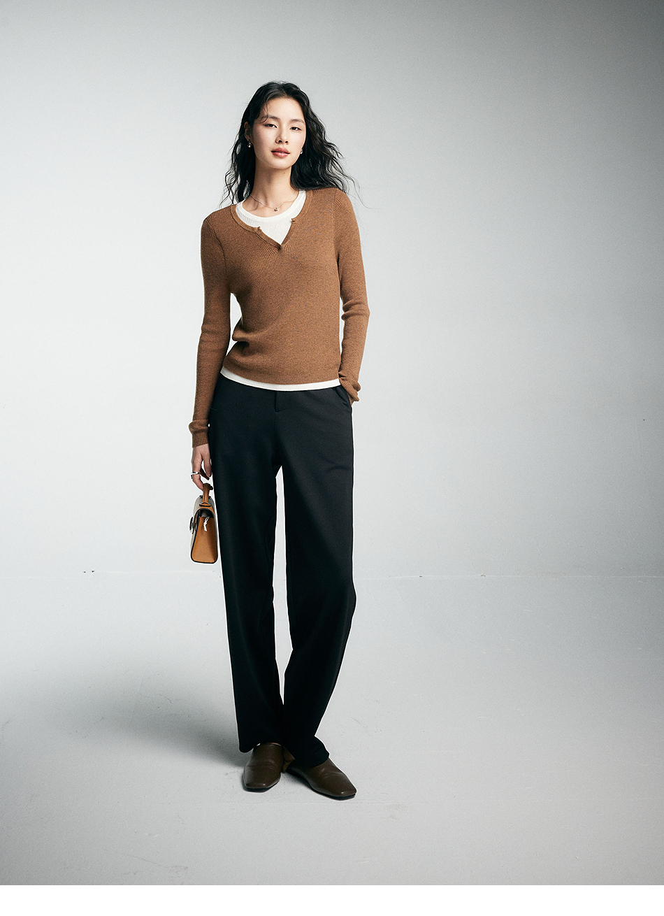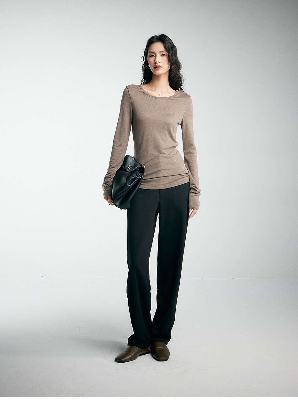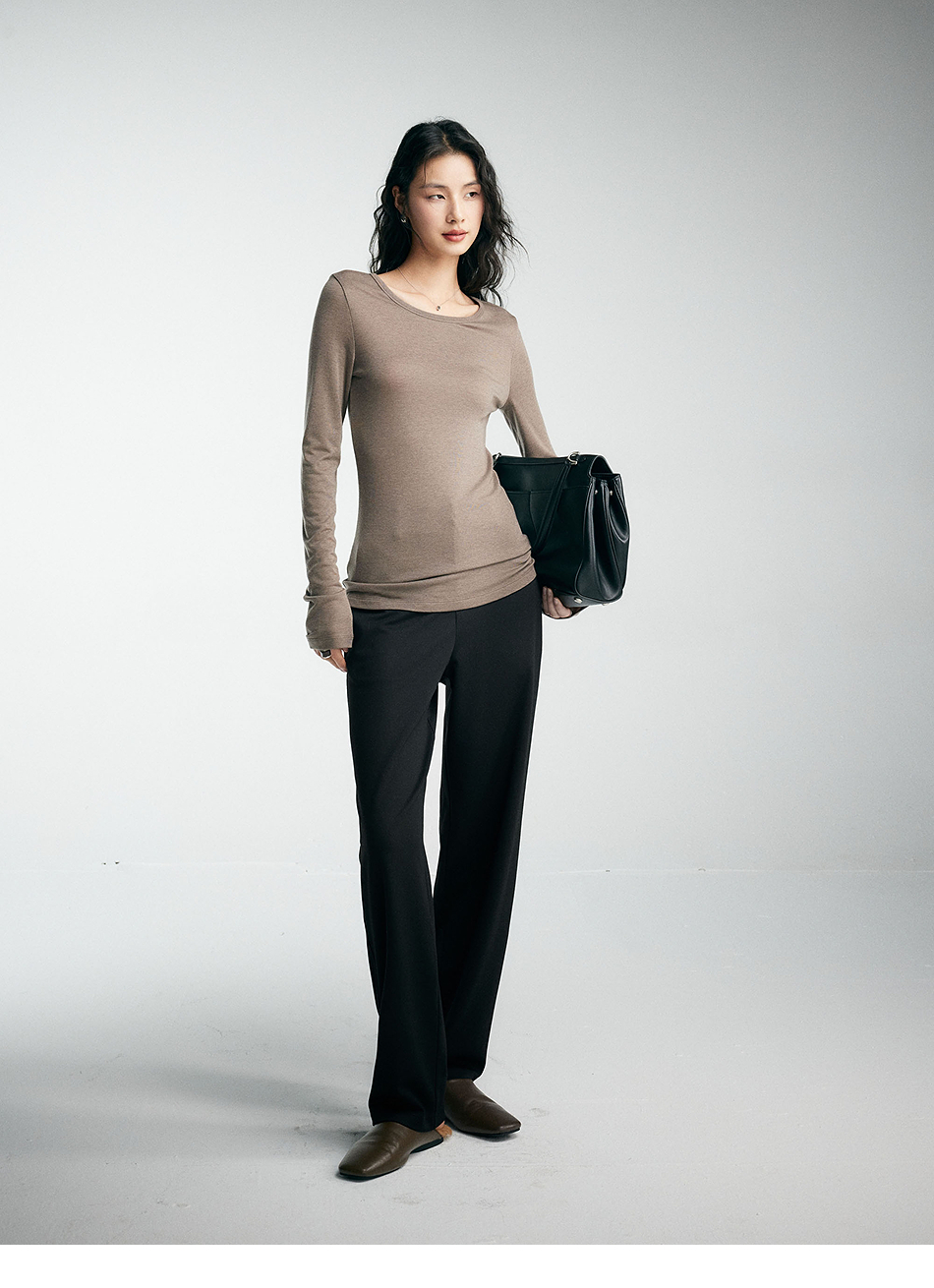 棉仓356801001 -法国罗纹微宽松长袖T恤