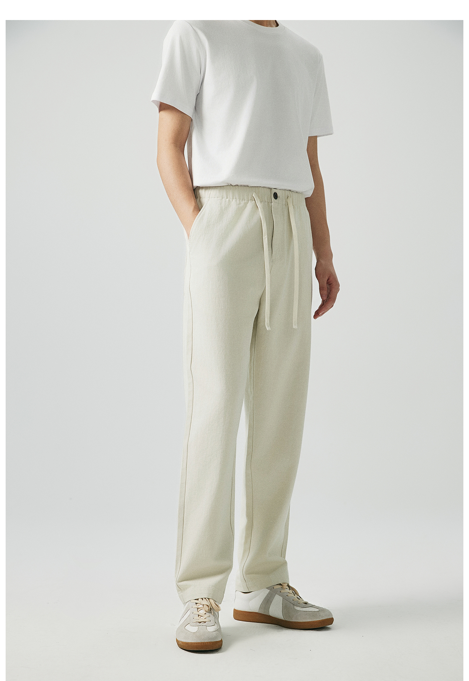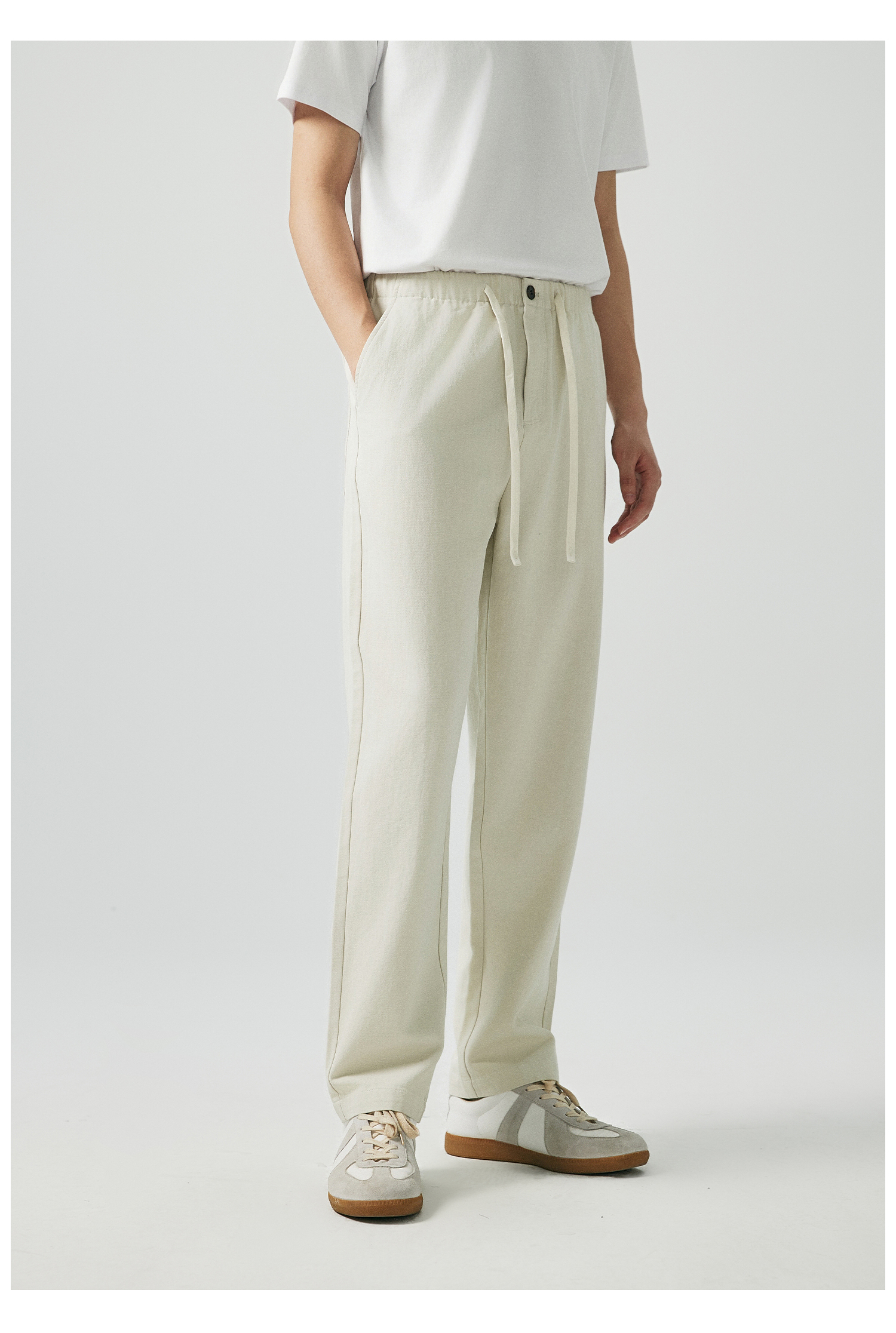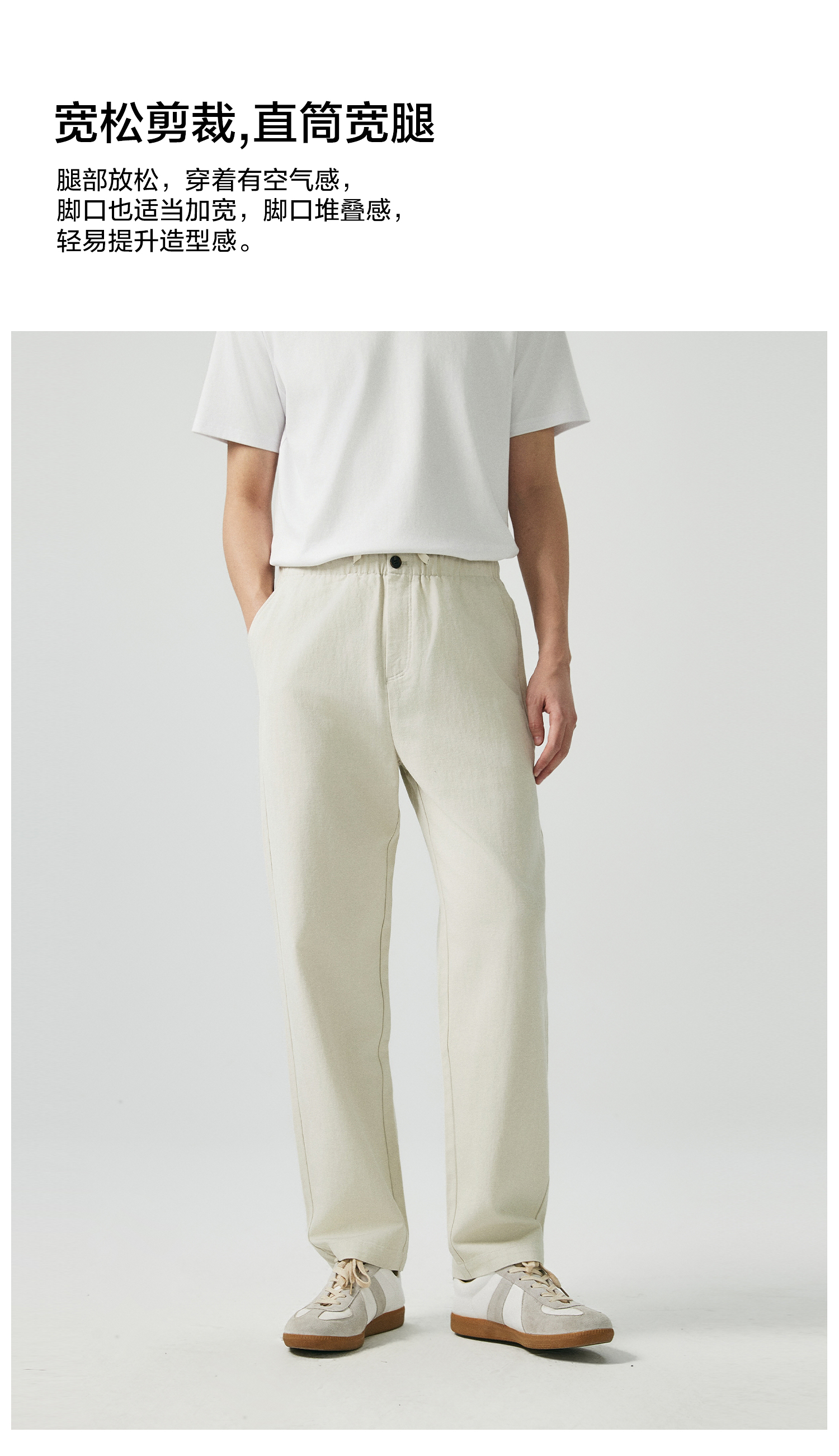 棉仓362818024-重磅亚麻松紧腰宽松直筒裤