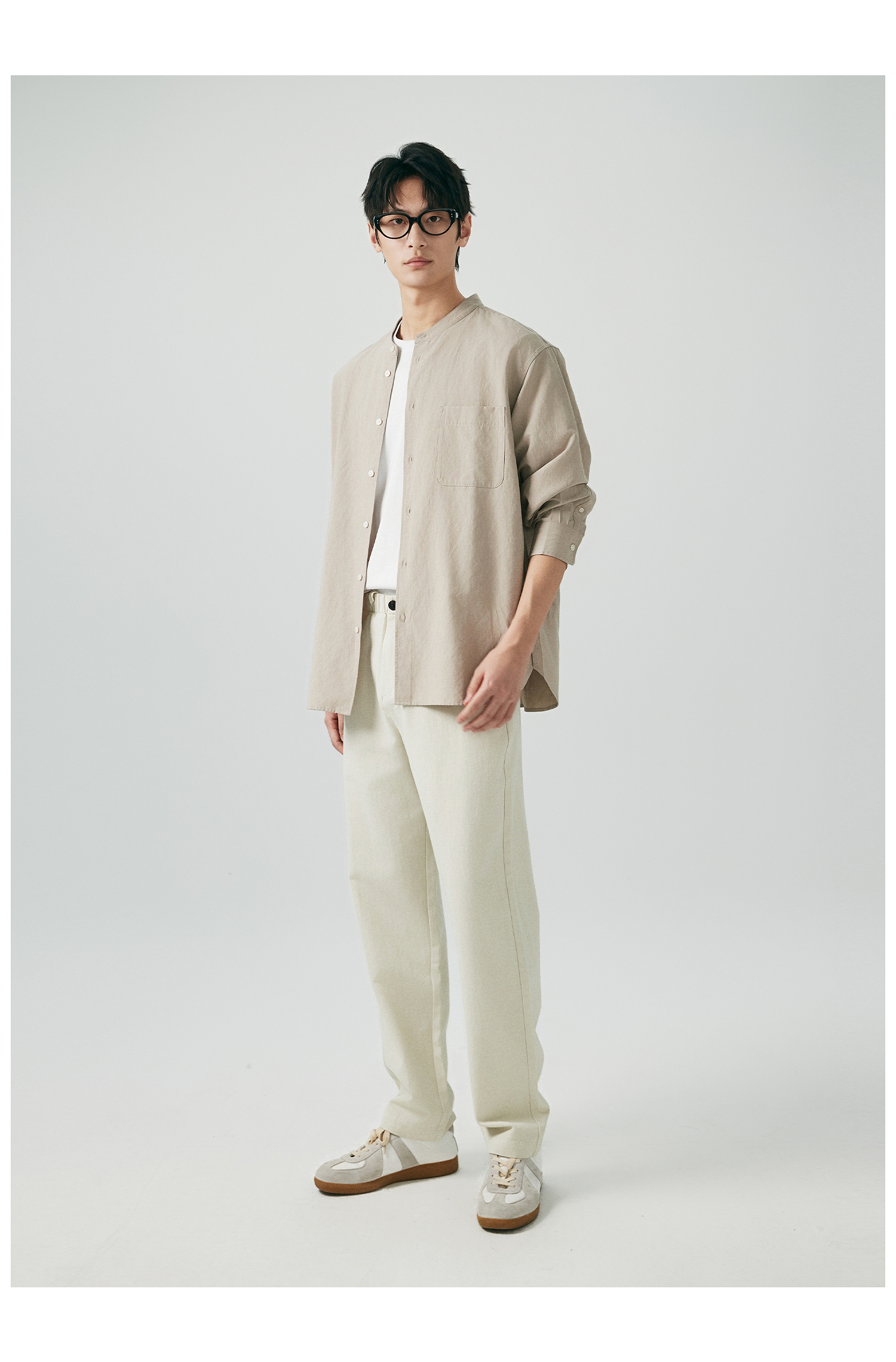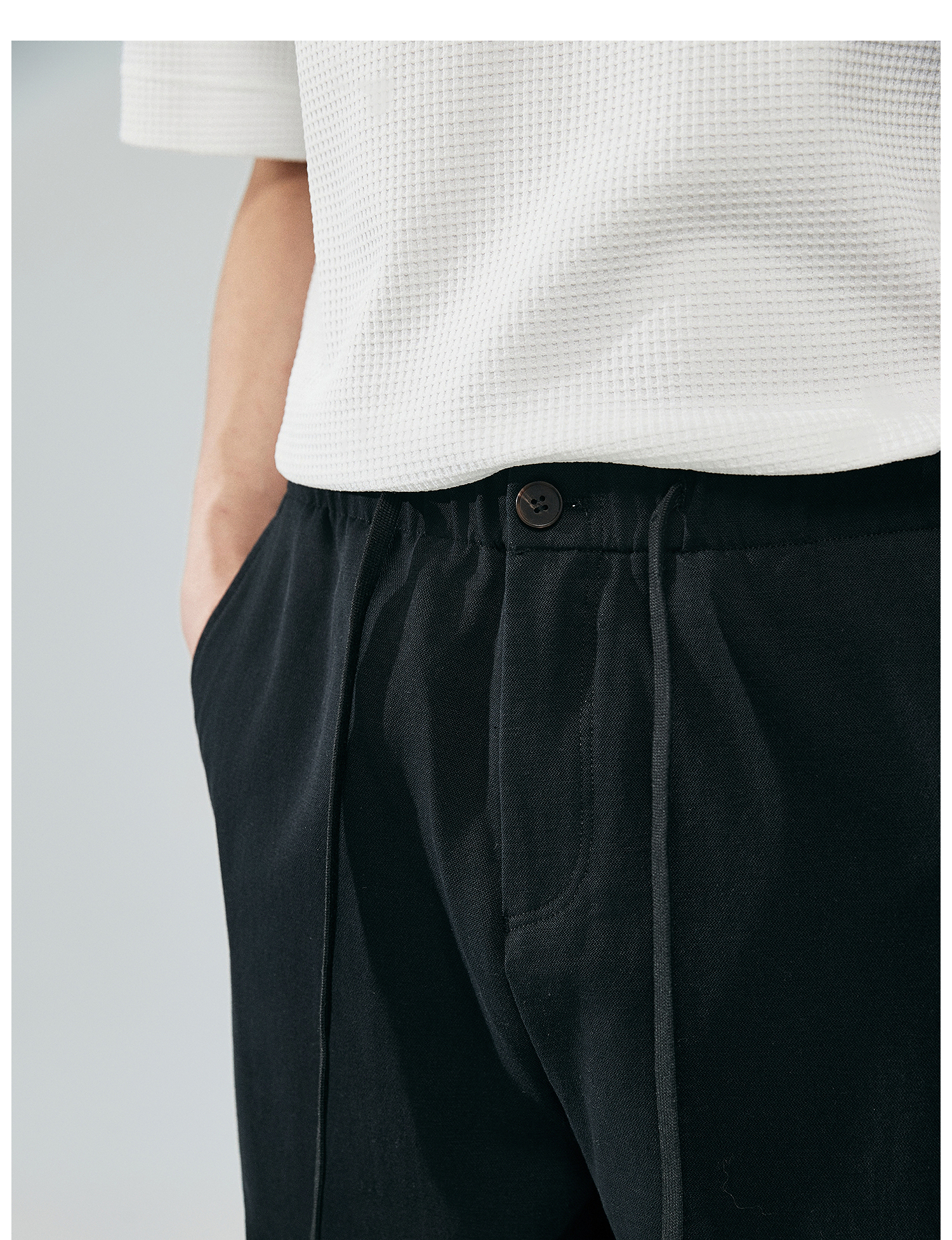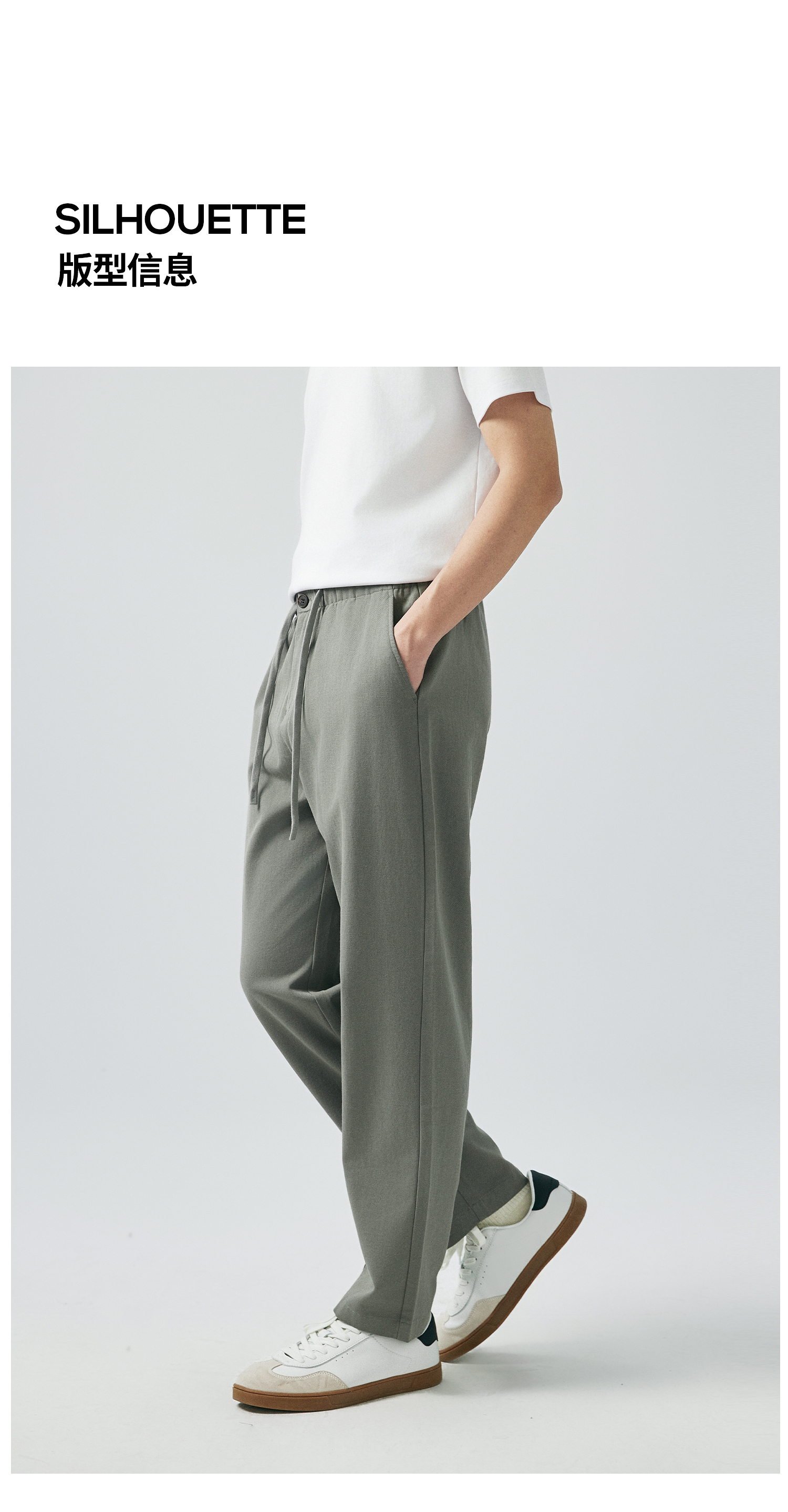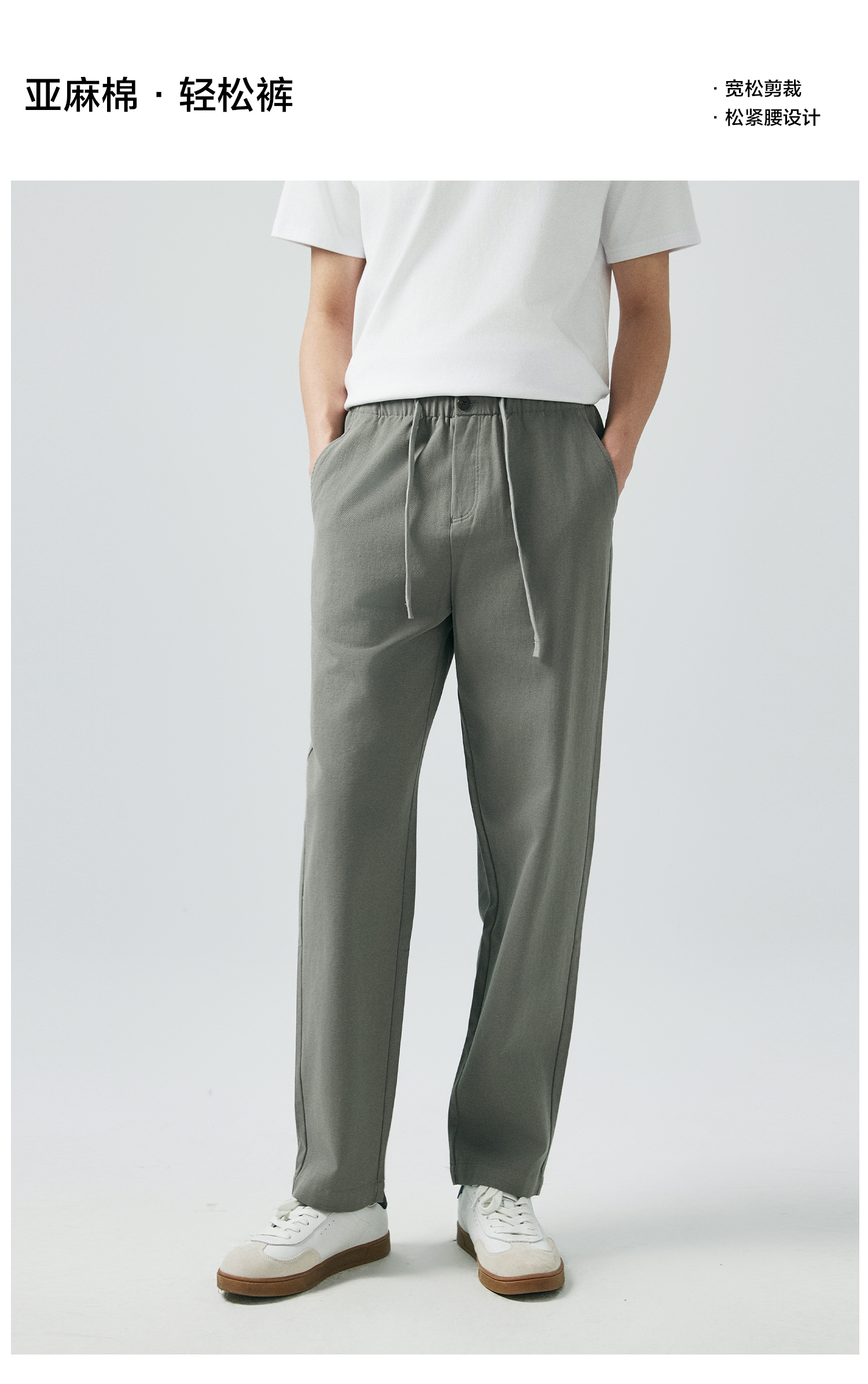 棉仓362818024-重磅亚麻松紧腰宽松直筒裤