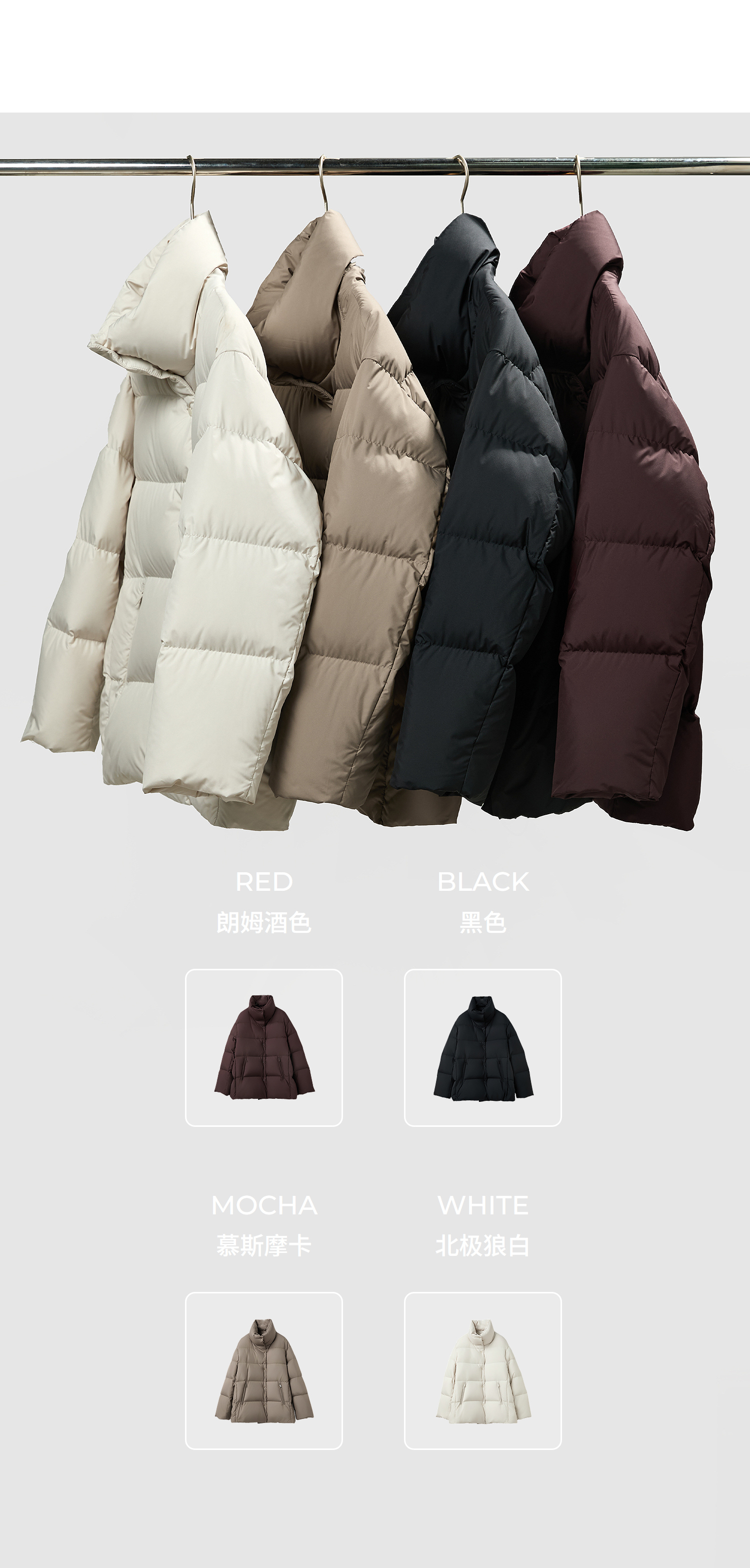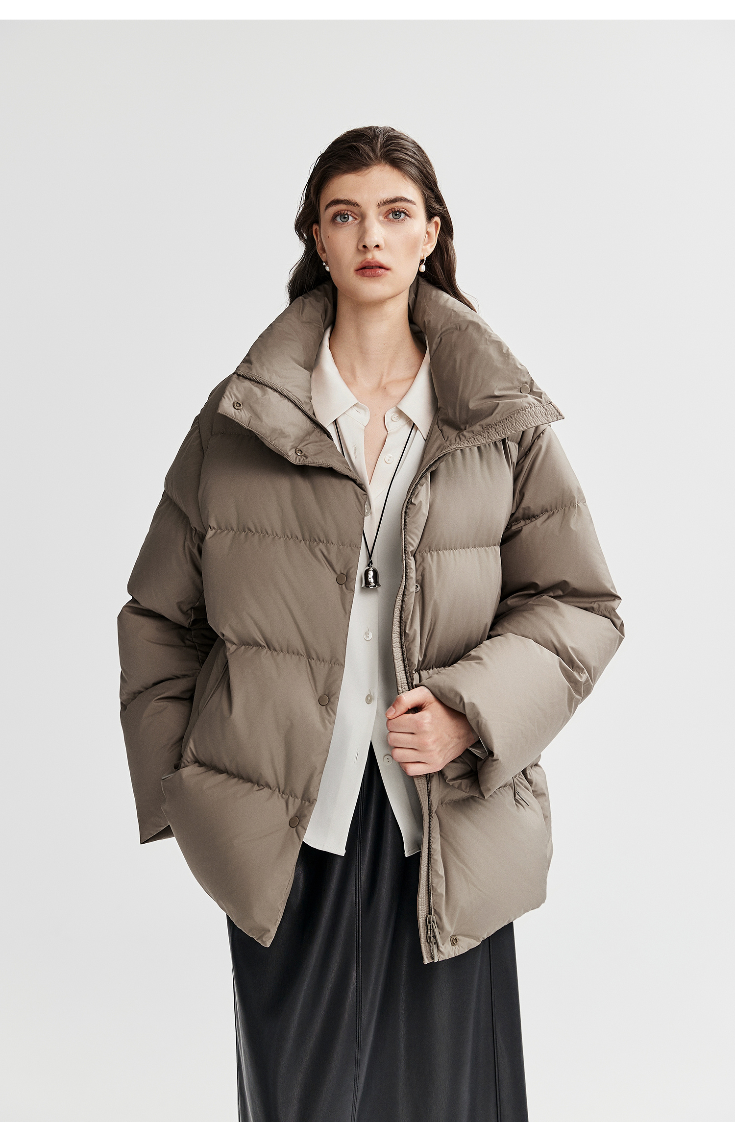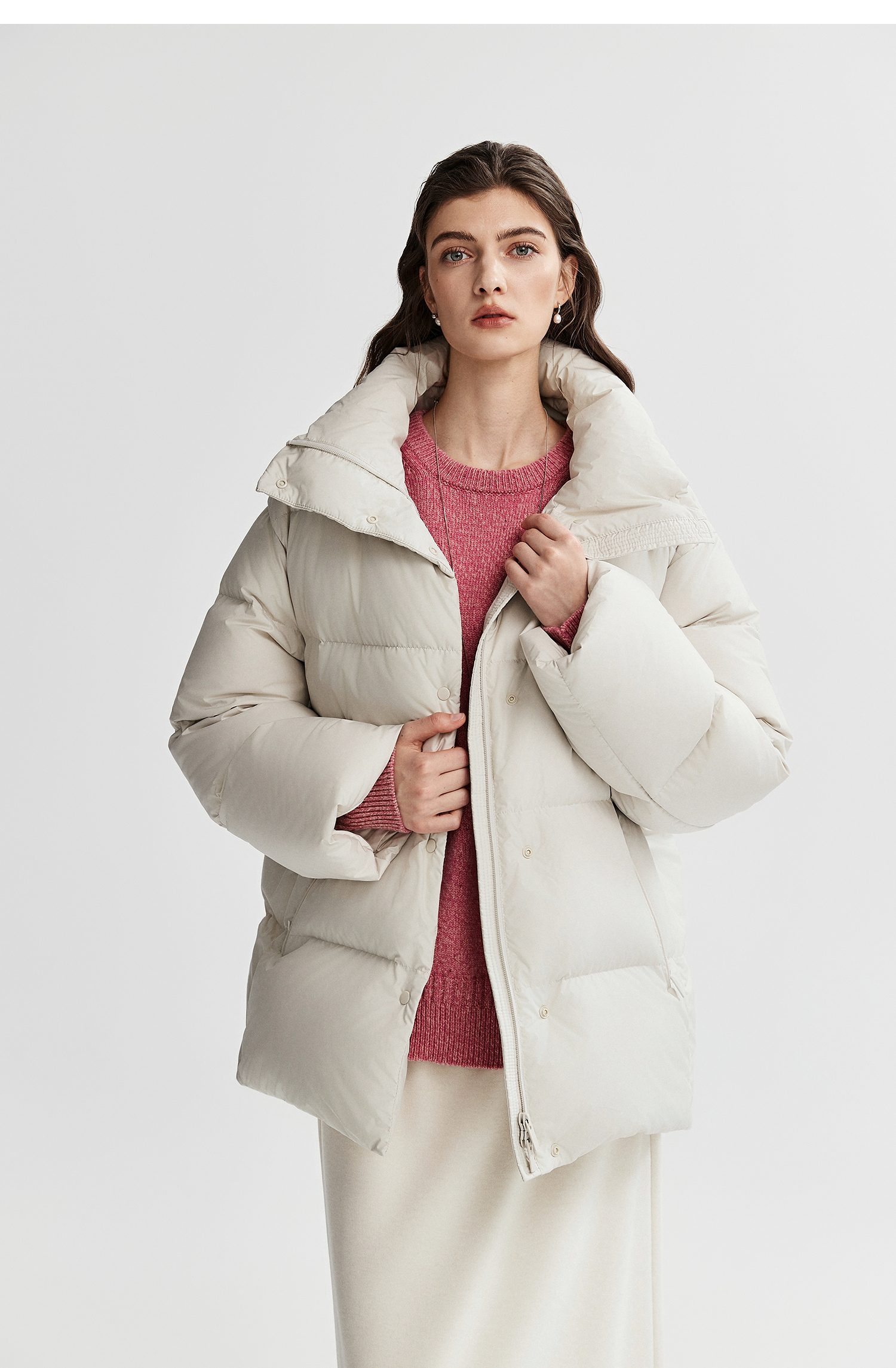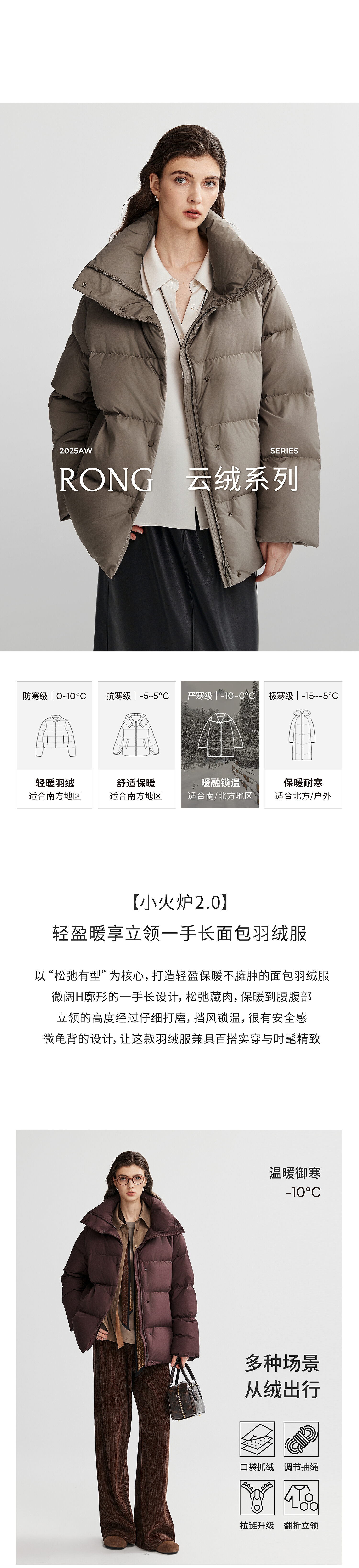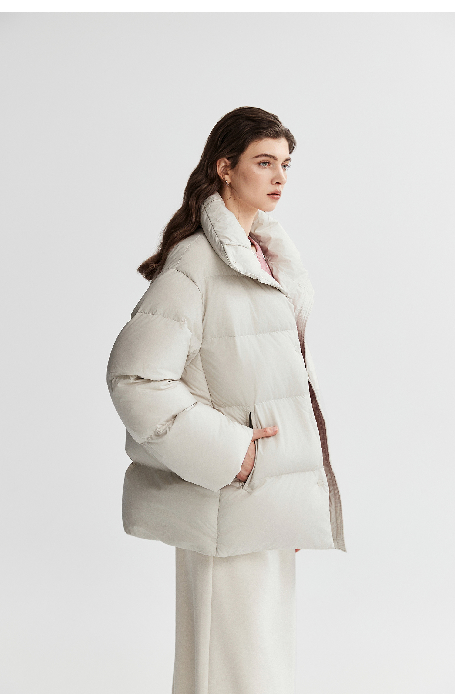 棉仓366615012-可翻折立领中长款羽绒服