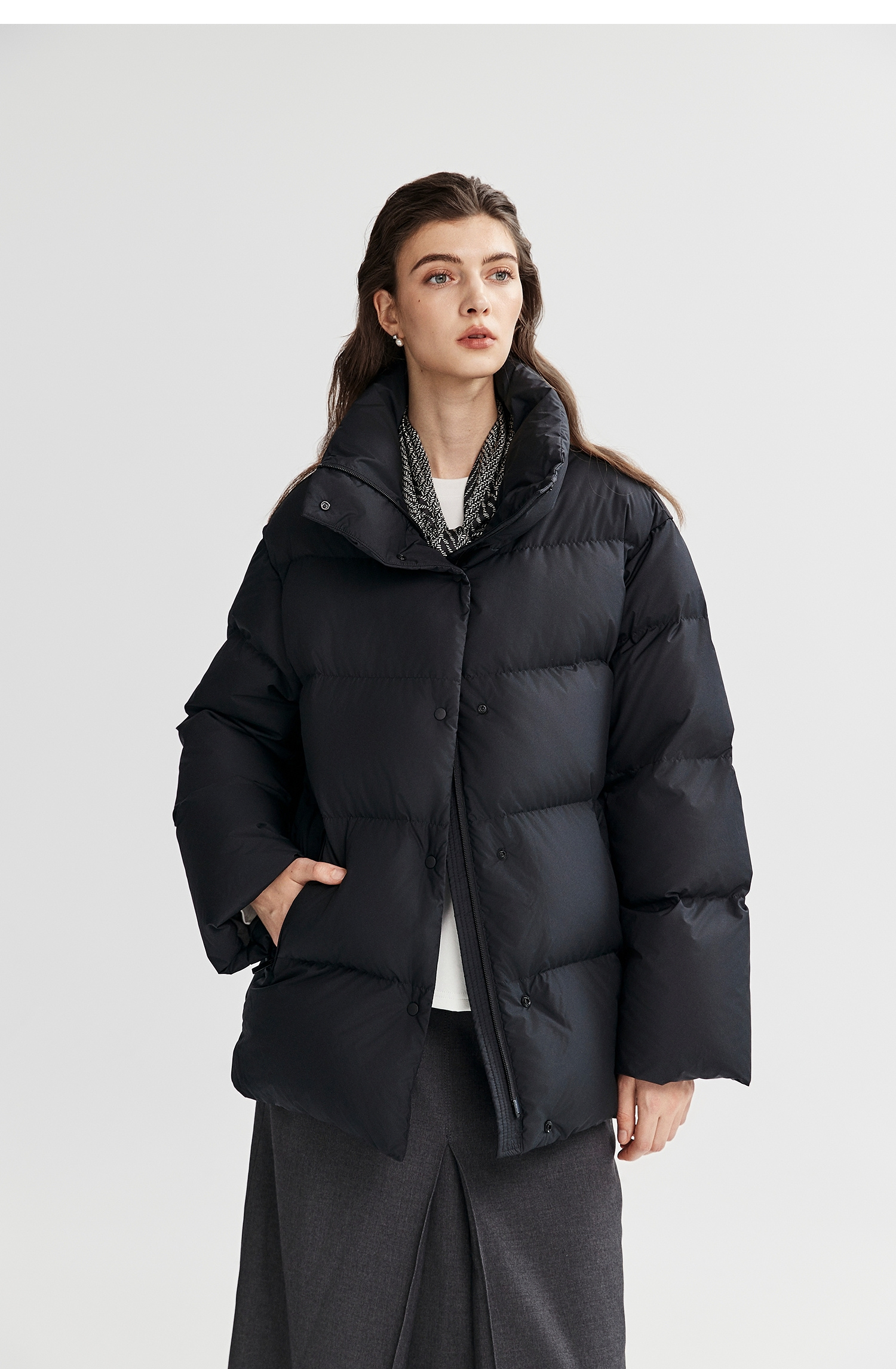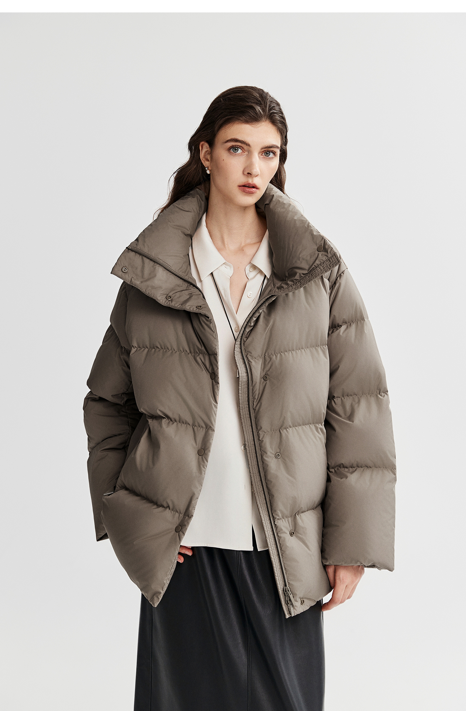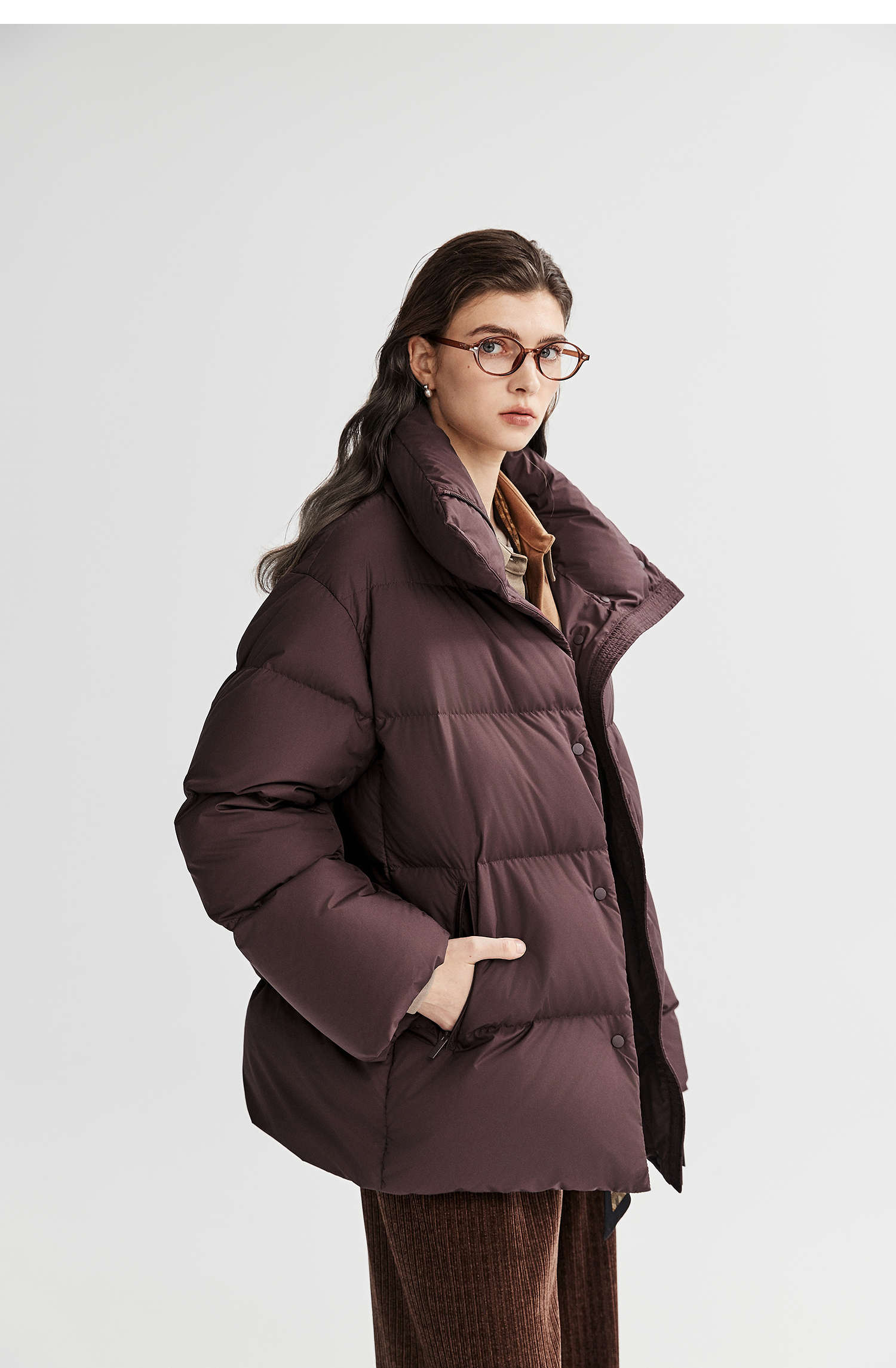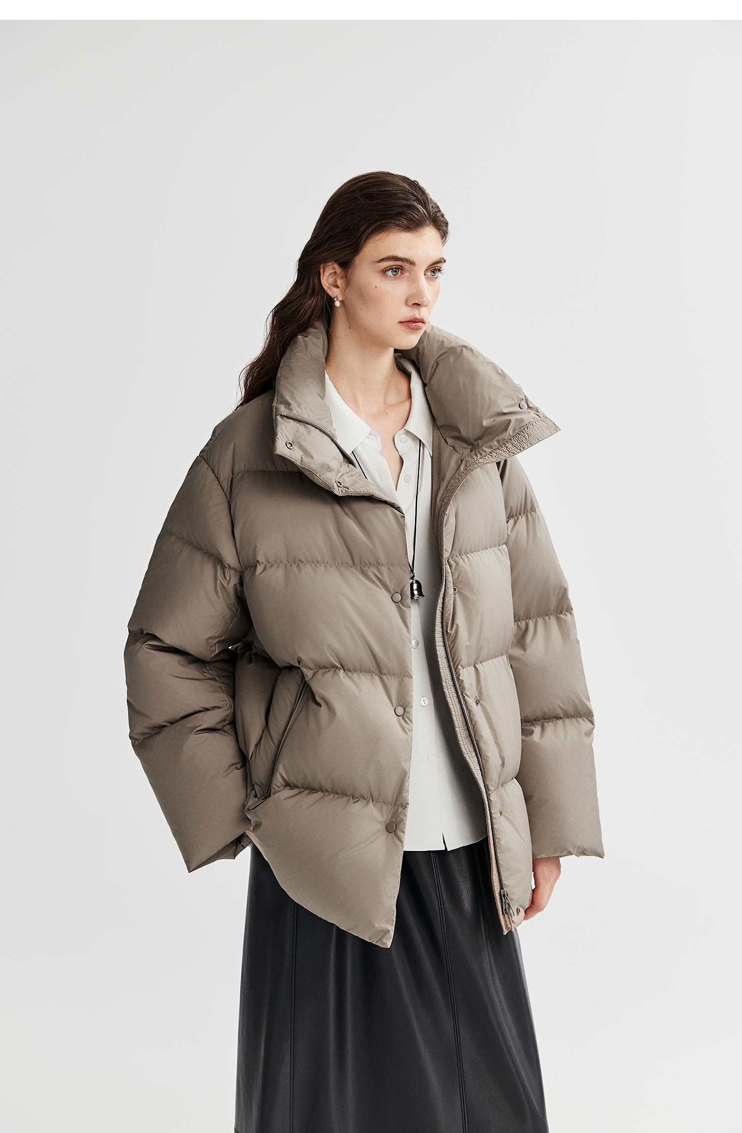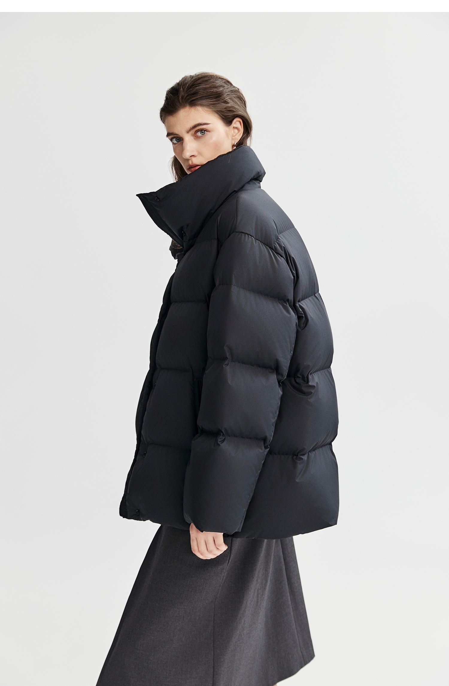 棉仓366615012-可翻折立领中长款羽绒服