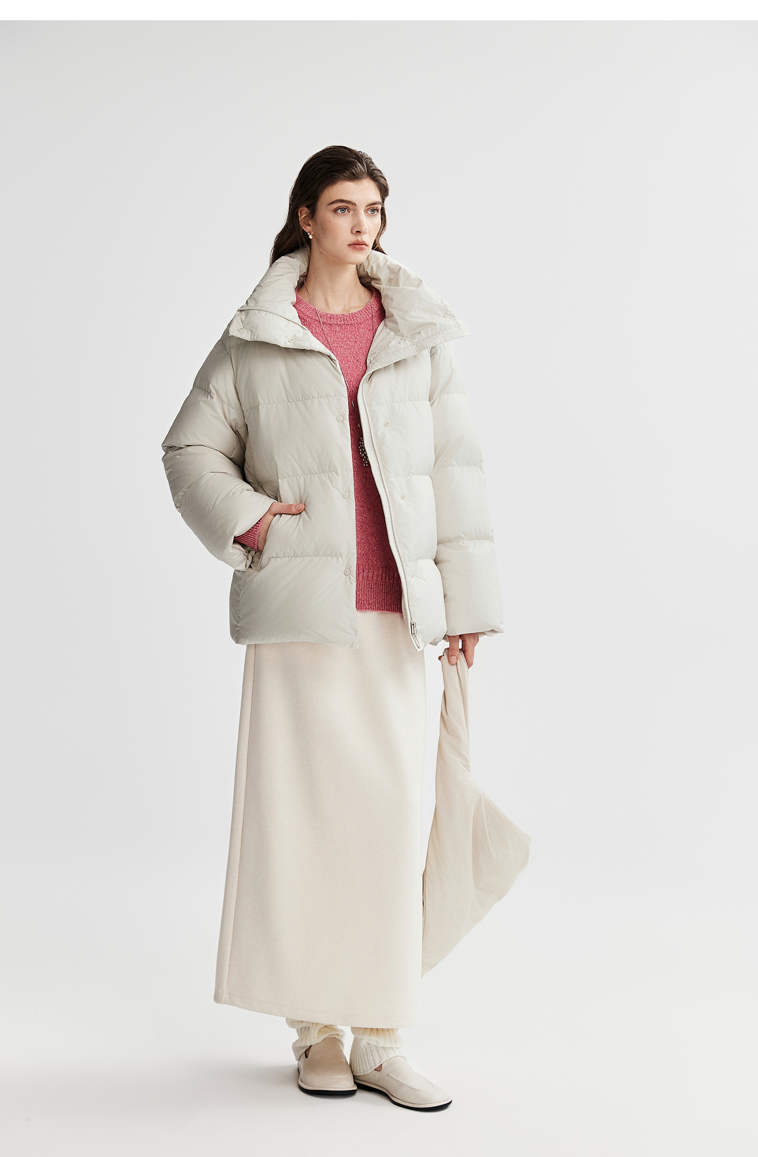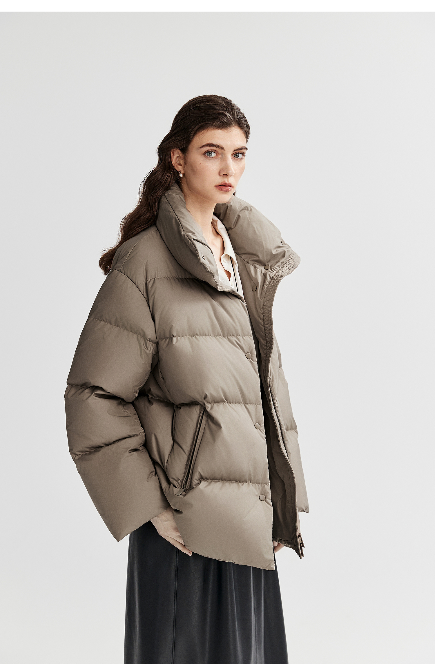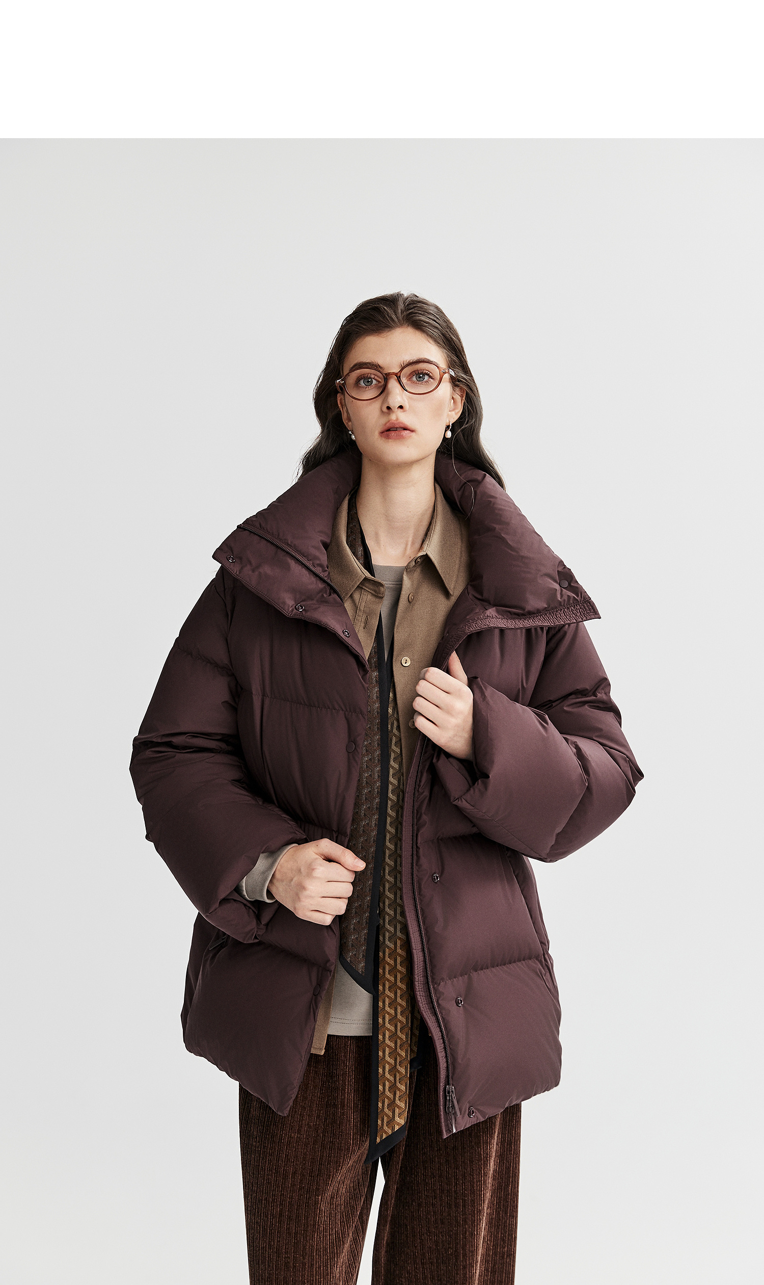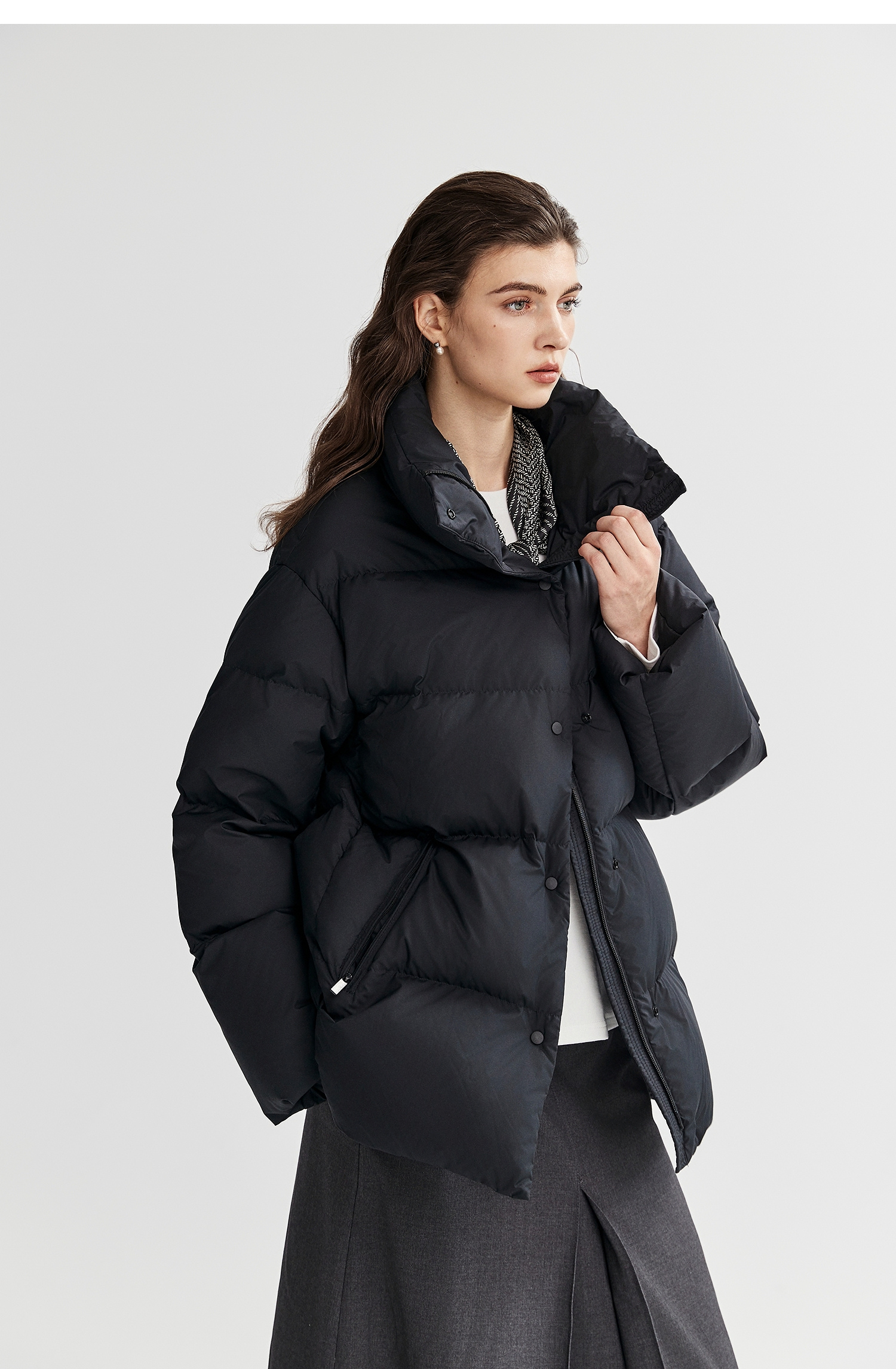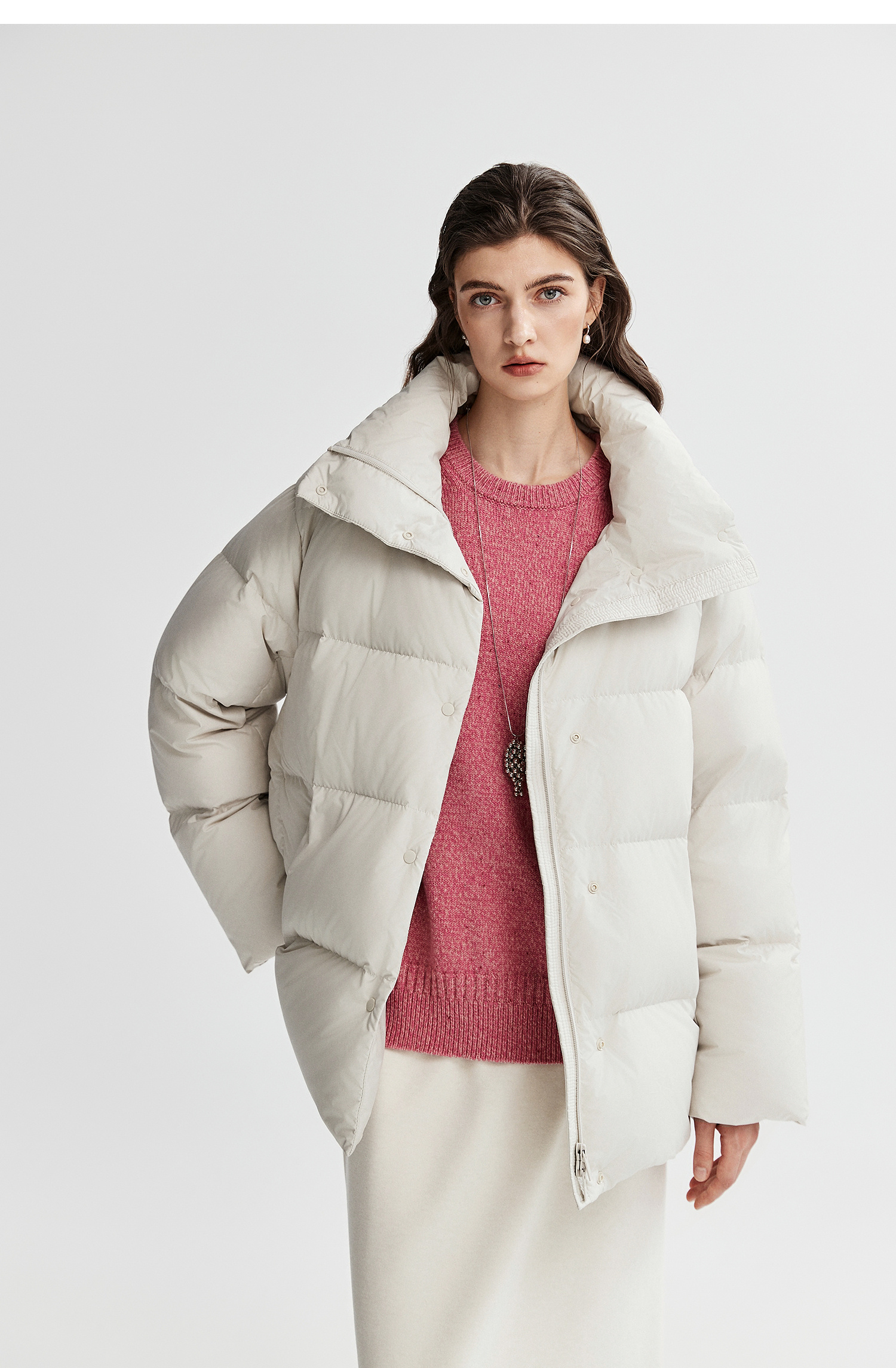 棉仓366615012-可翻折立领中长款羽绒服