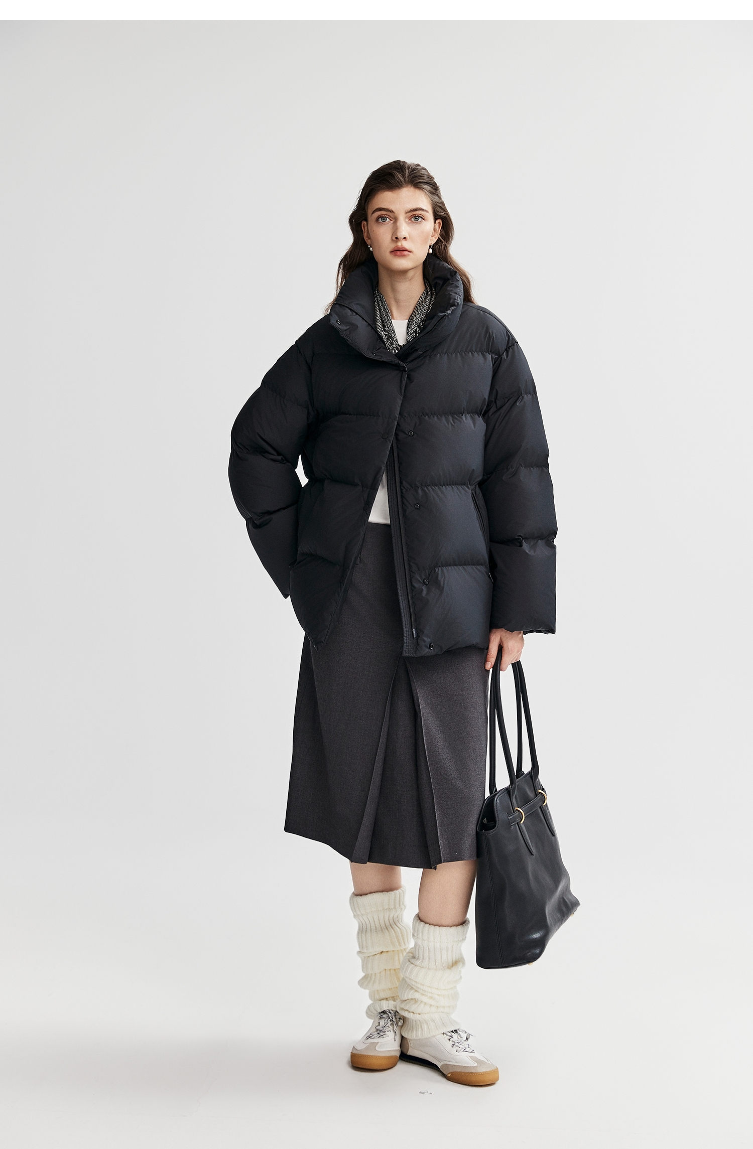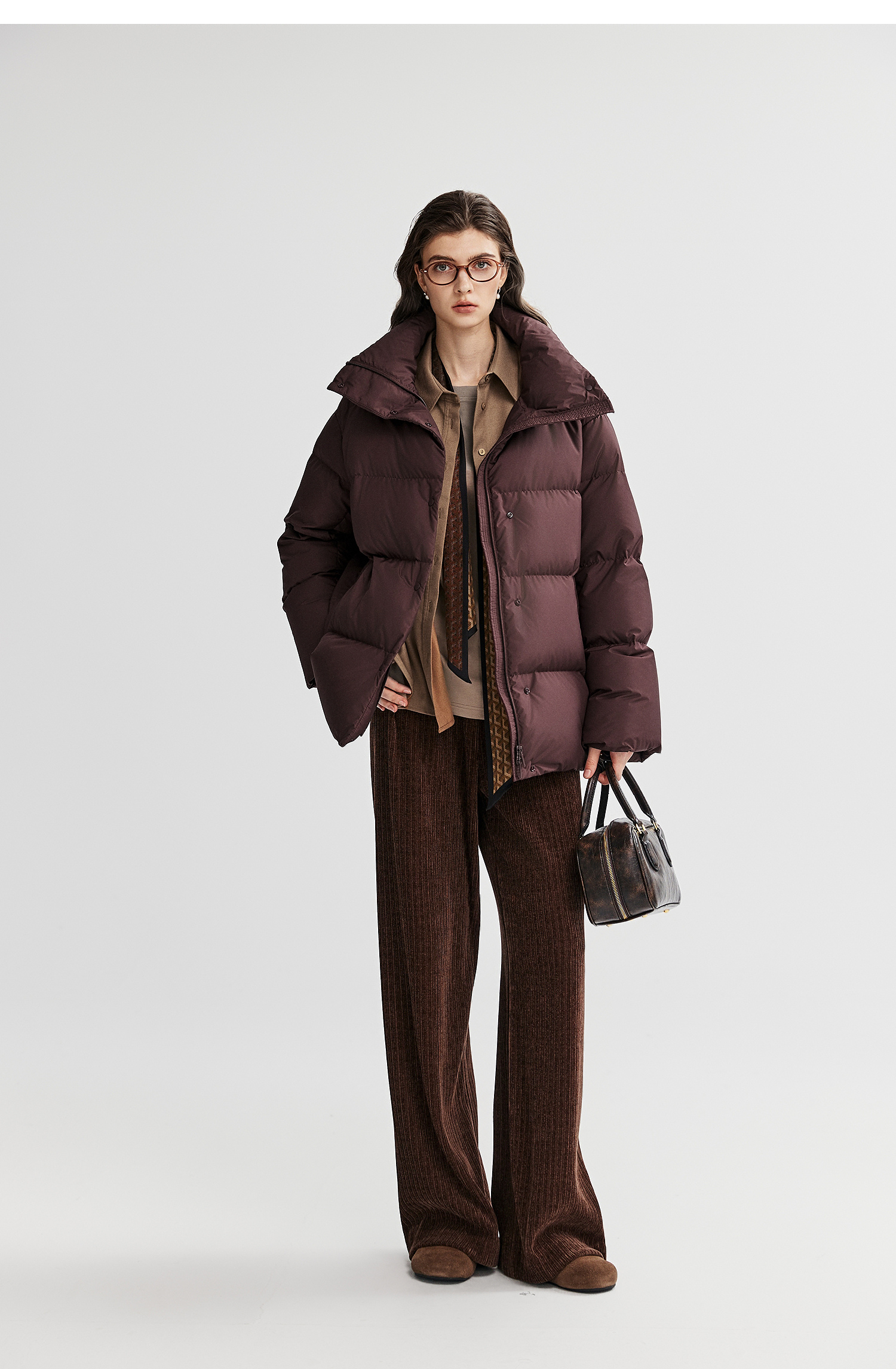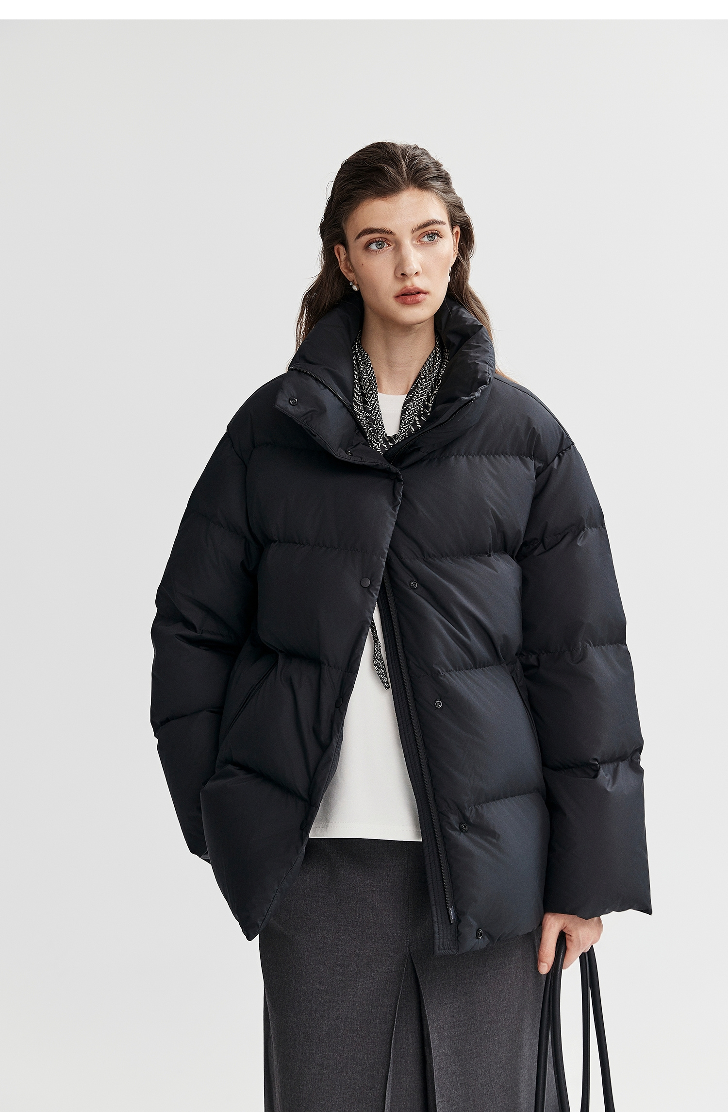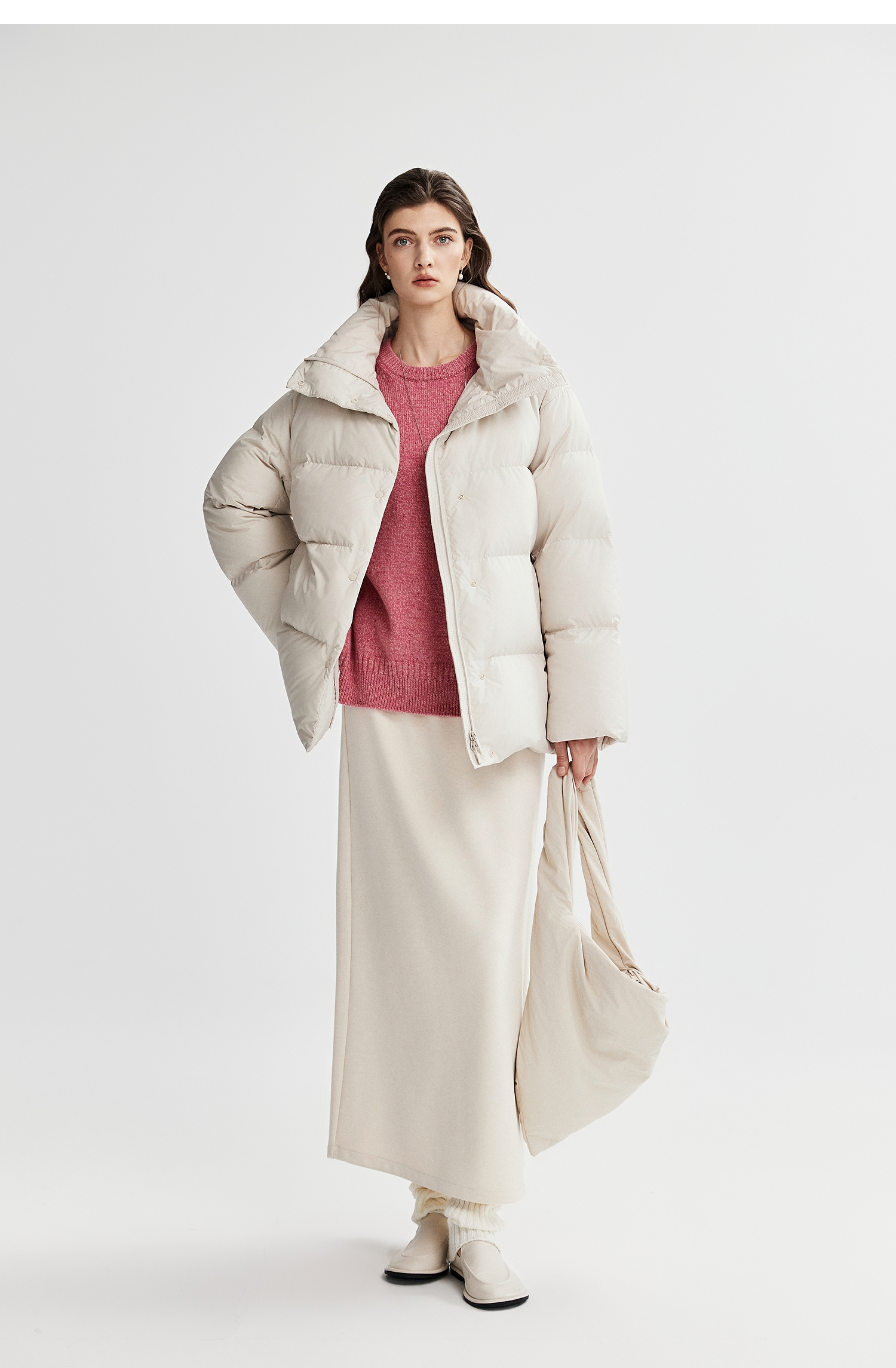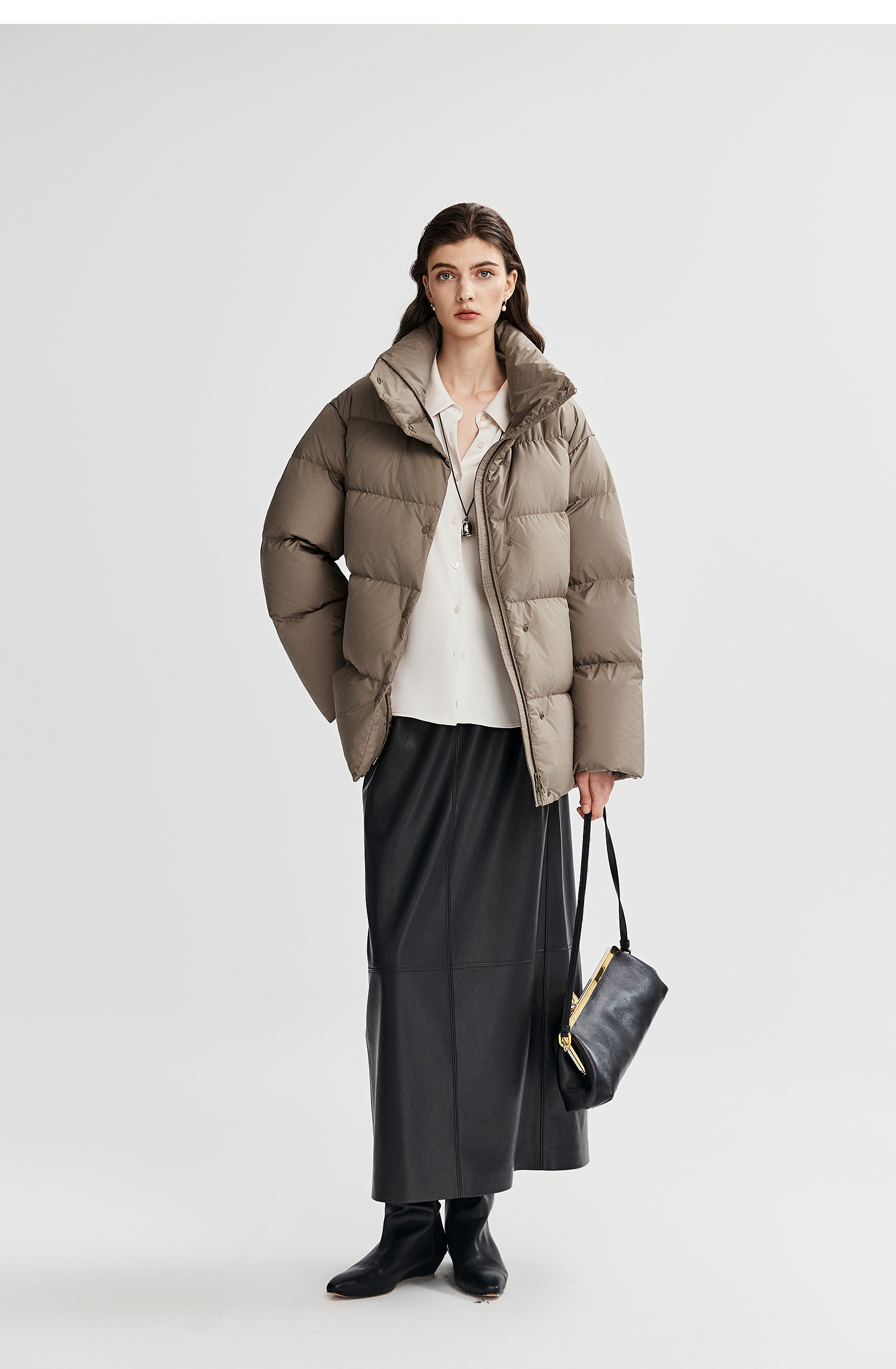 棉仓366615012-可翻折立领中长款羽绒服