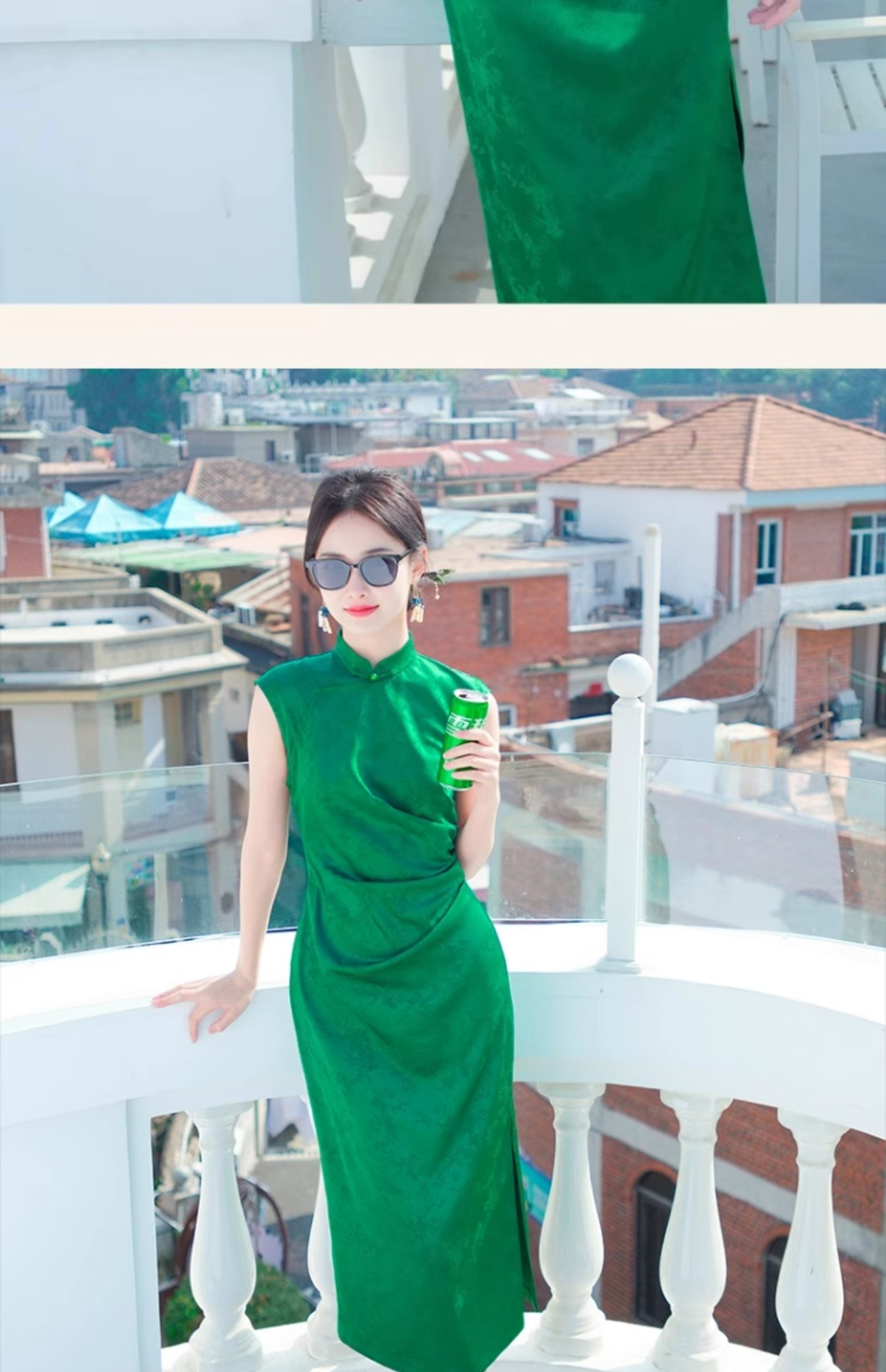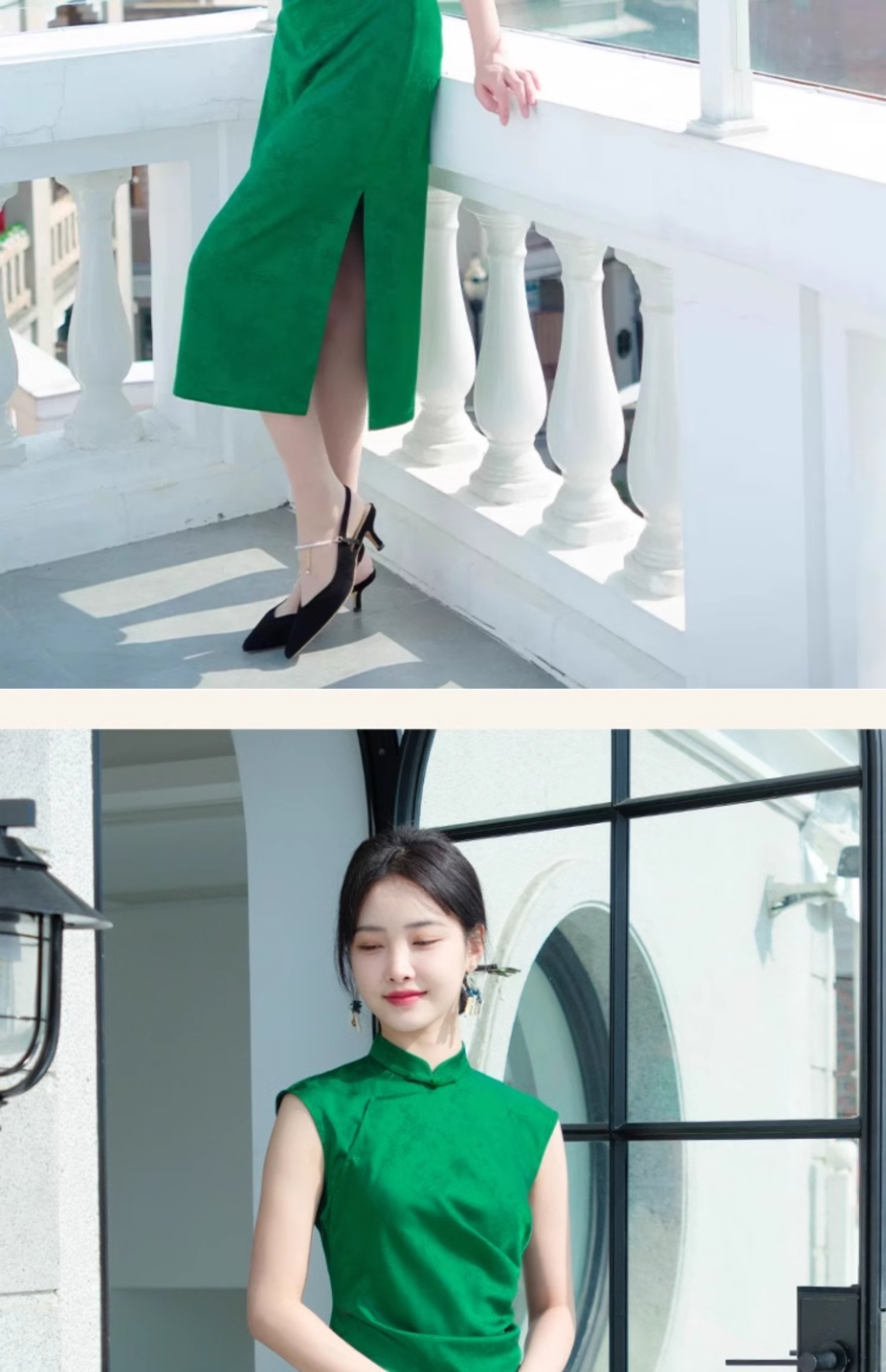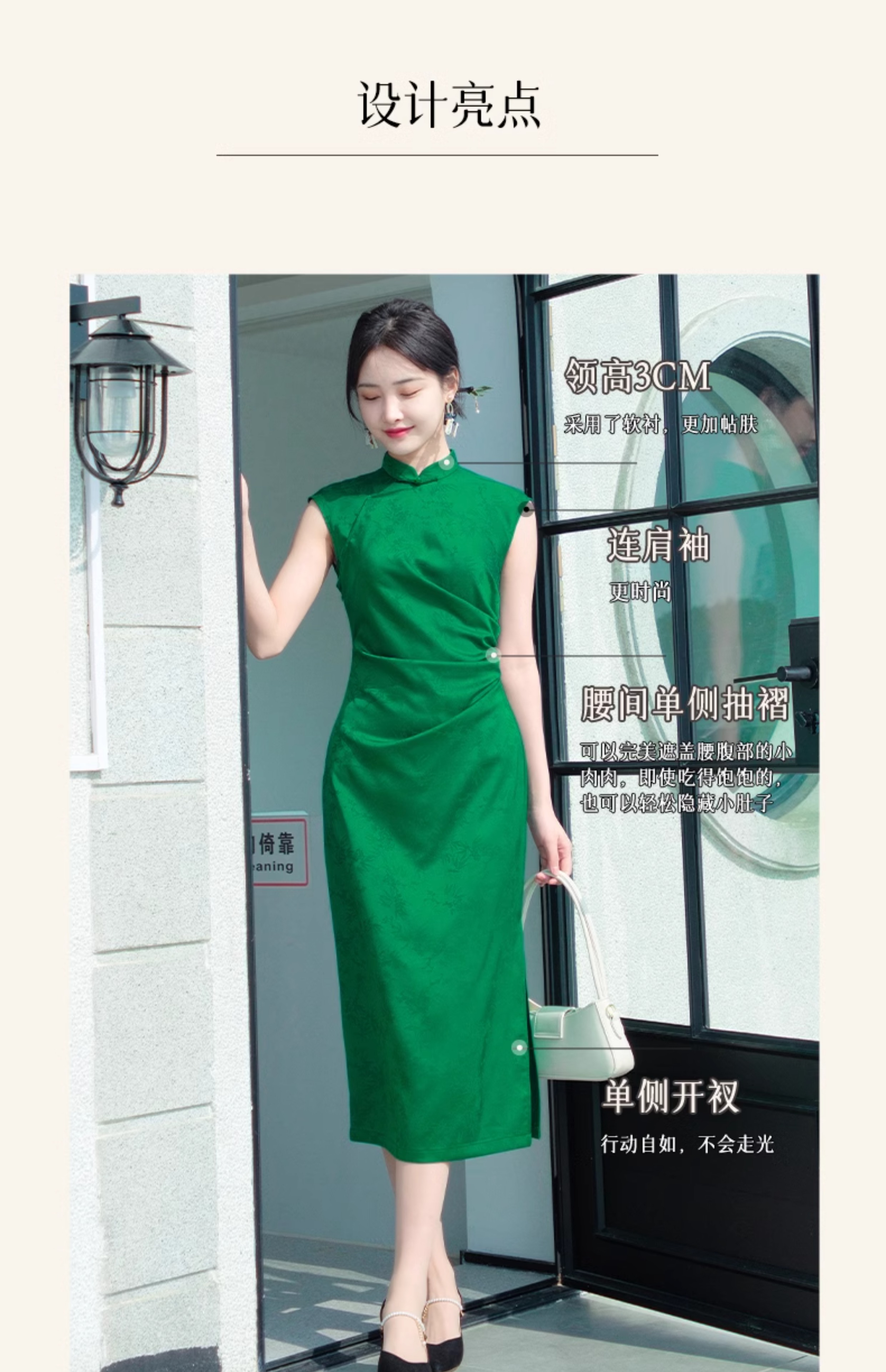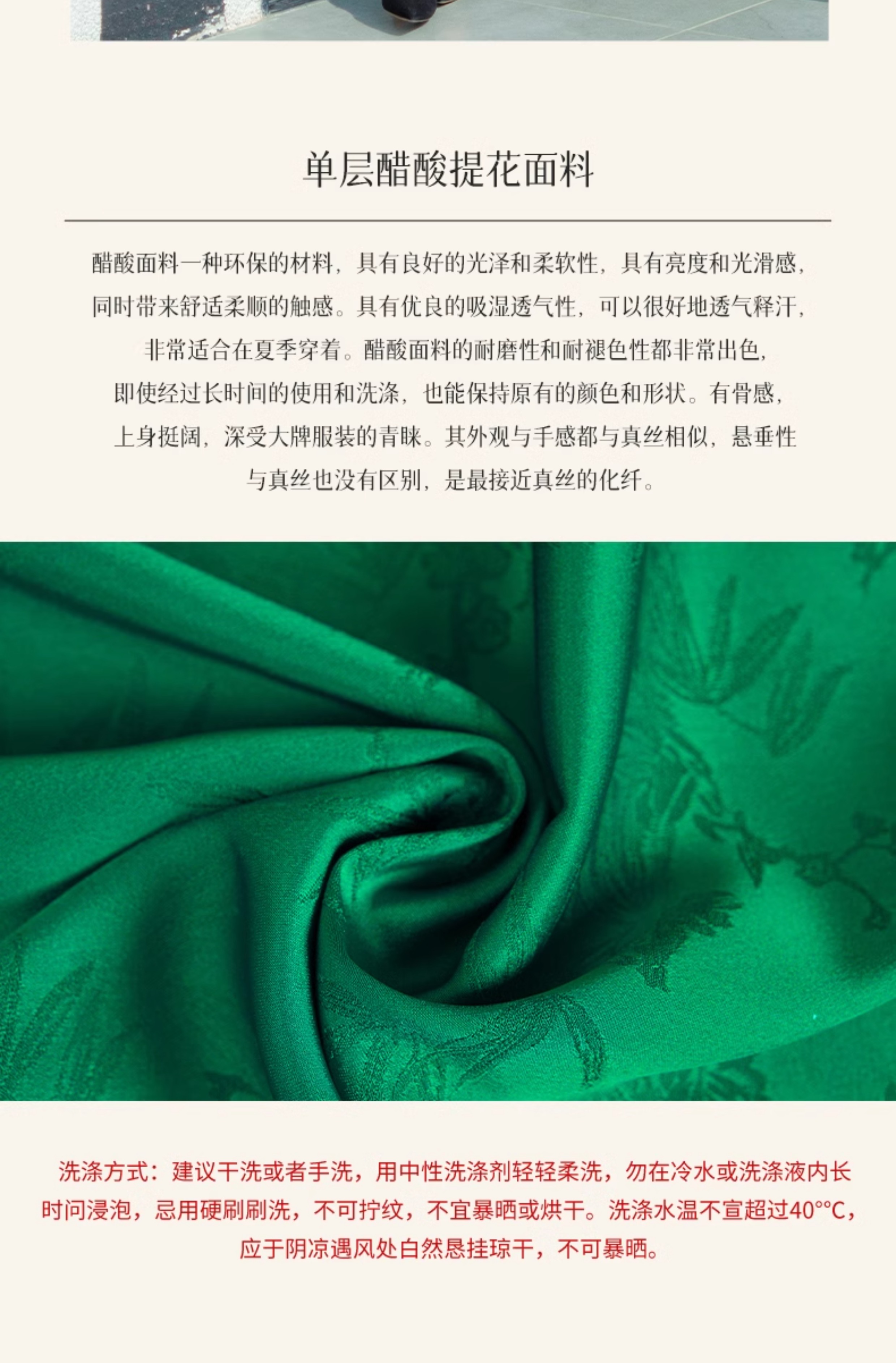 逸红颜翠微2025年夏新款极简立体抽褶冰凉醋酸提花单衩新中式旗袍