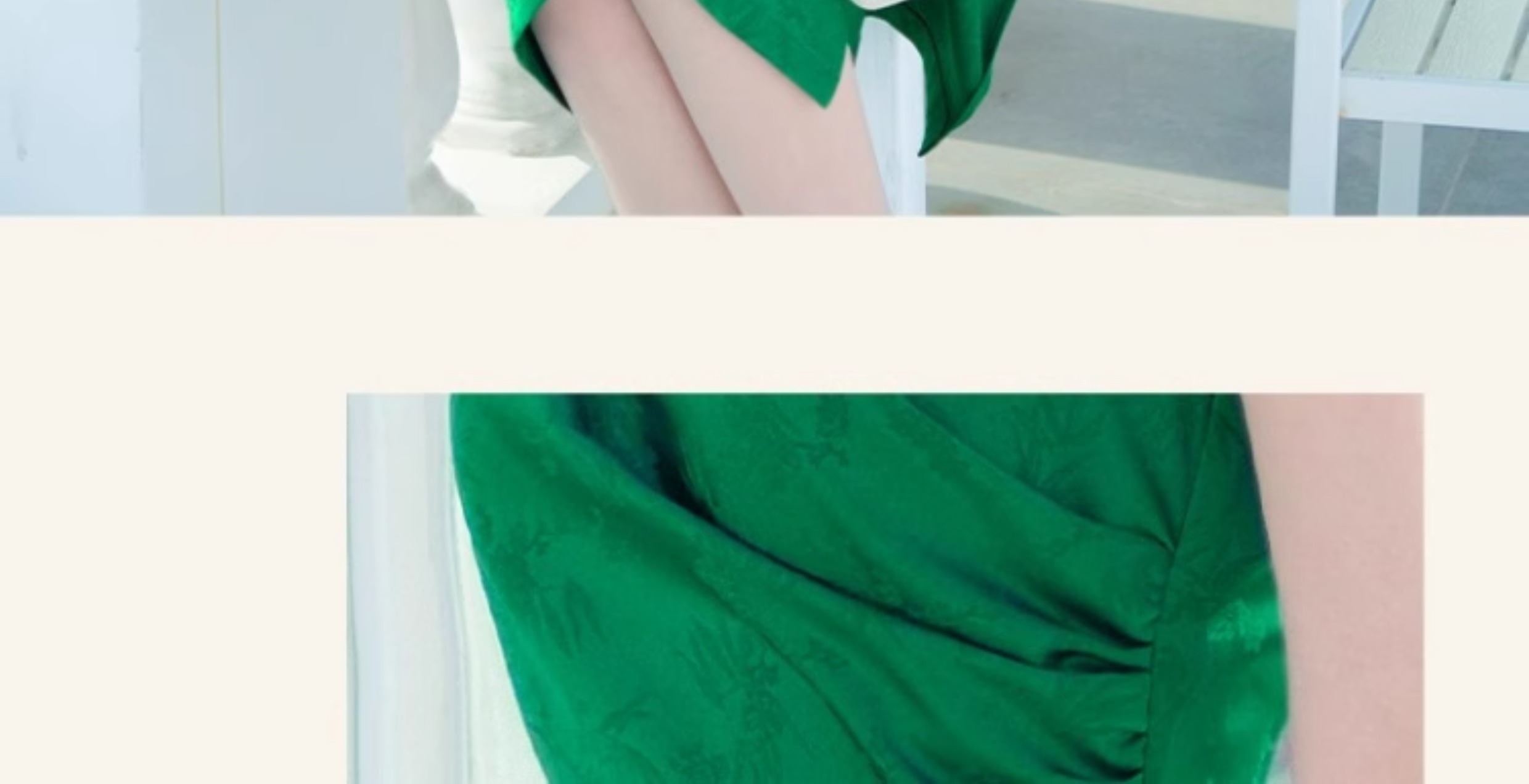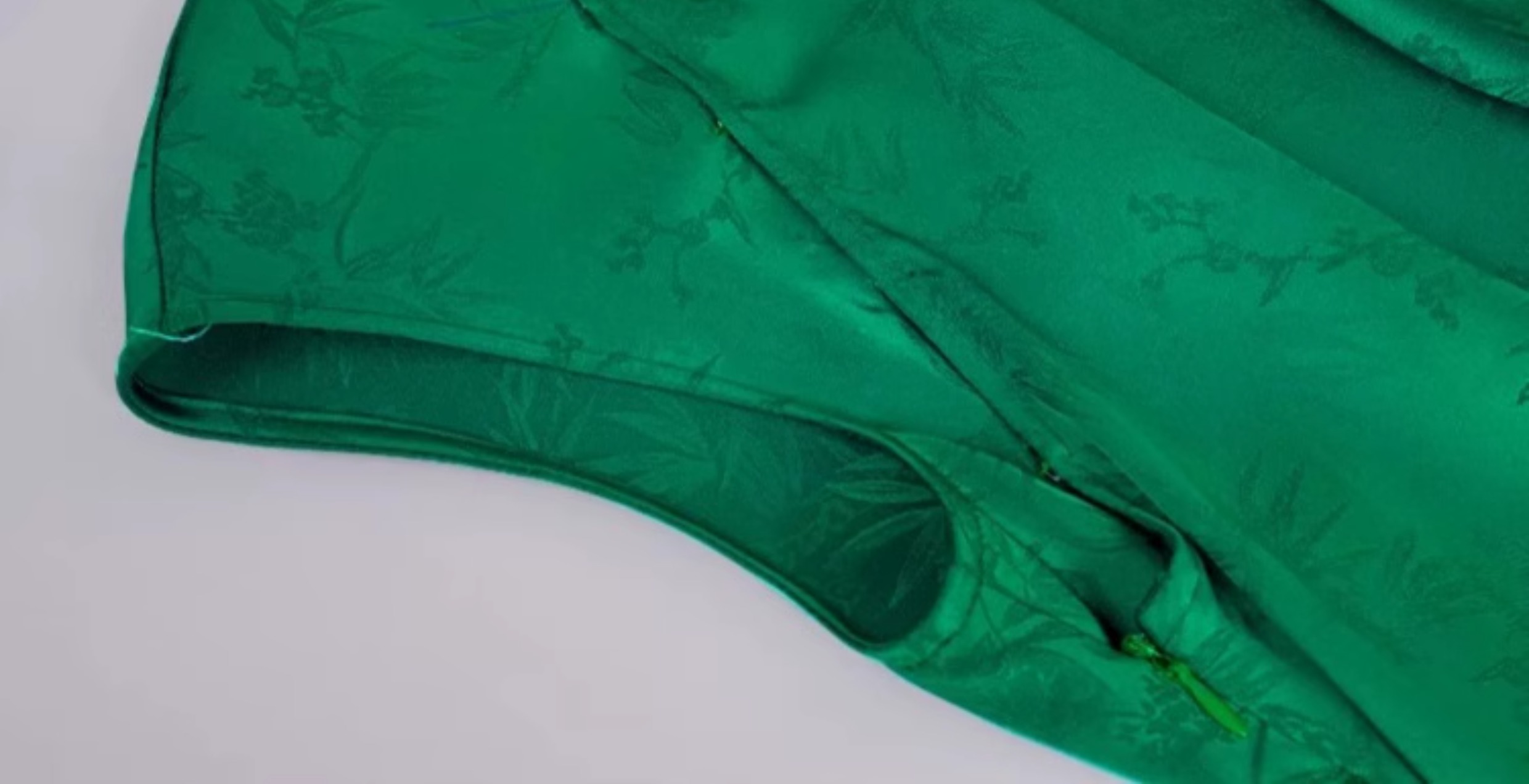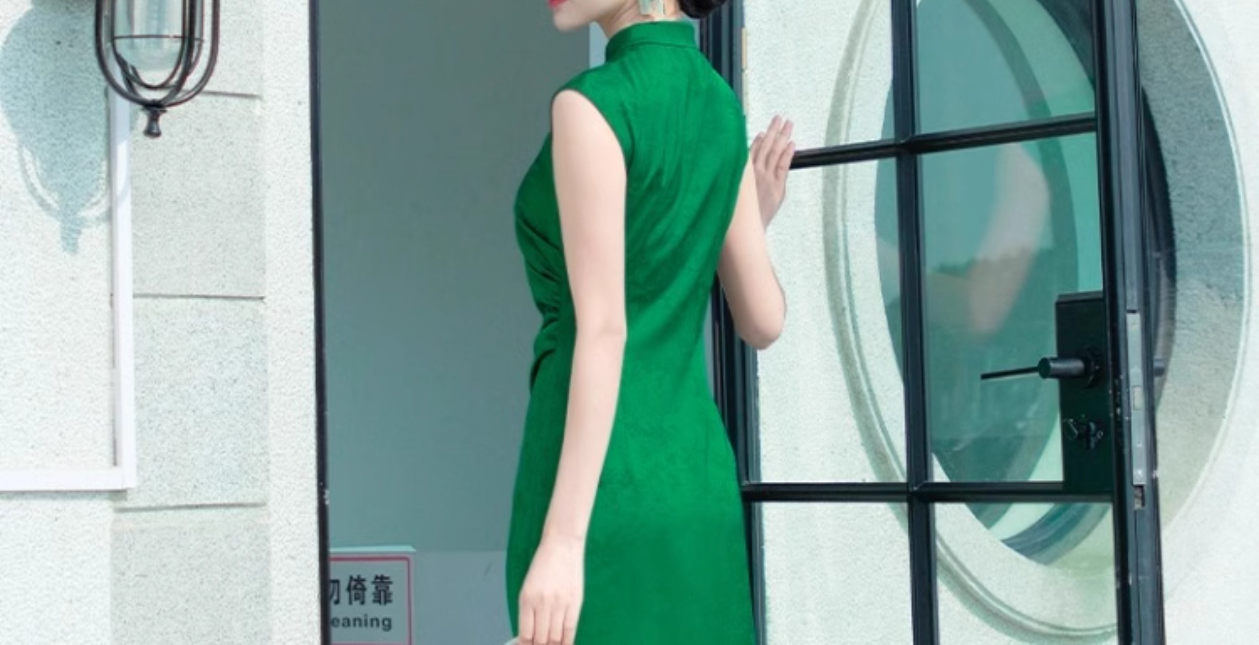逸红颜翠微2025年夏新款极简立体抽褶冰凉醋酸提花单衩新中式旗袍