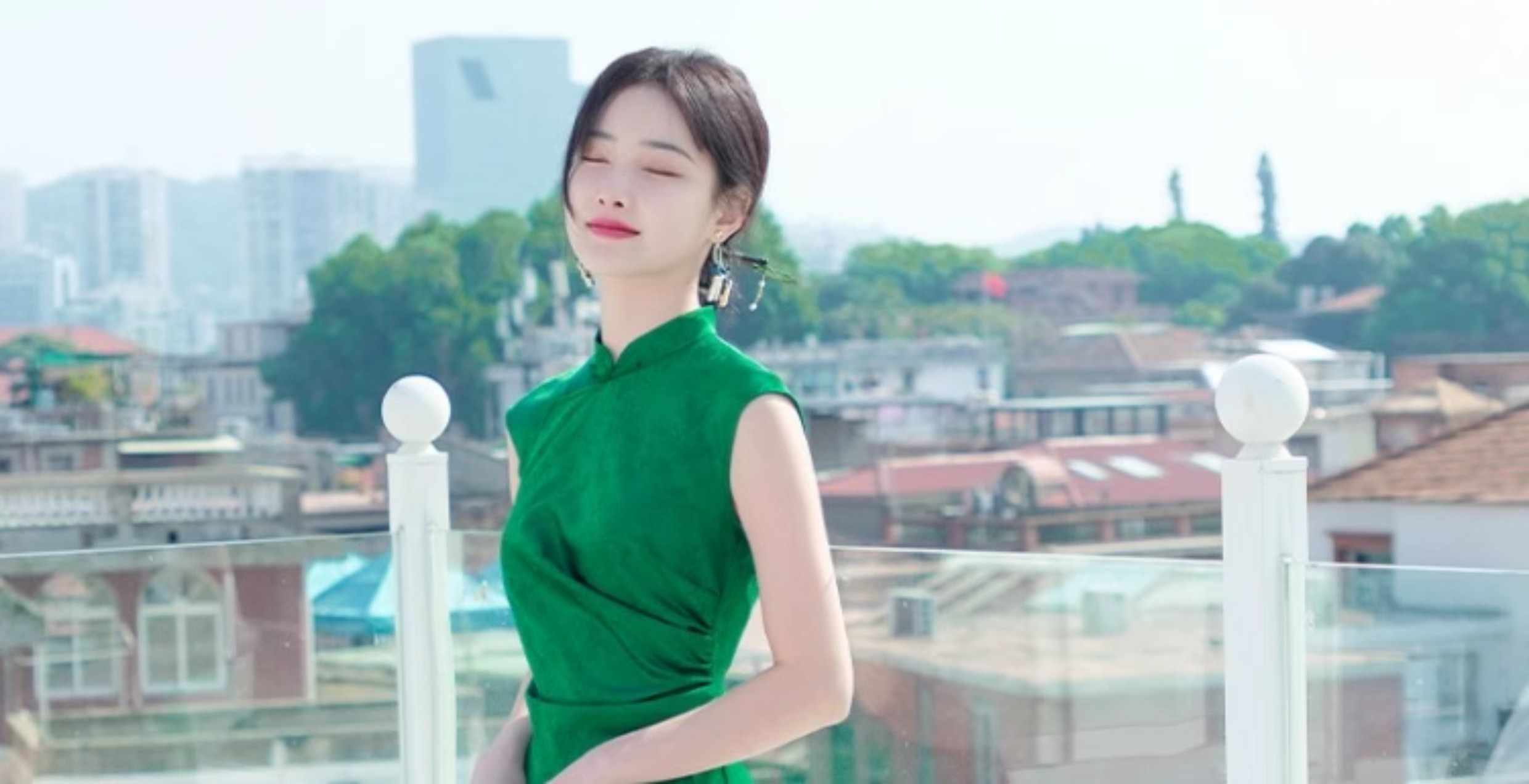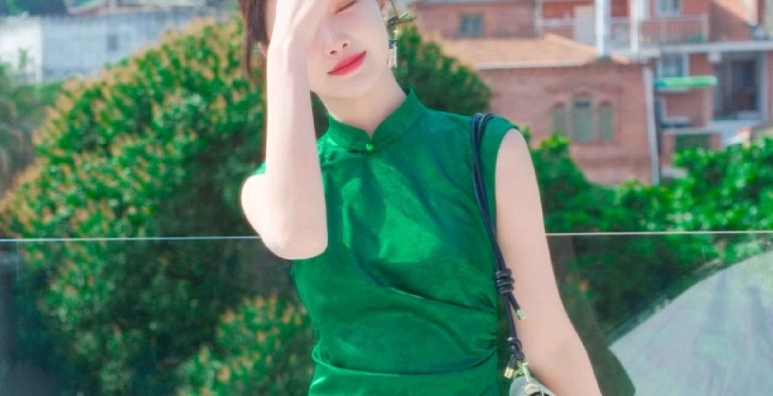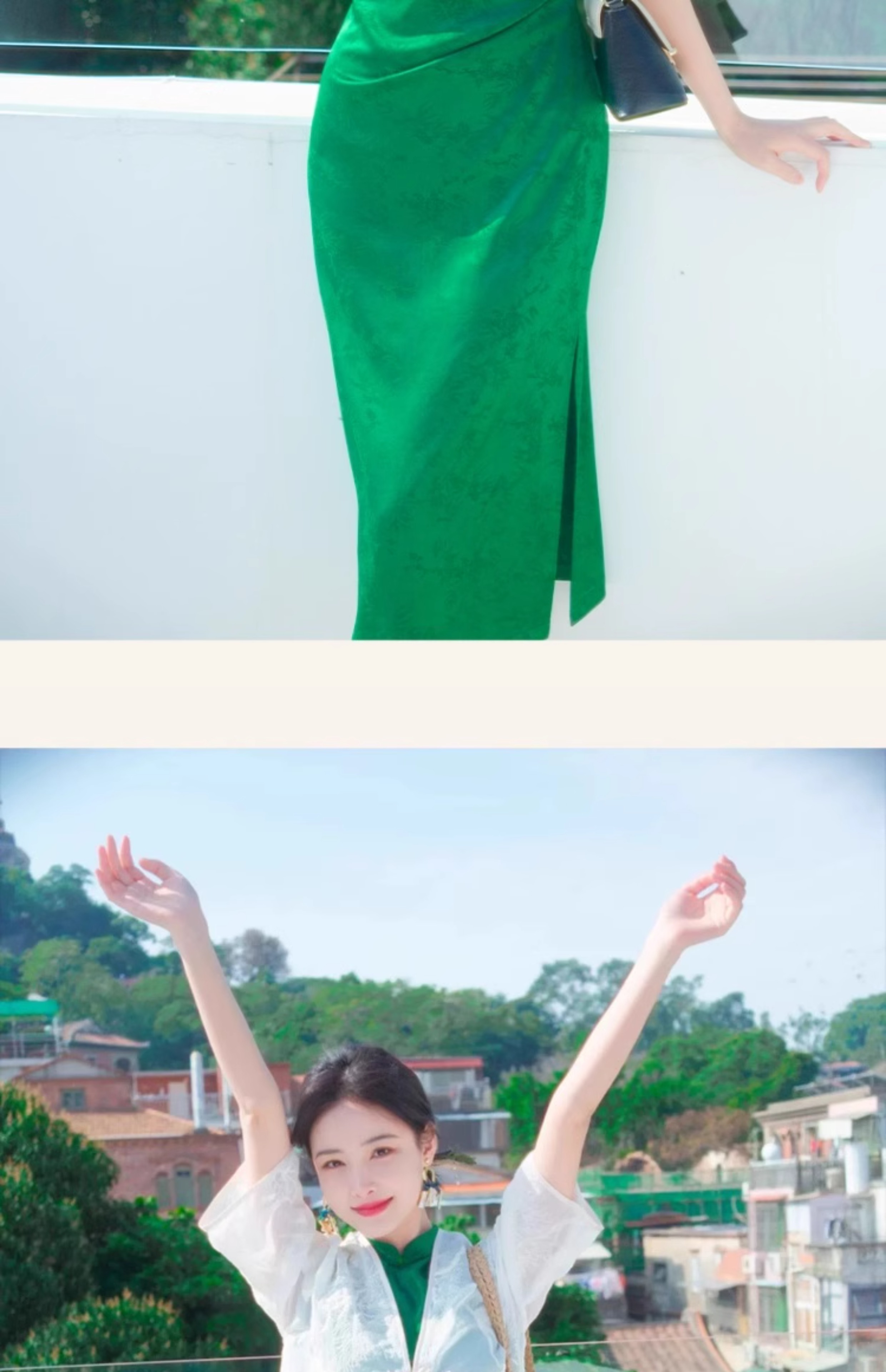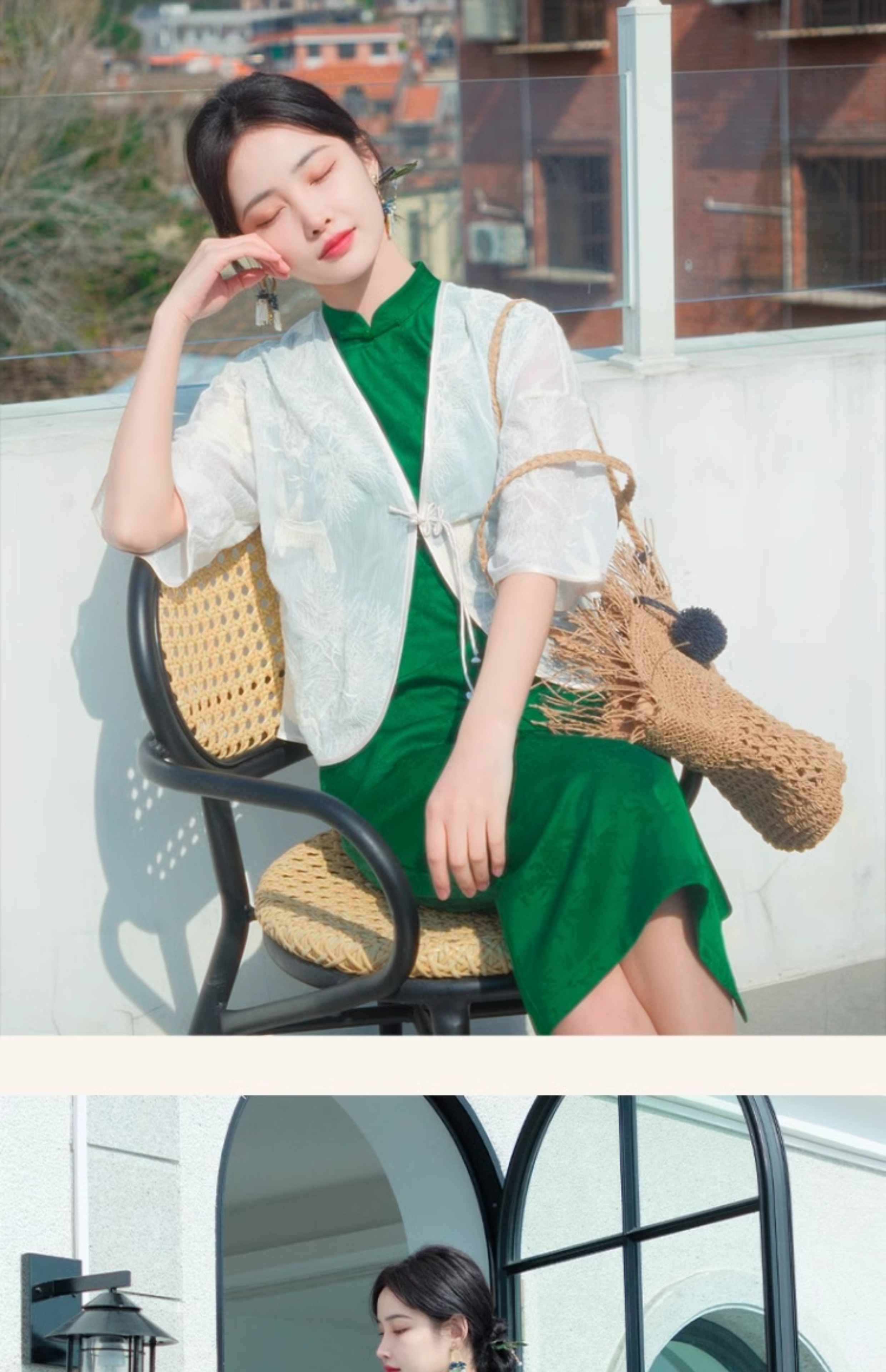 逸红颜翠微2025年夏新款极简立体抽褶冰凉醋酸提花单衩新中式旗袍