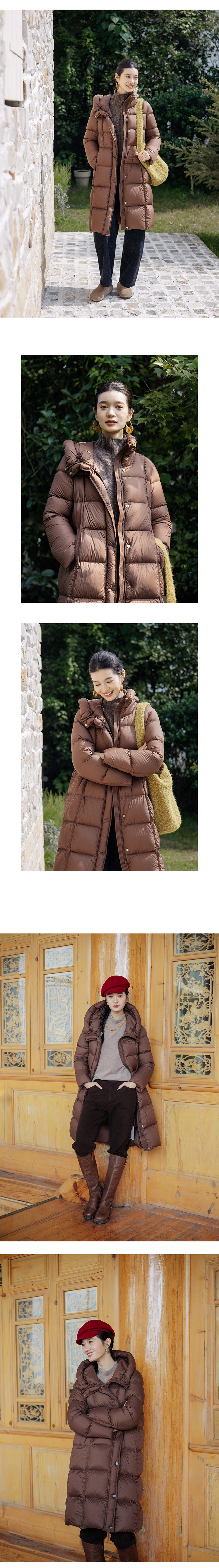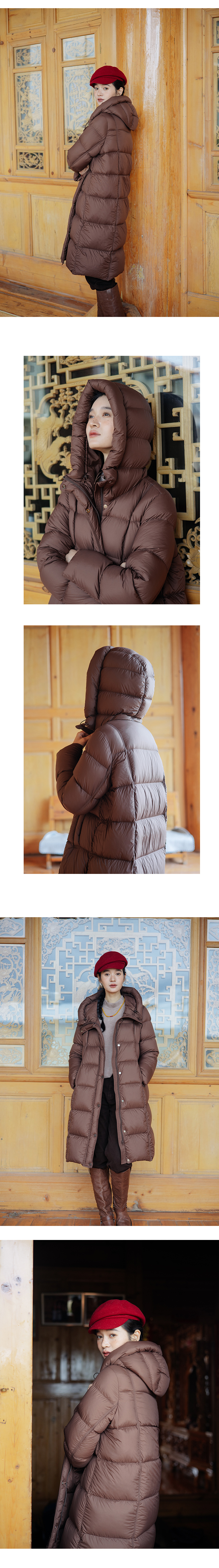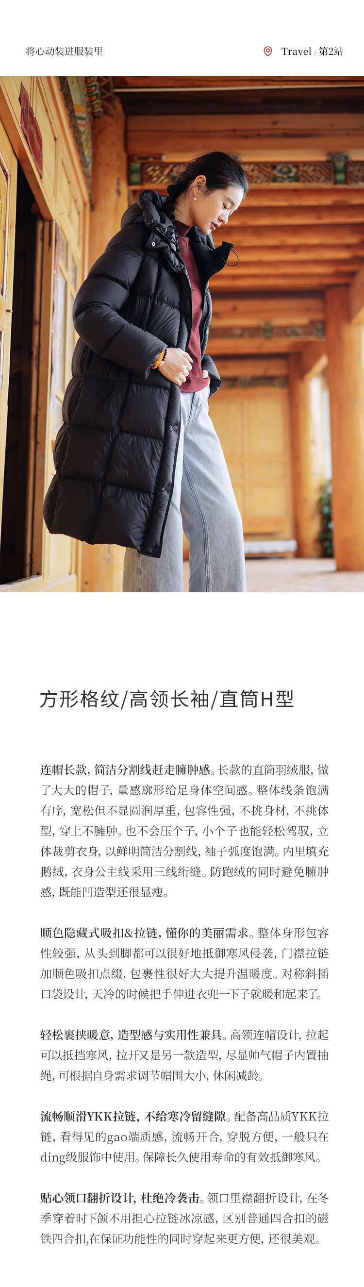 绽放811朵/*被子款鹅绒服被子款中长款方形格纹高领连帽羽绒服