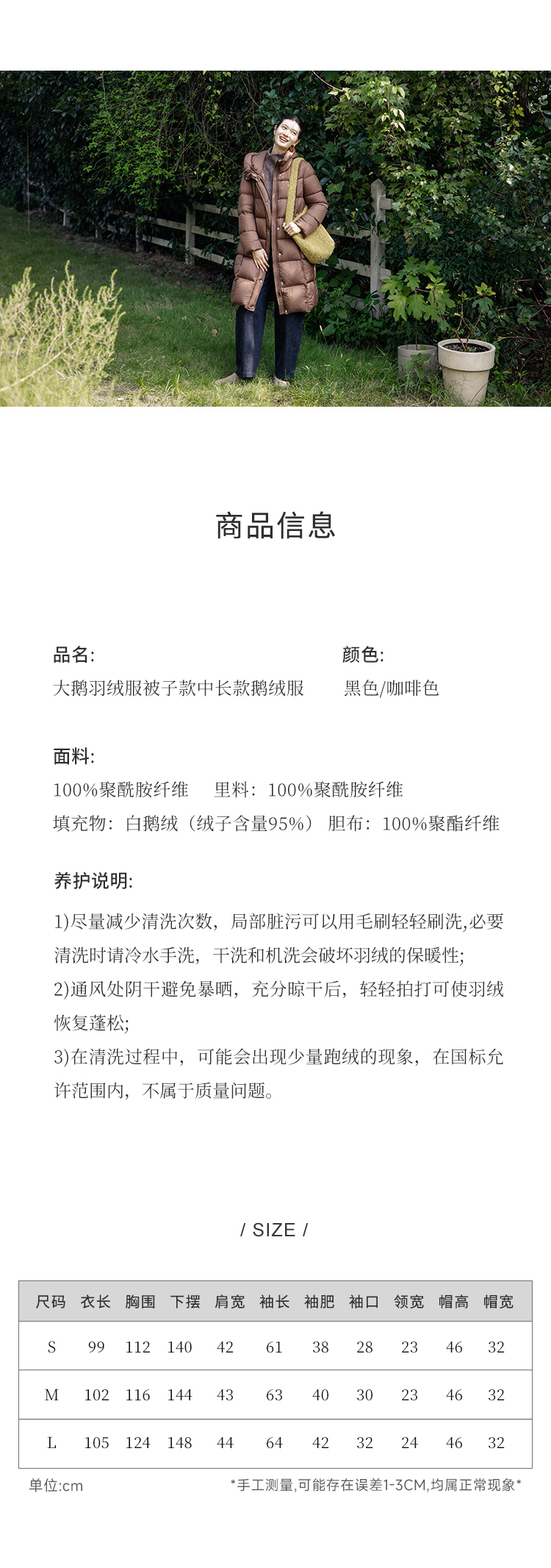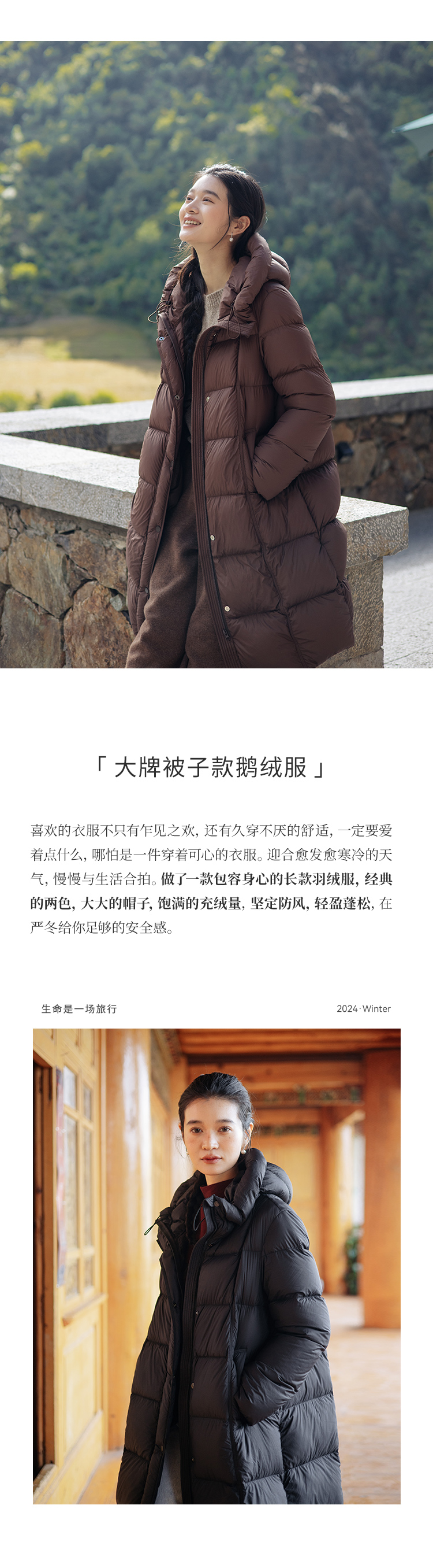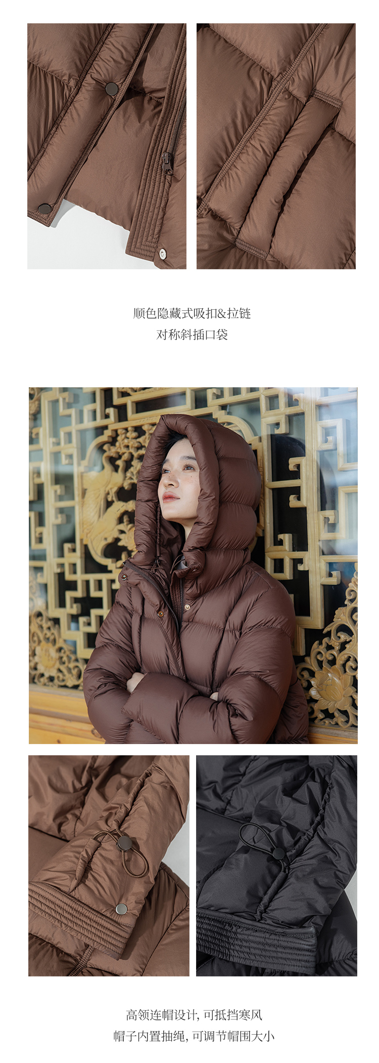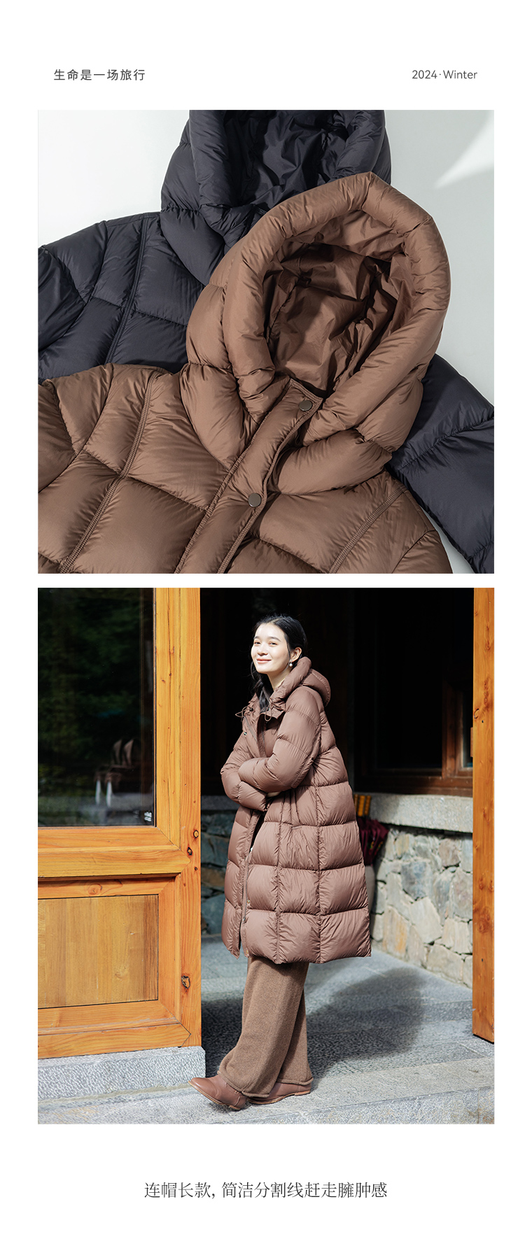 绽放811朵/*被子款鹅绒服被子款中长款方形格纹高领连帽羽绒服