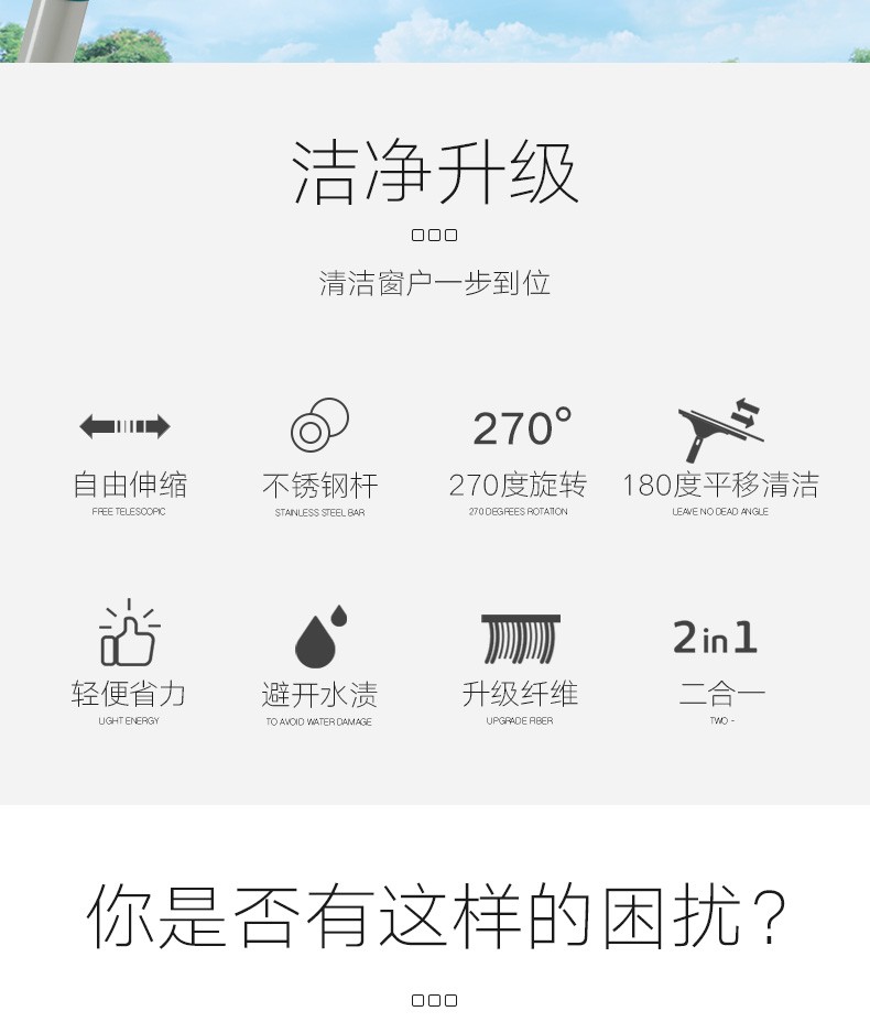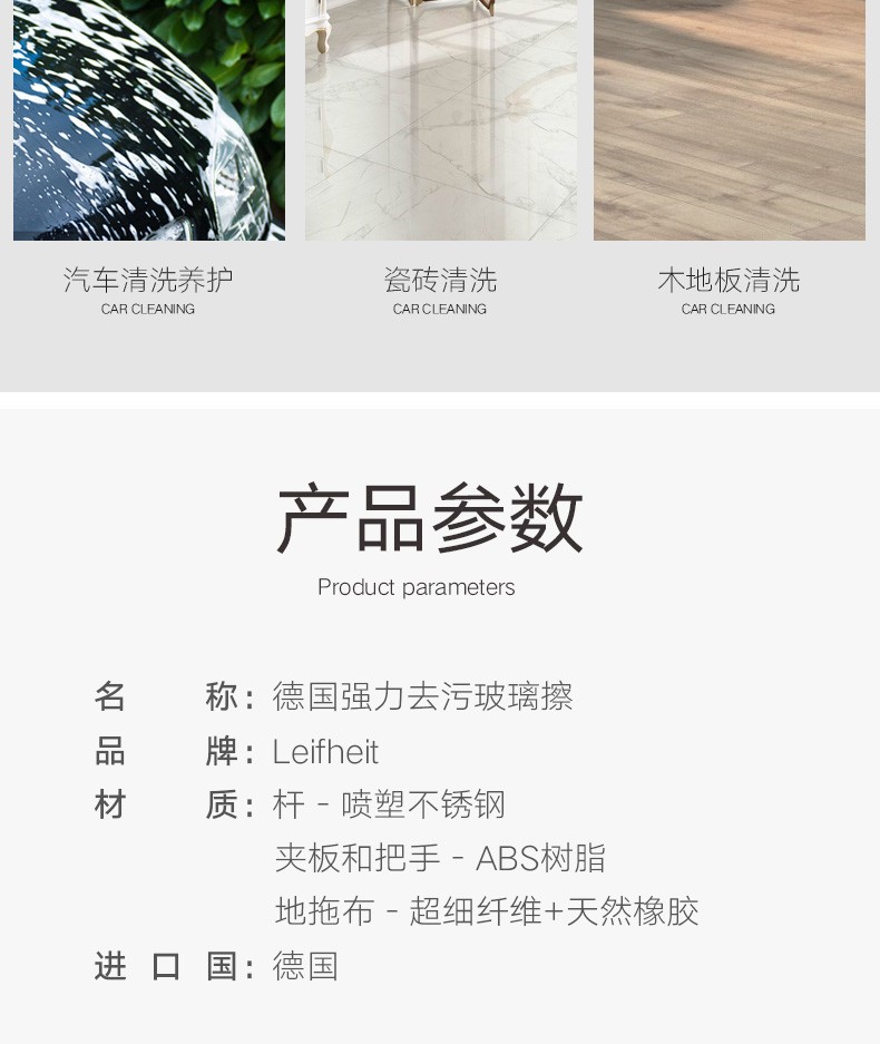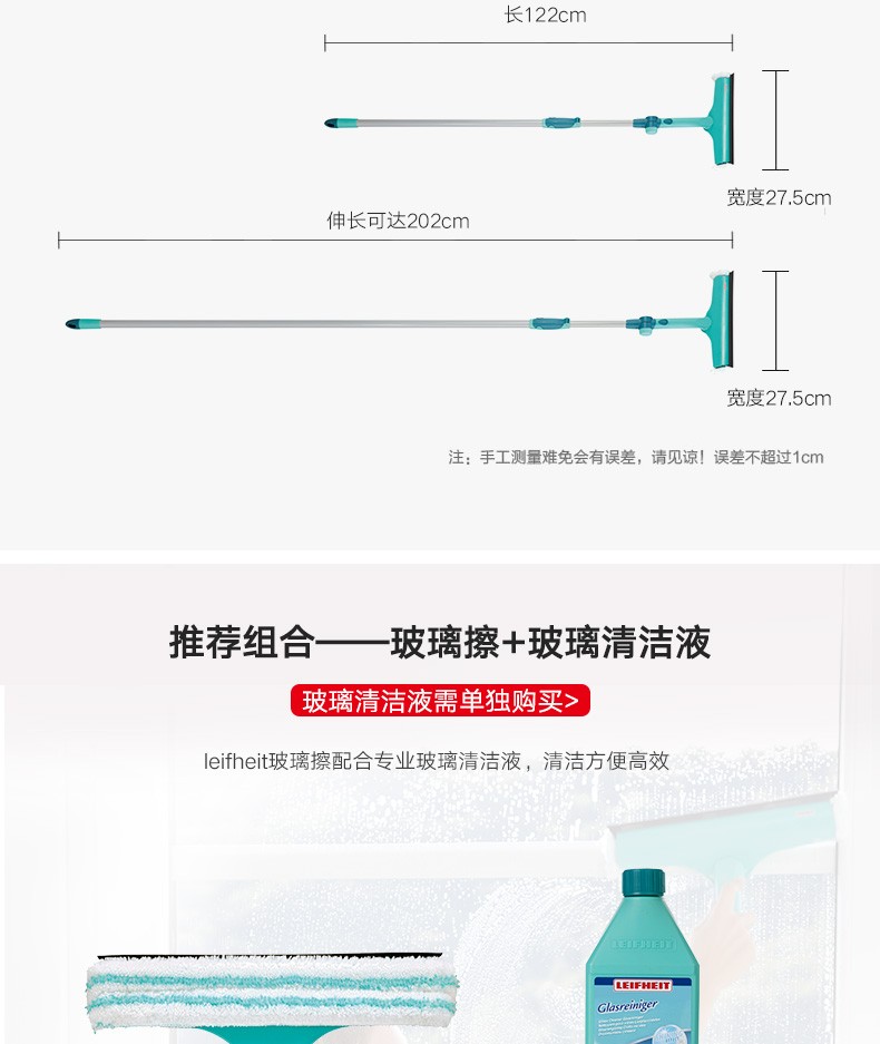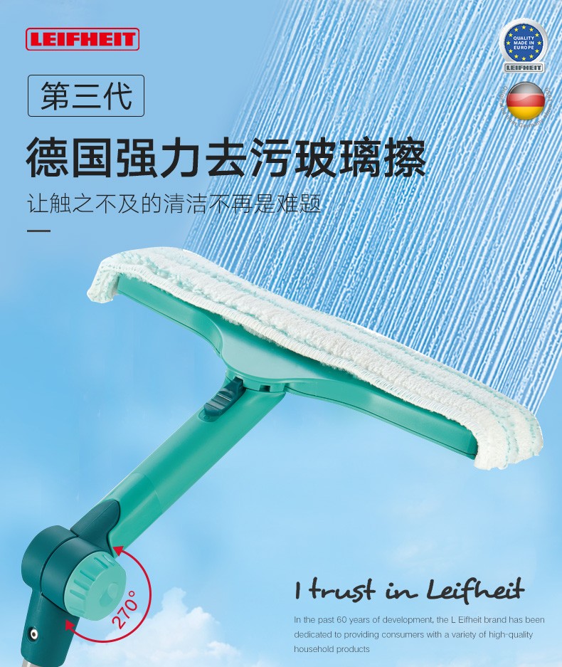【6F】利快 强力去污玻璃擦德国进口擦玻璃神器洗车擦车拖把可伸缩旋转Leifheit刮水器