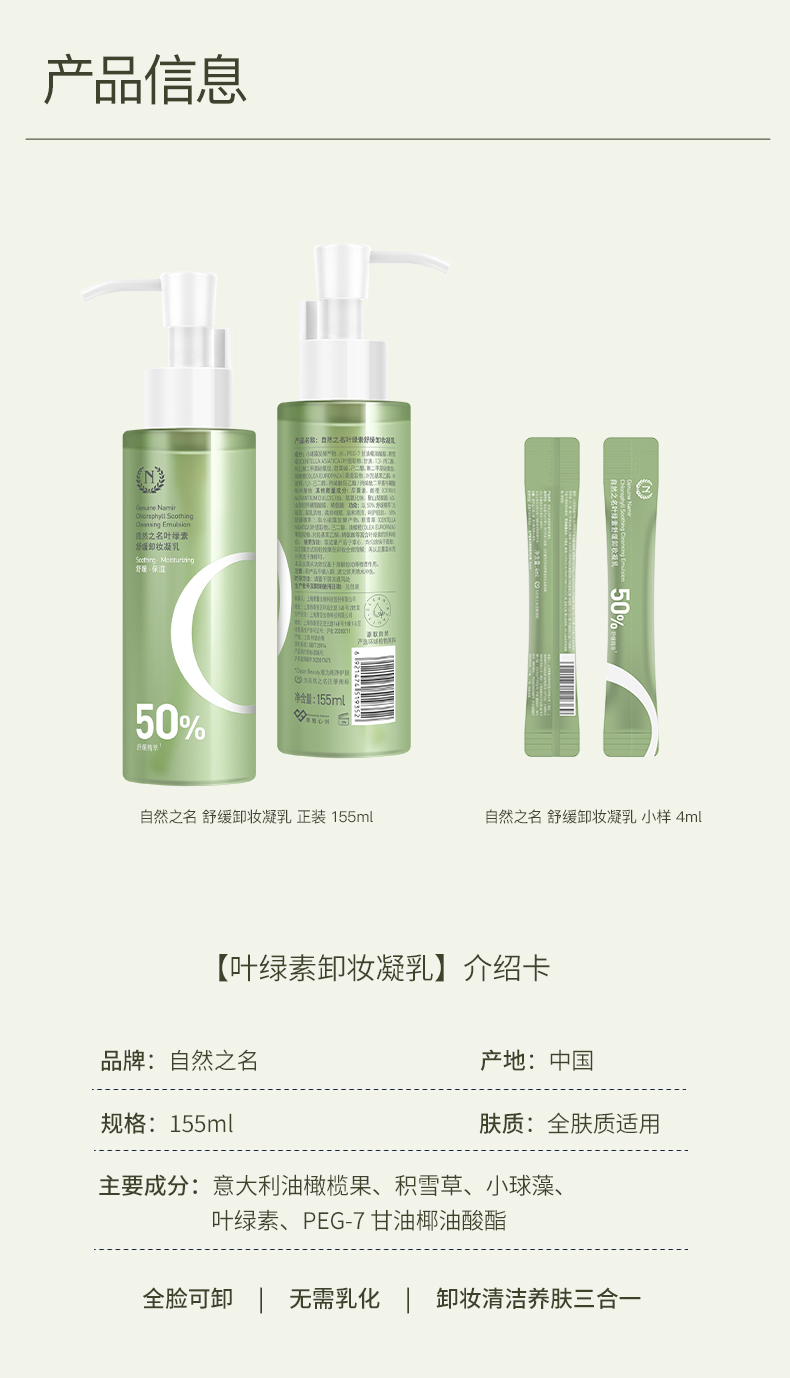 自然之名 叶绿素舒缓卸妆凝乳155ml