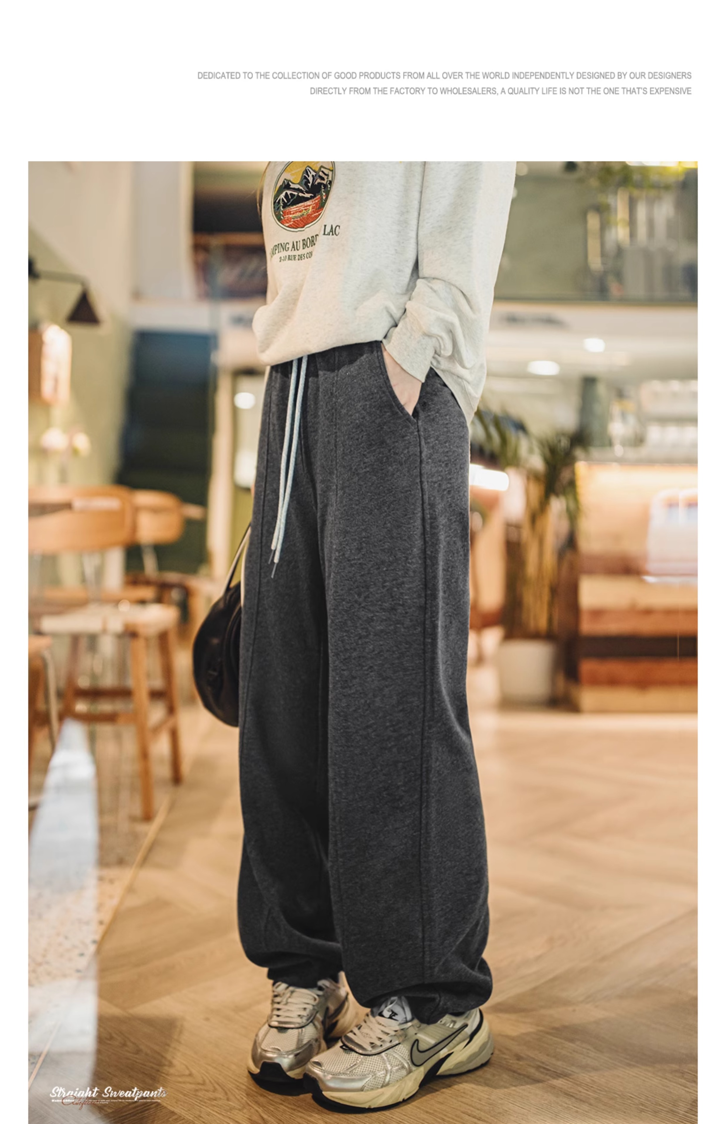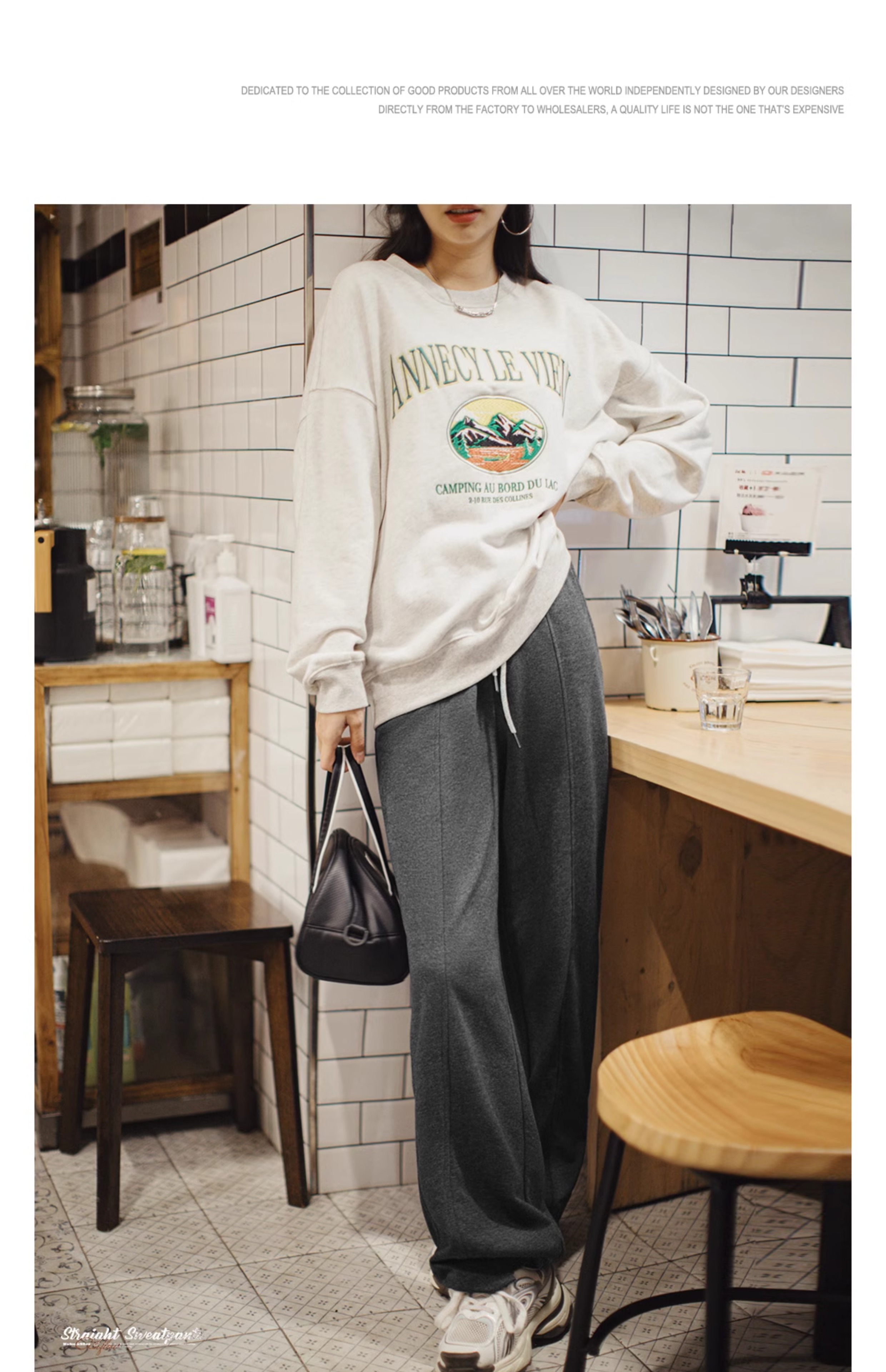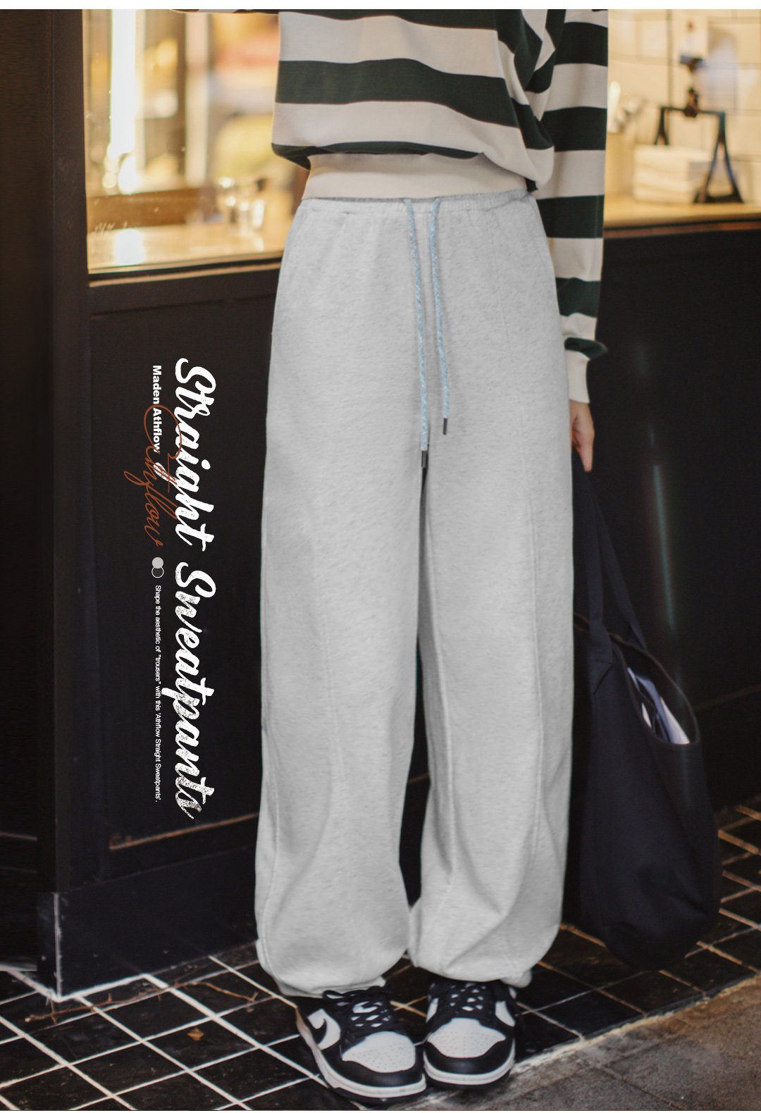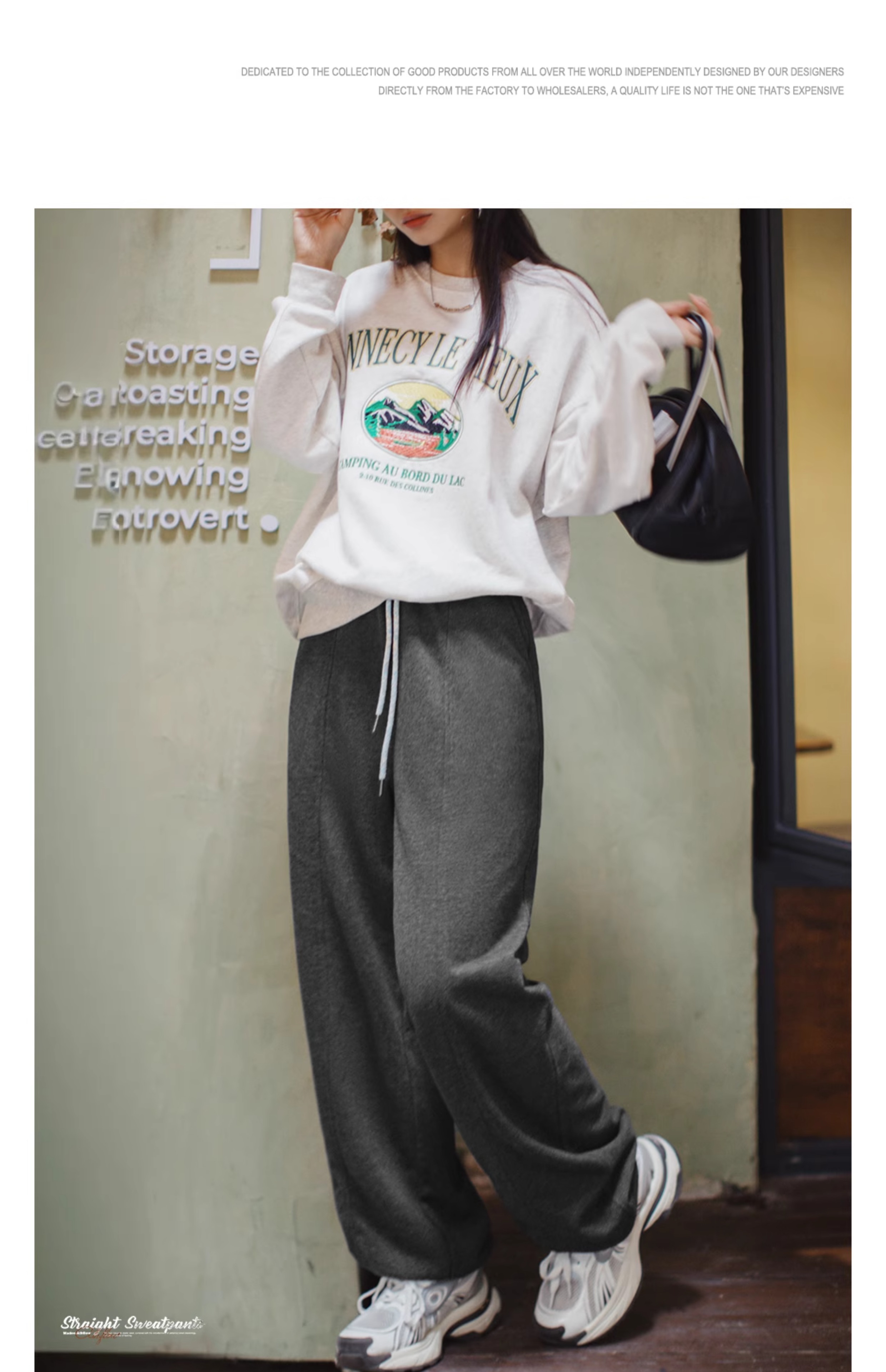 马登Athflow风直筒卫裤松弛感休闲裤宽松阔腿裤松紧腰长裤秋冬女