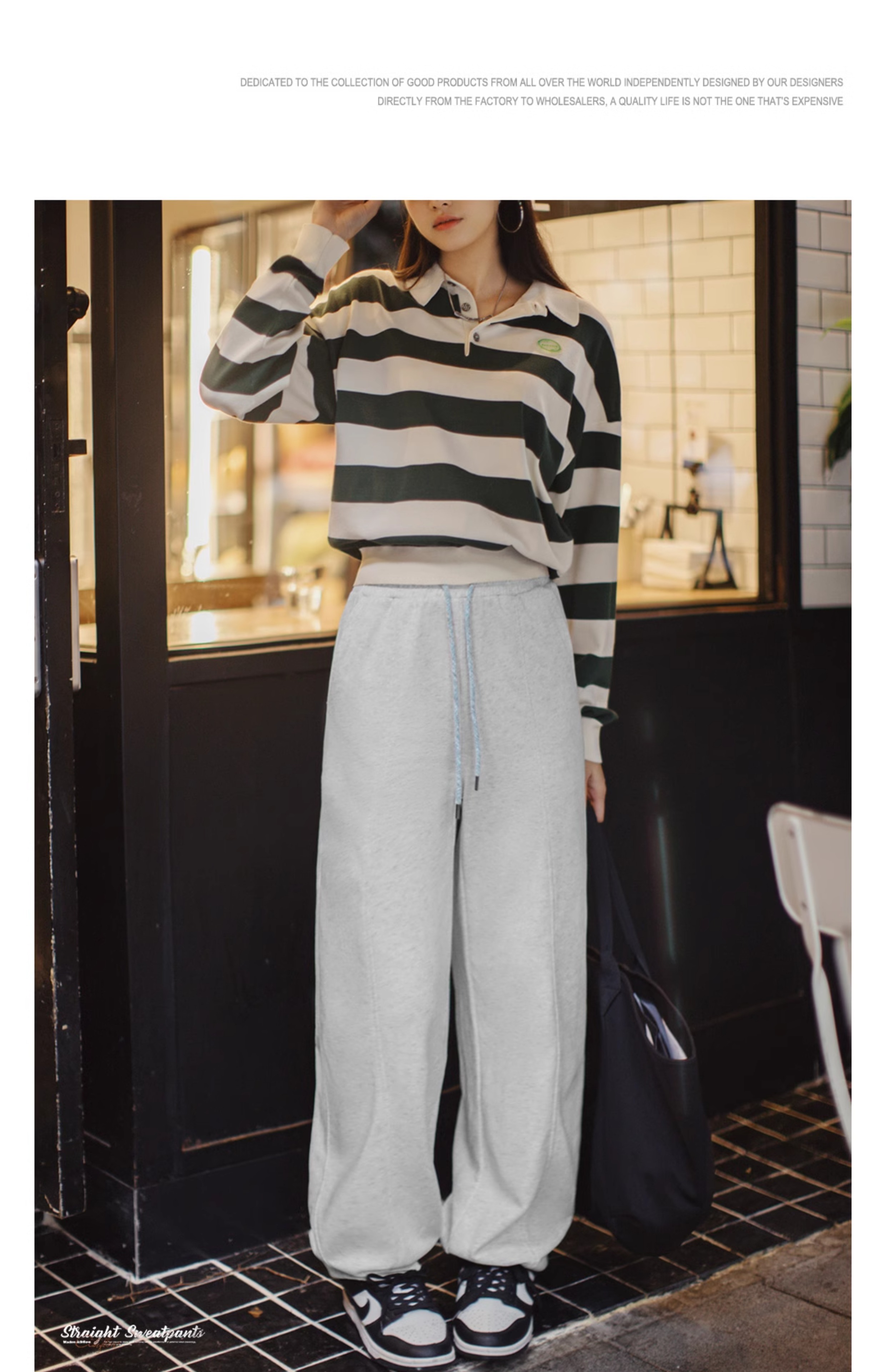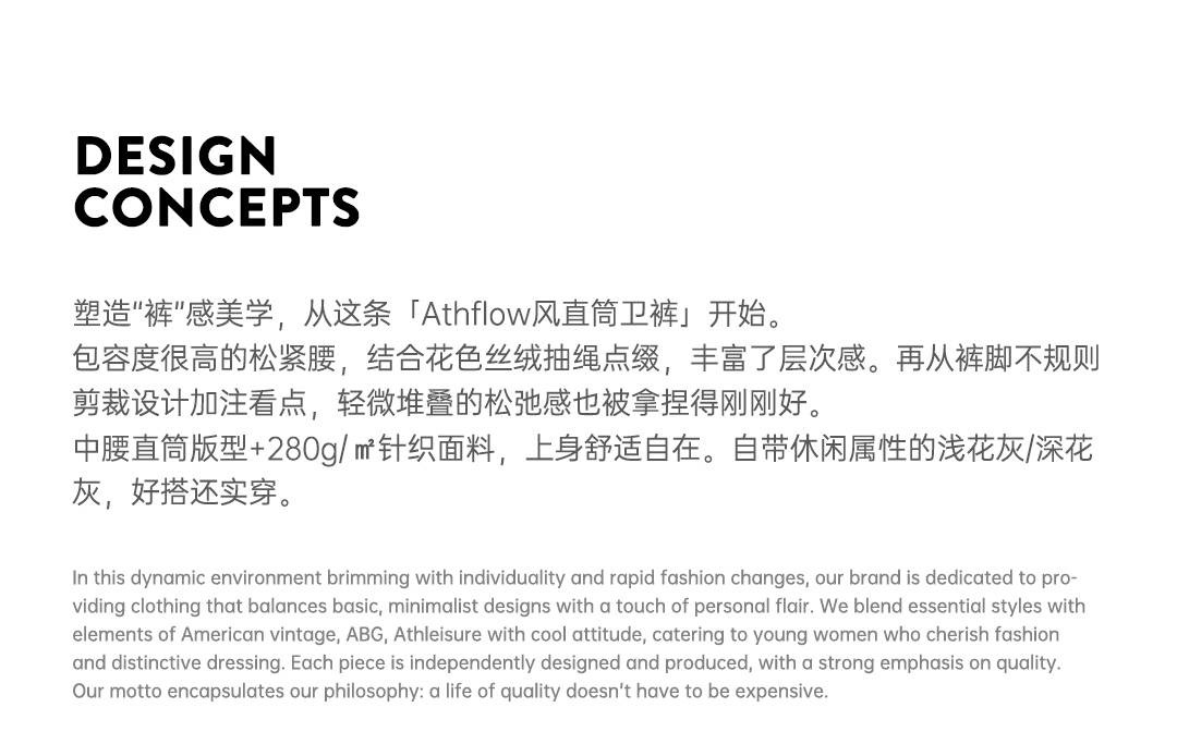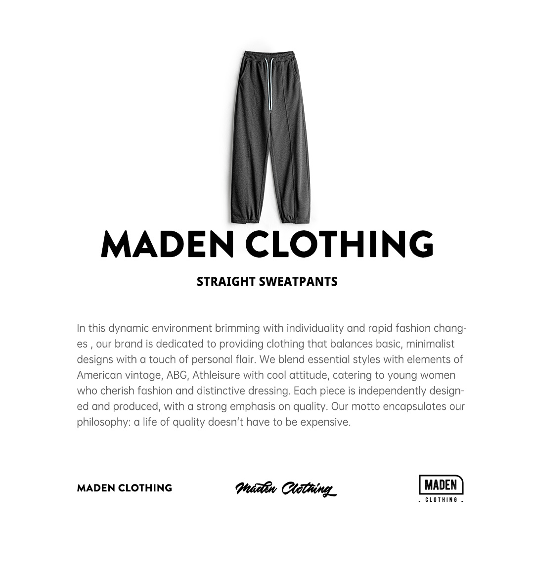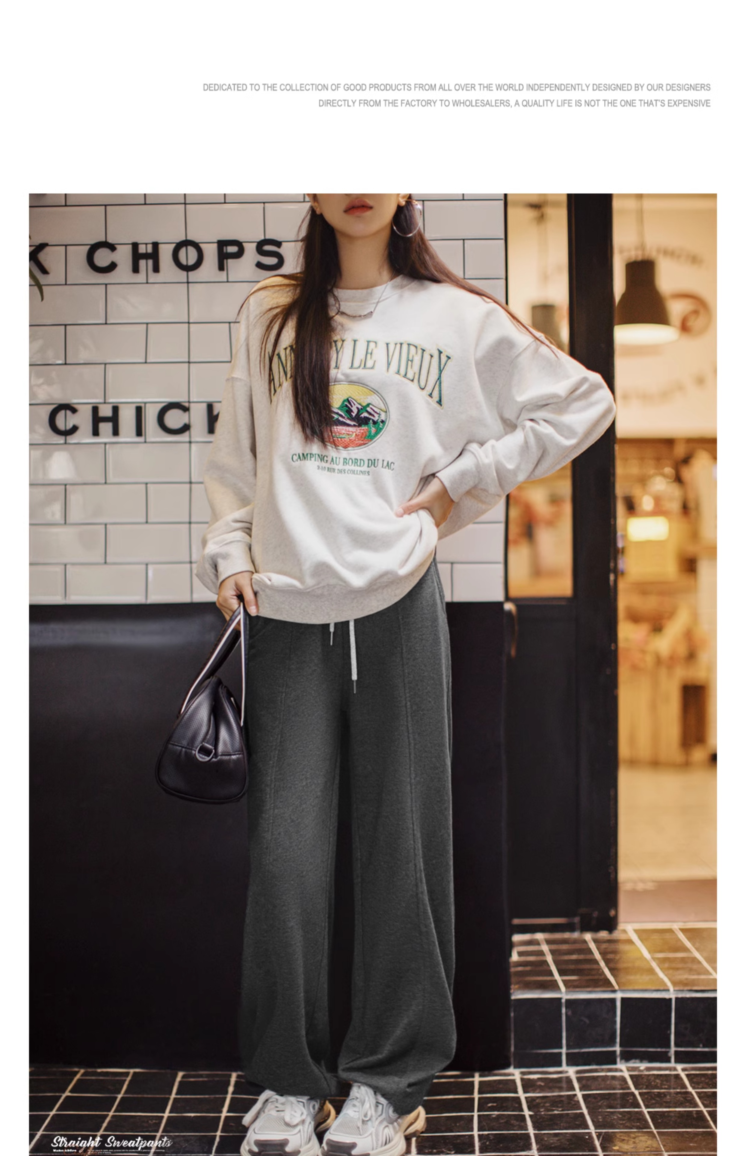 马登Athflow风直筒卫裤松弛感休闲裤宽松阔腿裤松紧腰长裤秋冬女