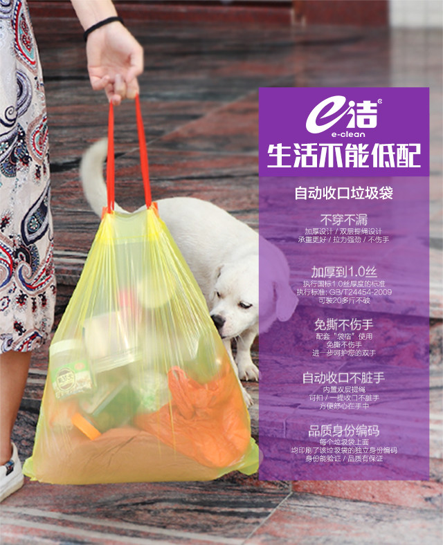 不穿漏/不脏手/骚气 e洁解忧良品自动收口抽取式垃圾袋