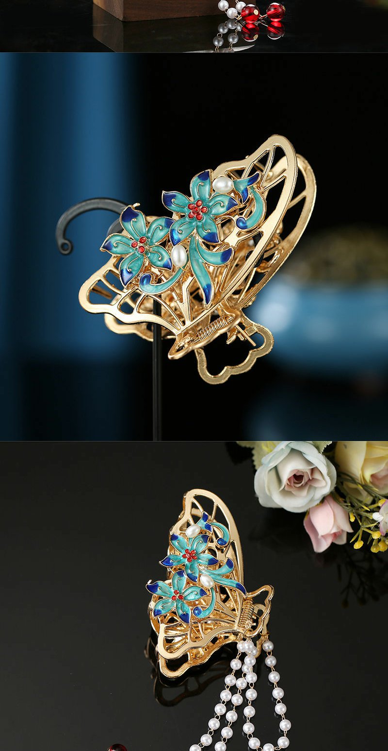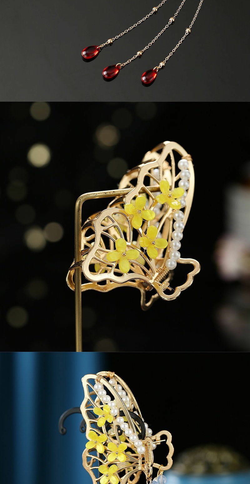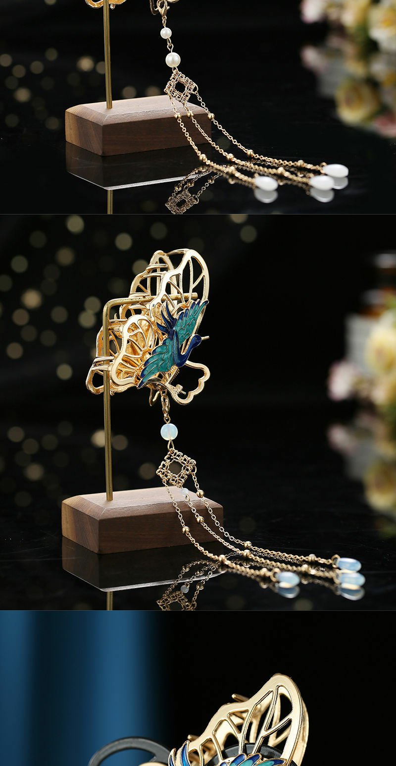 汉元素蝴蝶抓夹汉服配饰流苏后脑勺发卡古风发夹金属发抓发饰头饰