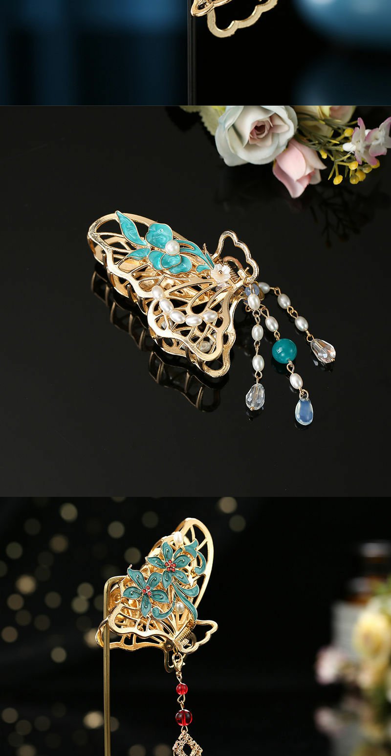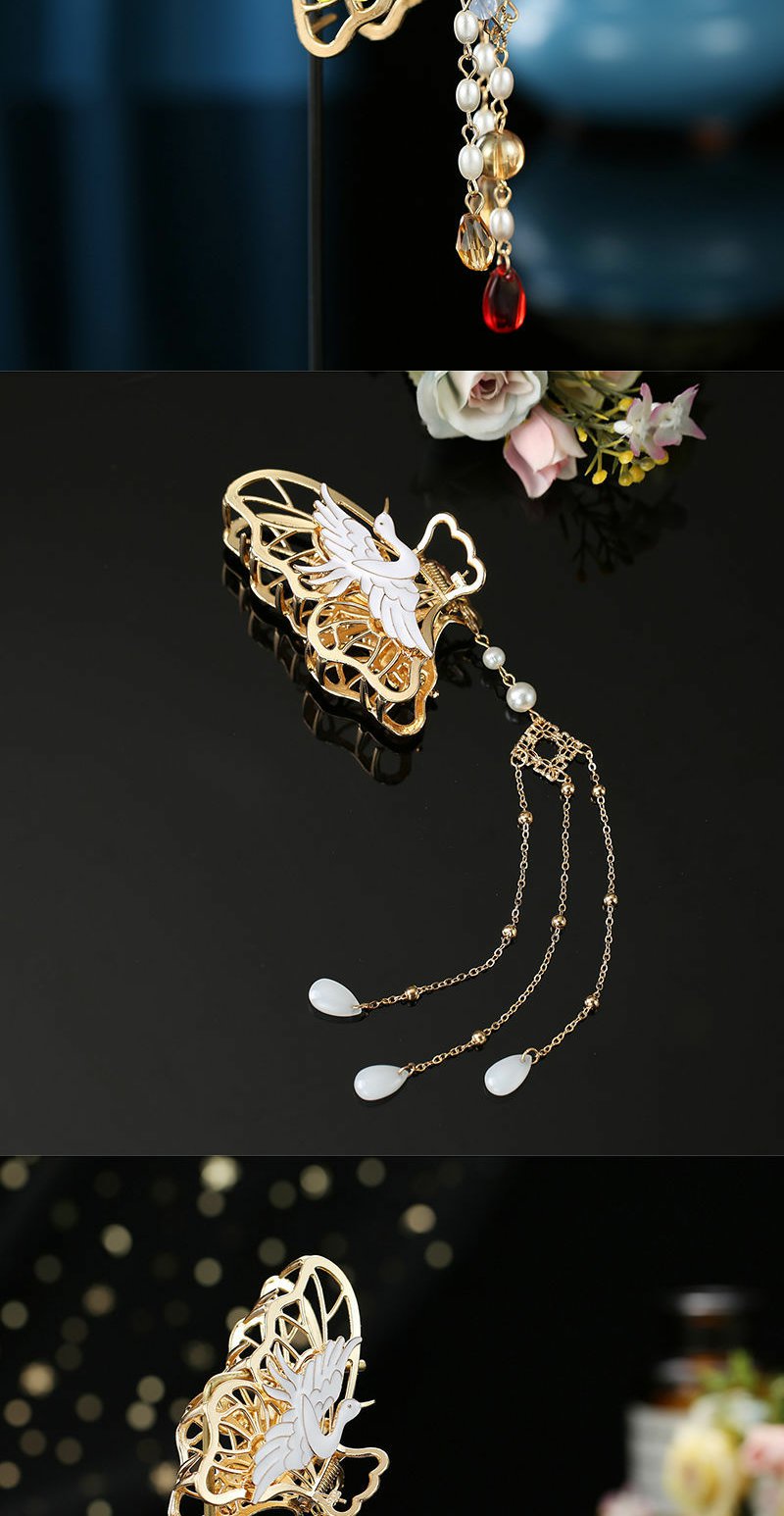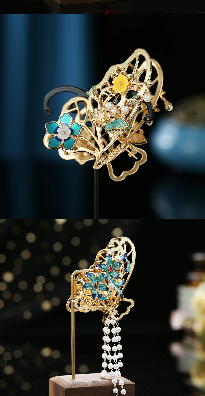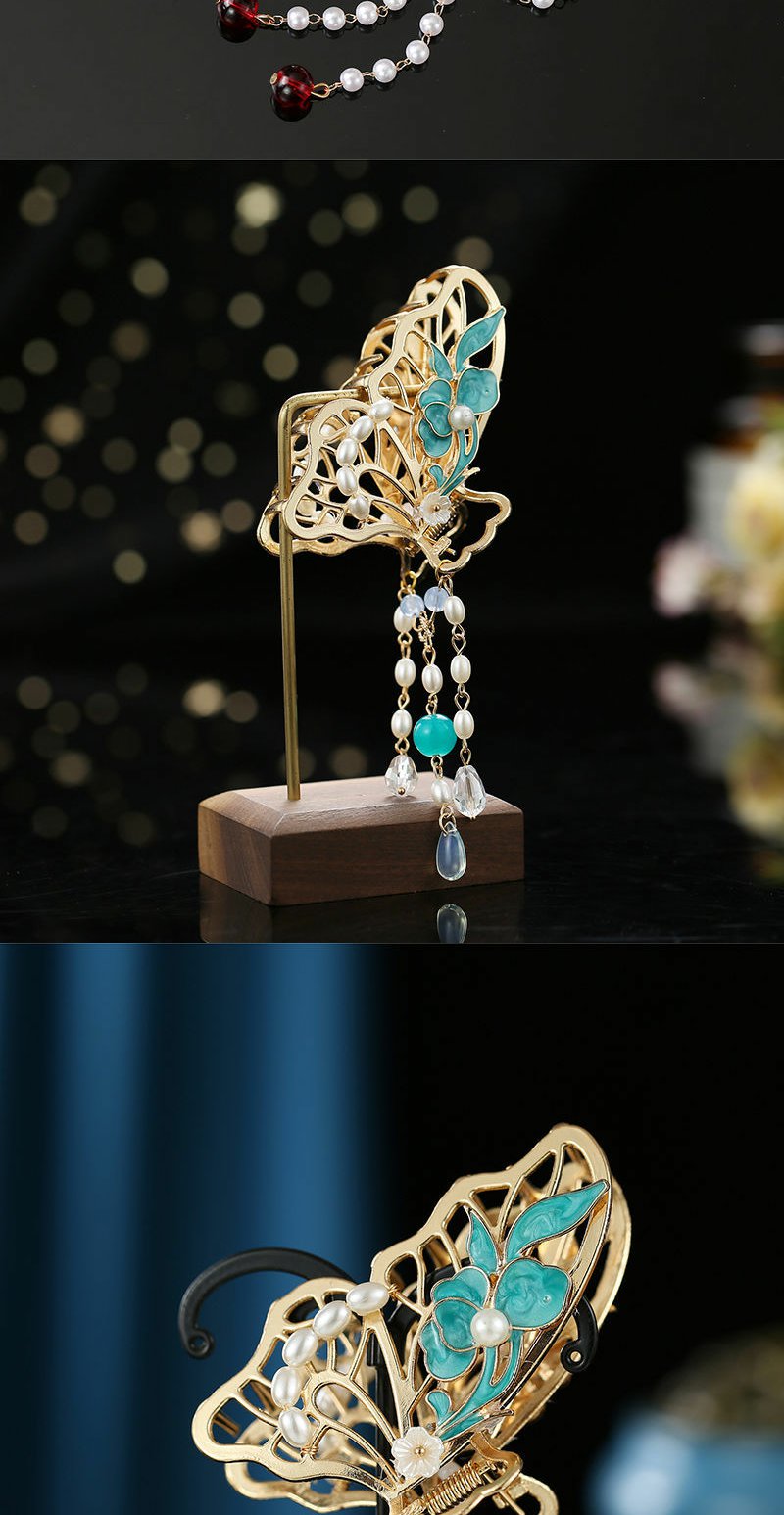 汉元素蝴蝶抓夹汉服配饰流苏后脑勺发卡古风发夹金属发抓发饰头饰