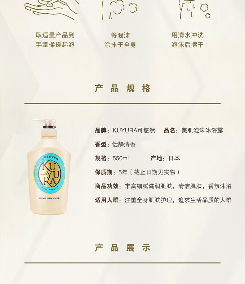 可悠然美肌沐浴露550ml/瓶(恬静清香)【CZ】