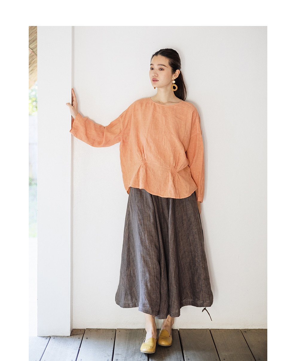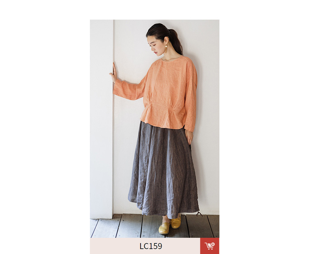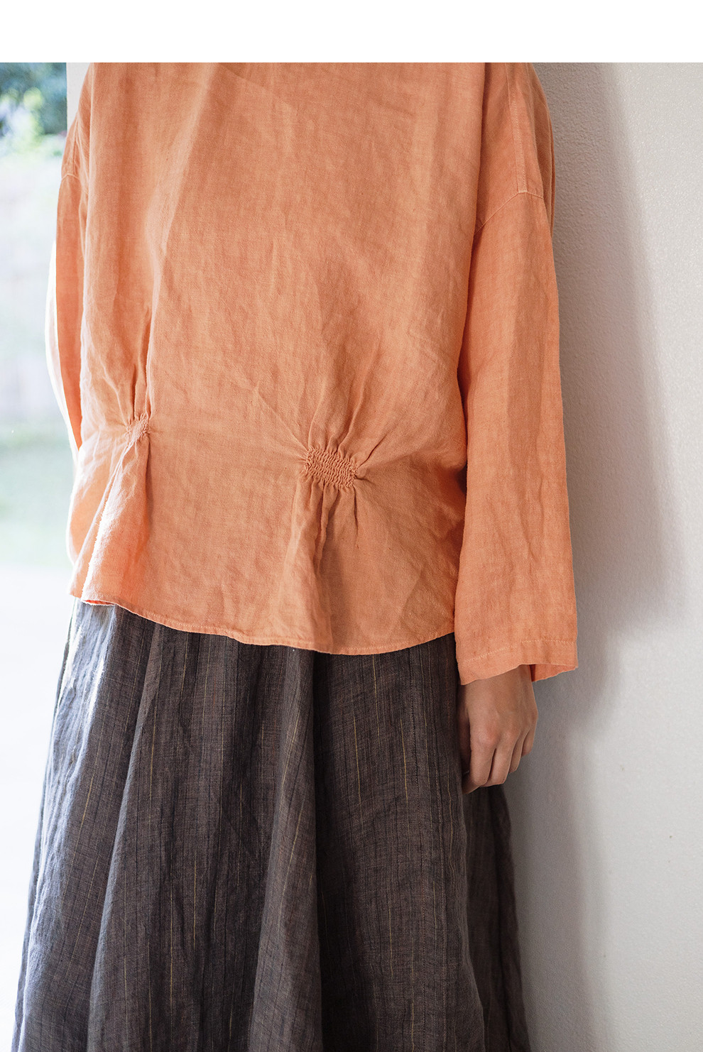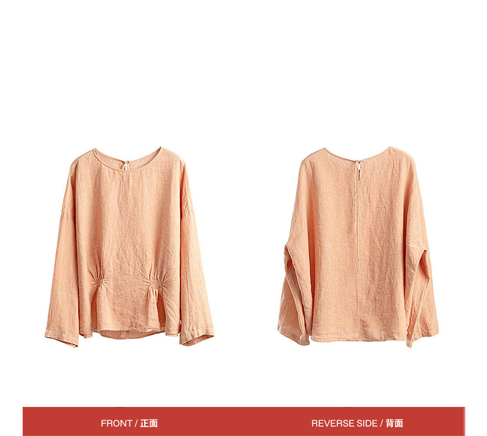 绽放158朵/亚麻成衣染色圆领落肩长袖T恤女宽松显瘦新款小衫百搭
