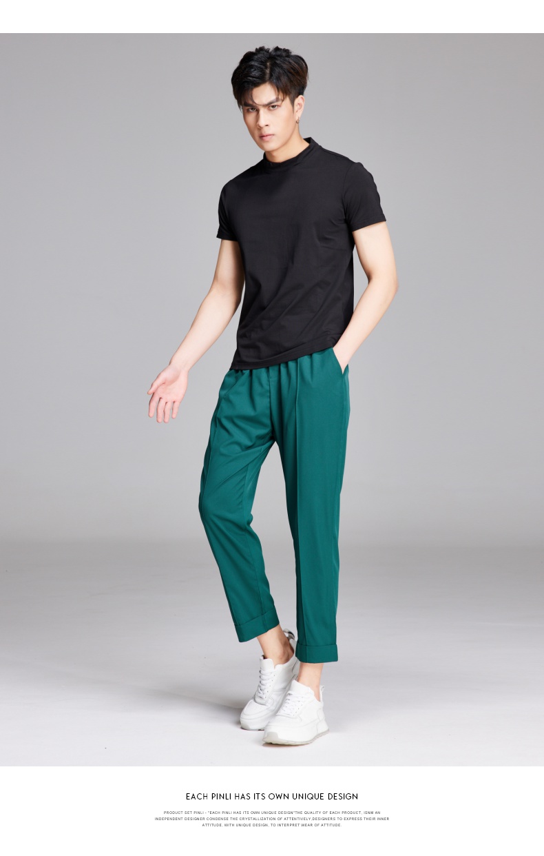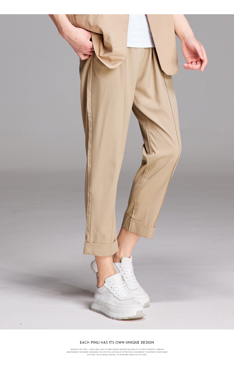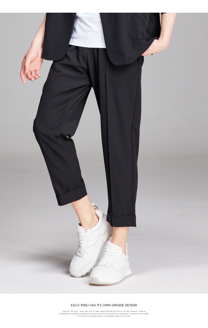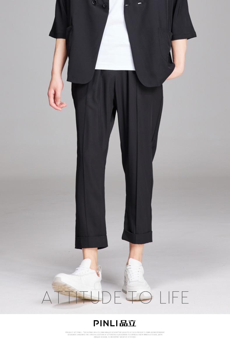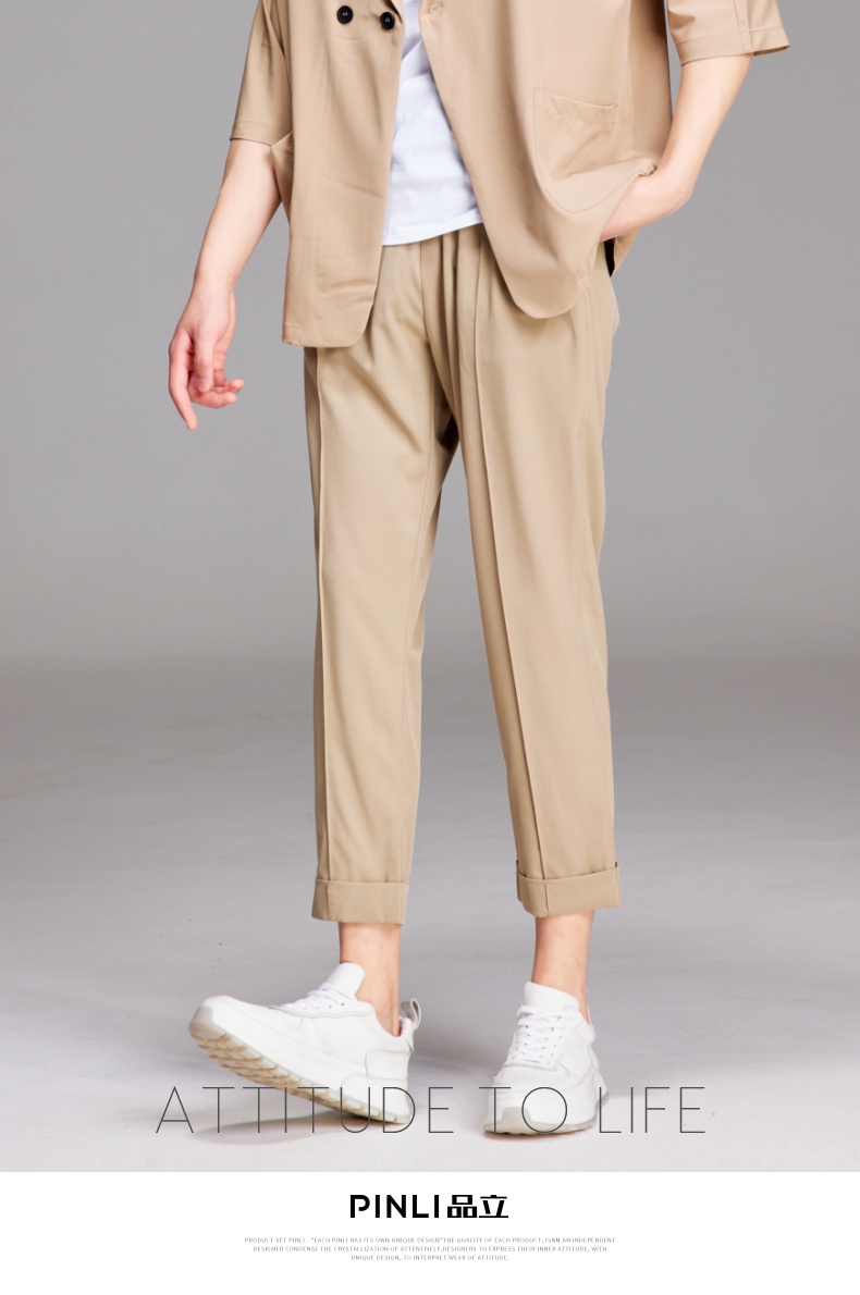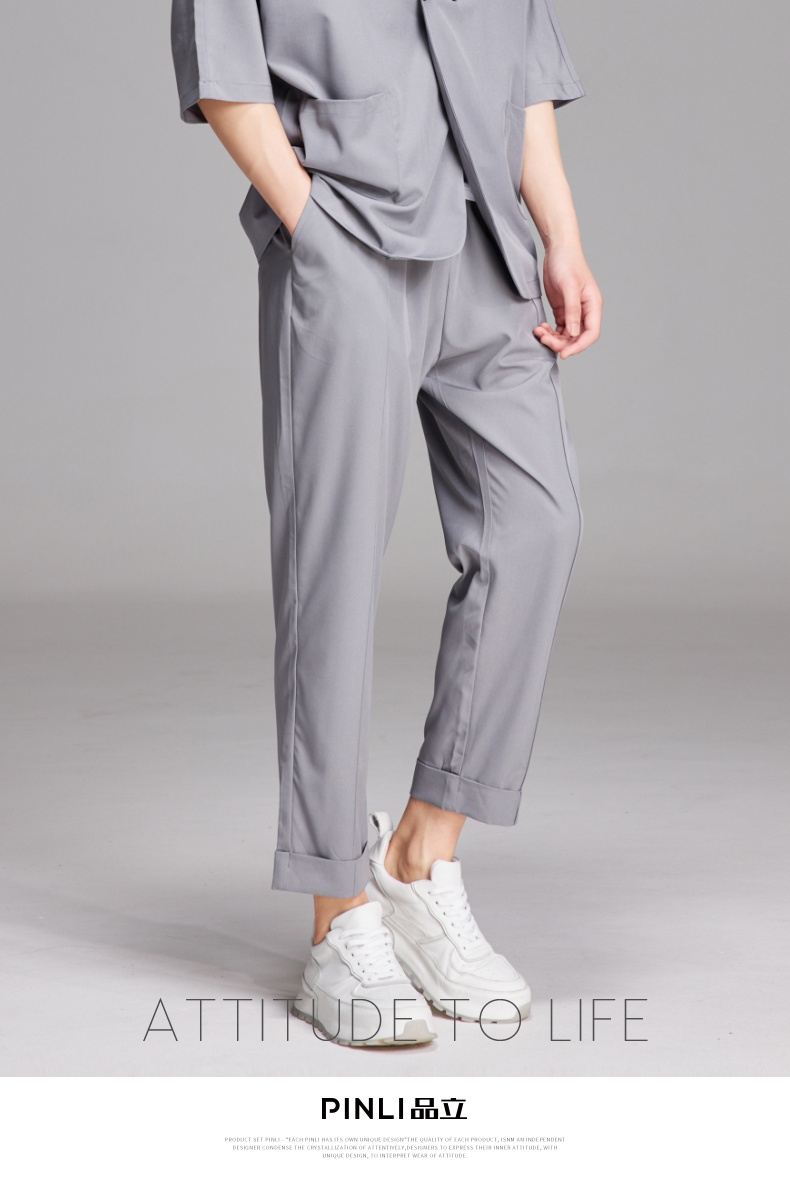 PINLI品立夏季新款纯色凉感修身休闲长裤男士薄款B222117068