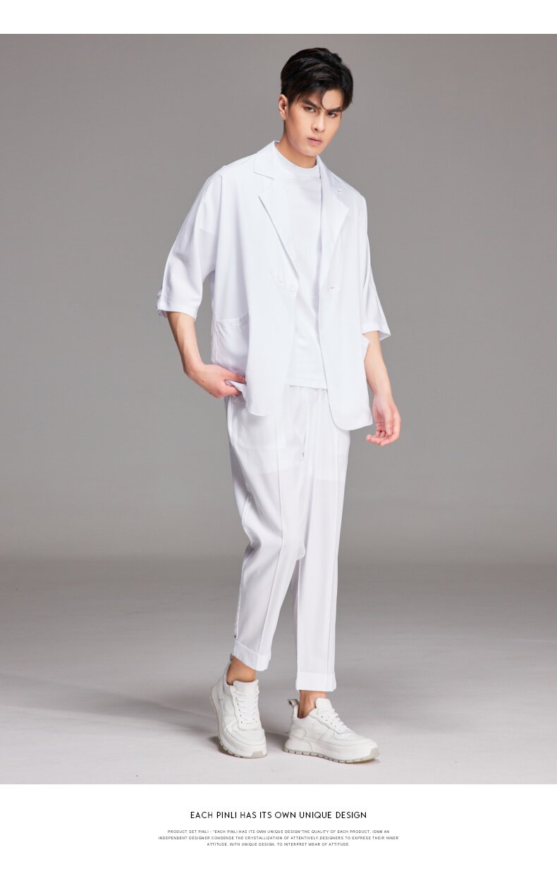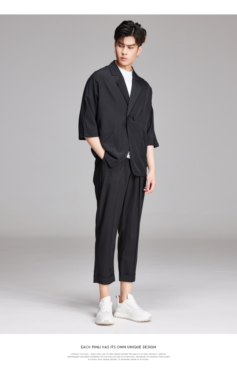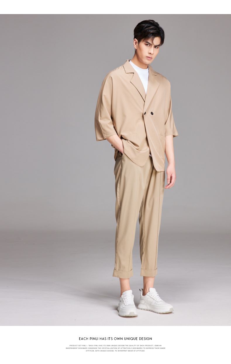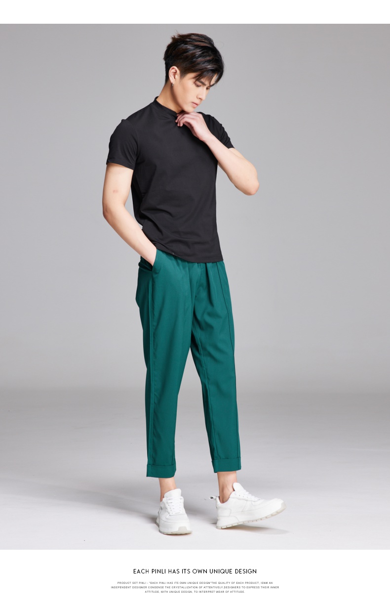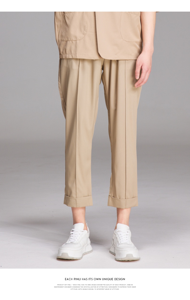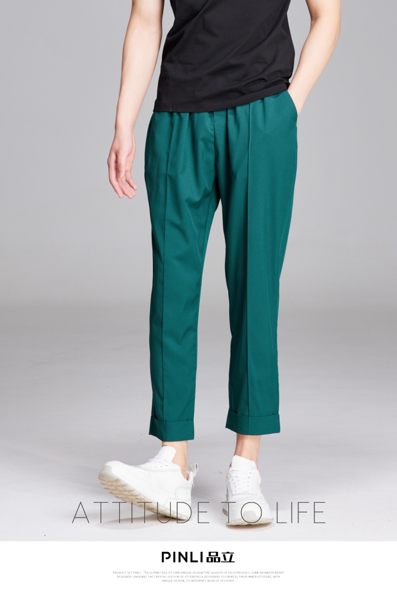 PINLI品立夏季新款纯色凉感修身休闲长裤男士薄款B222117068